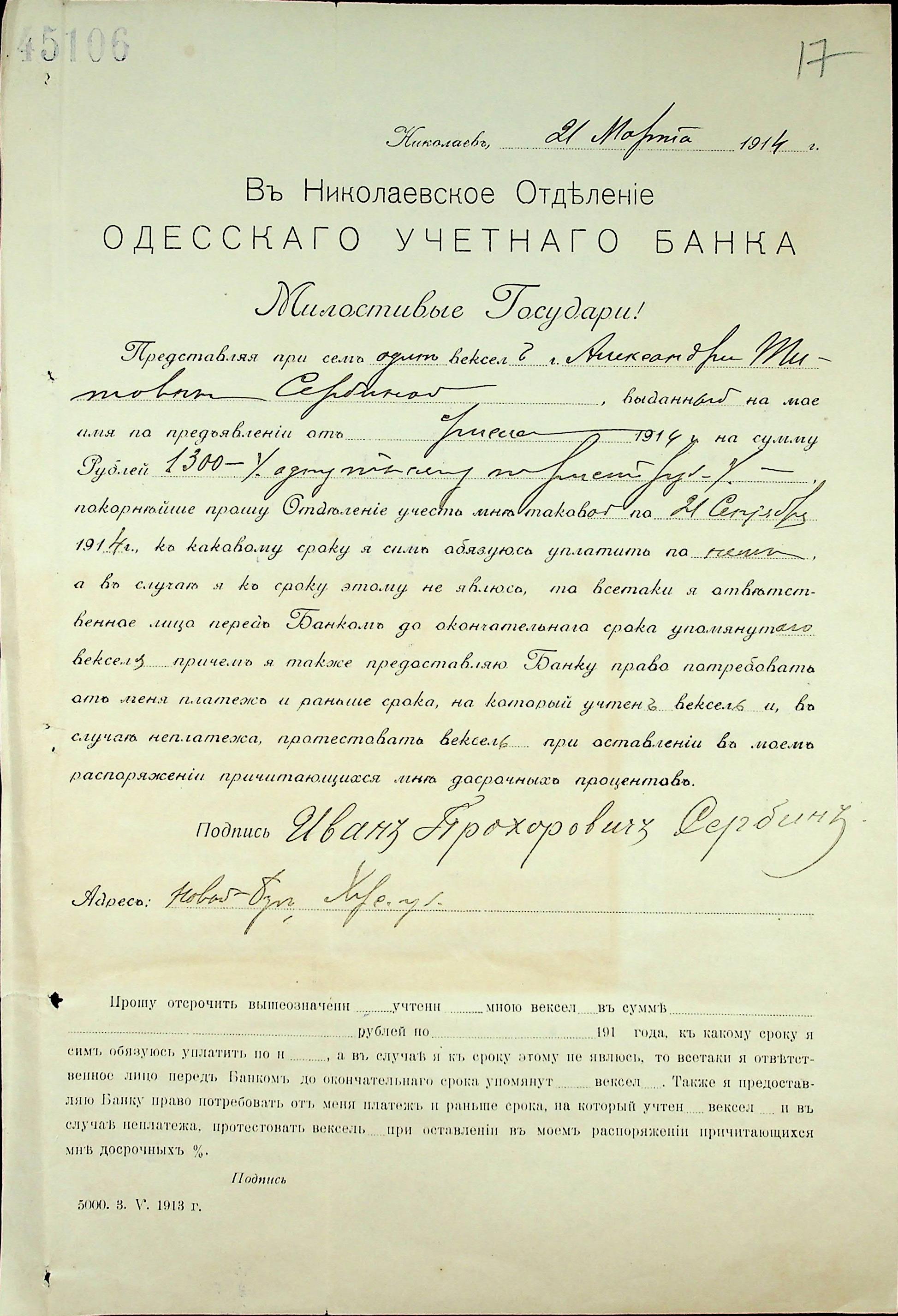 • • • • Справа № 4 “Цивільна справа про стягнення коштів з Сербіна І.П. на користь банку за векселем”