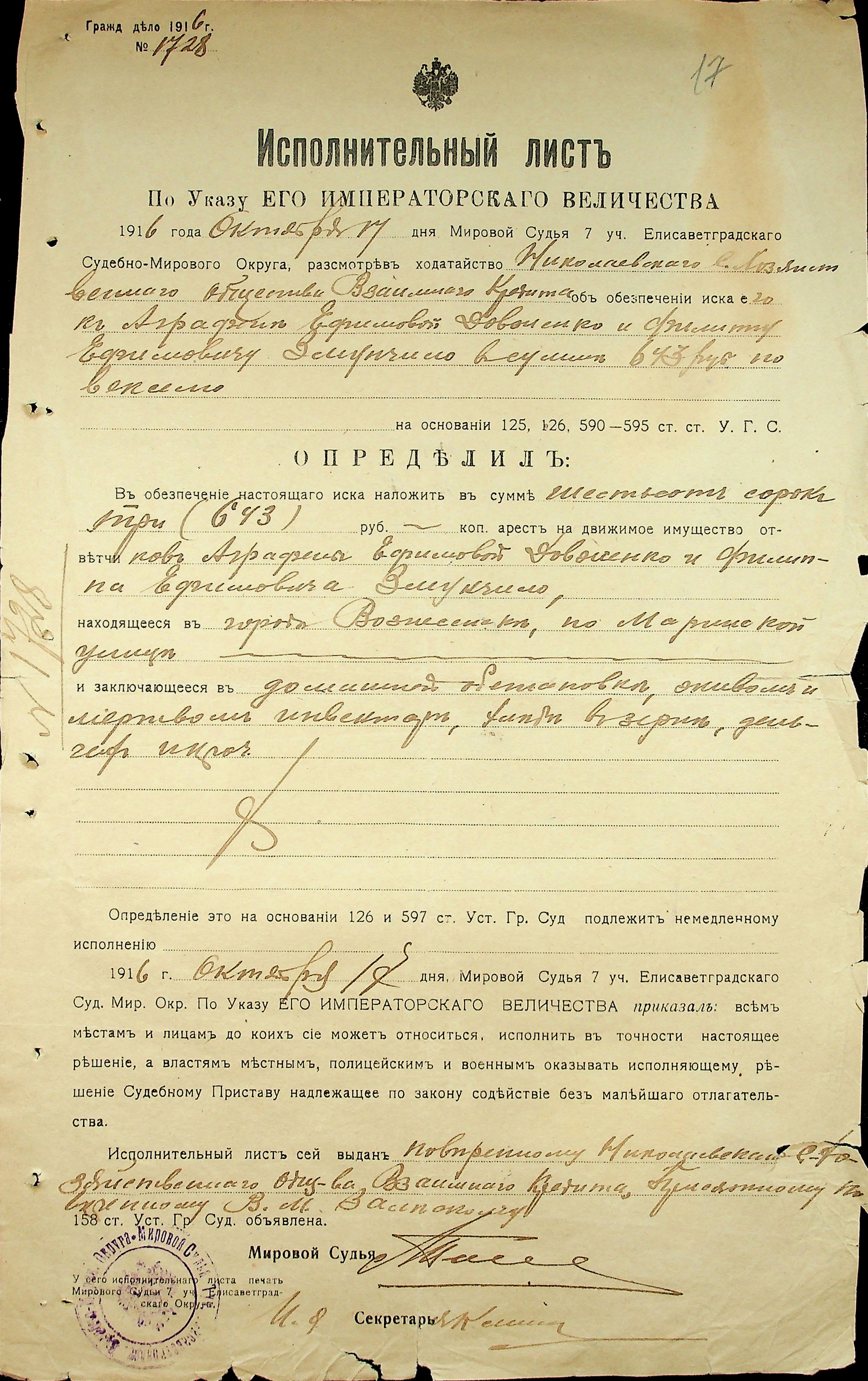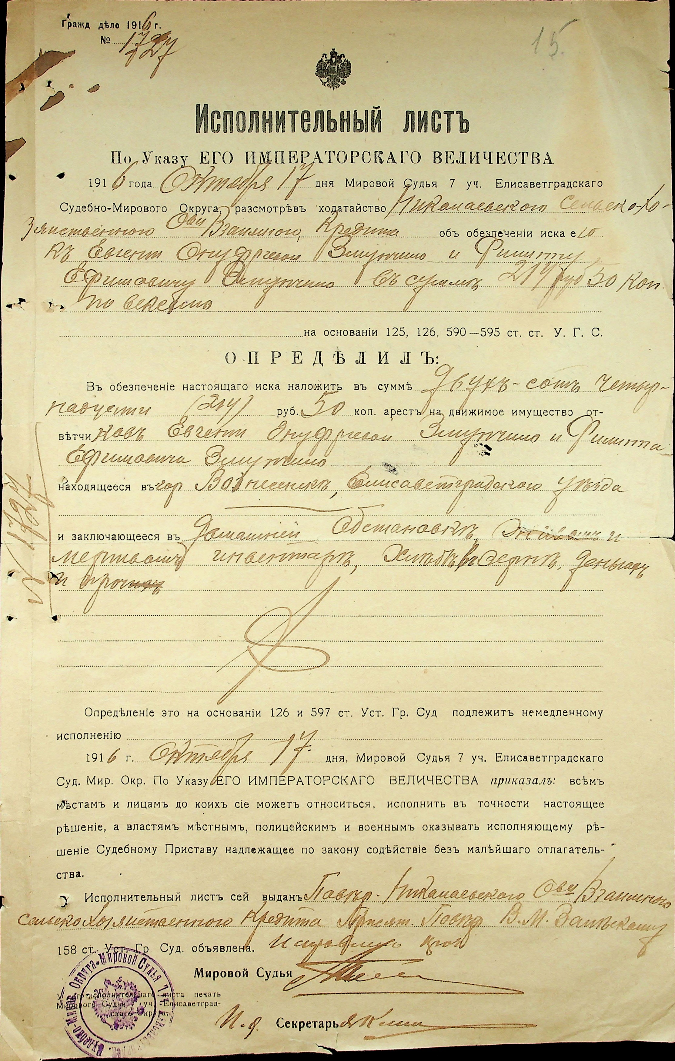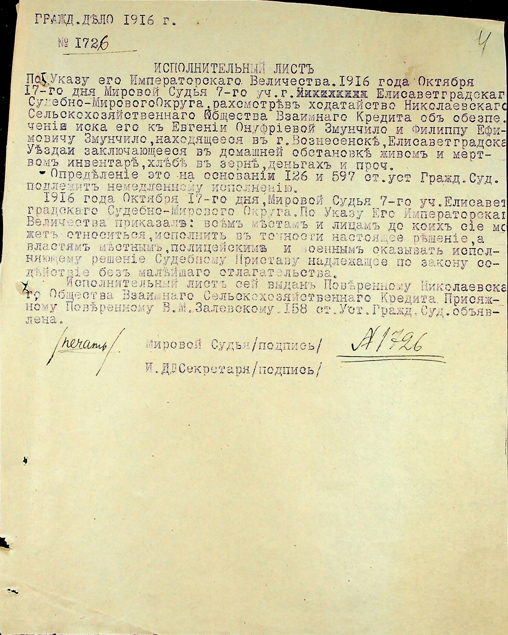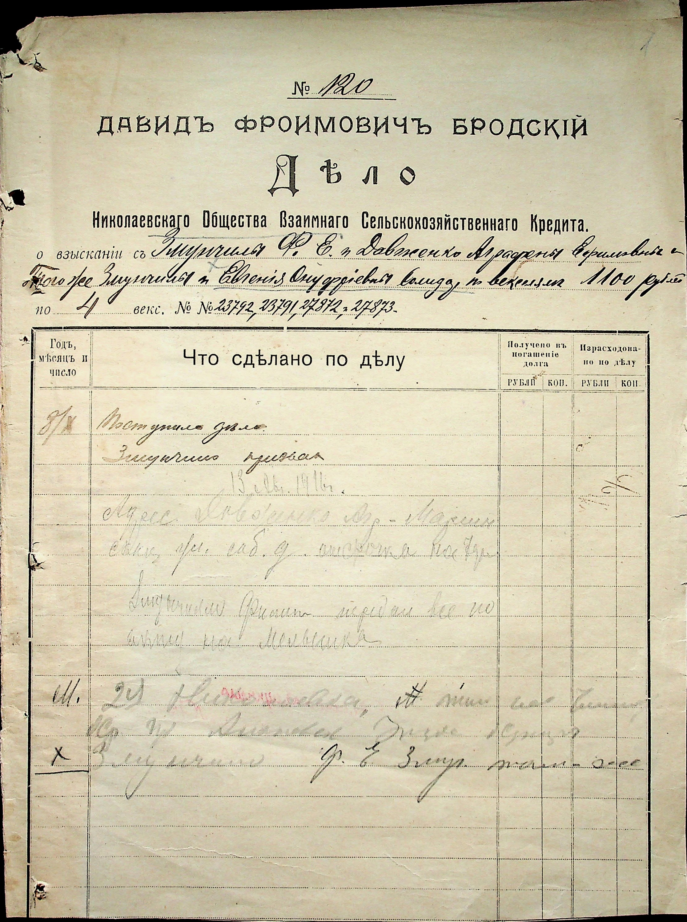 ◦ ◦ Фонд № 71 “Миколаївське товариство взаємного сільськогосподарського кредиту”