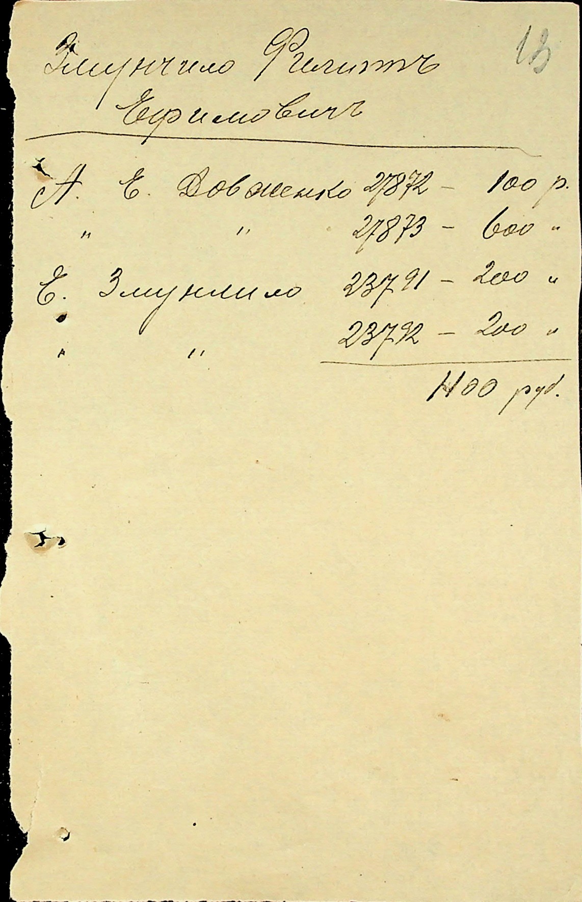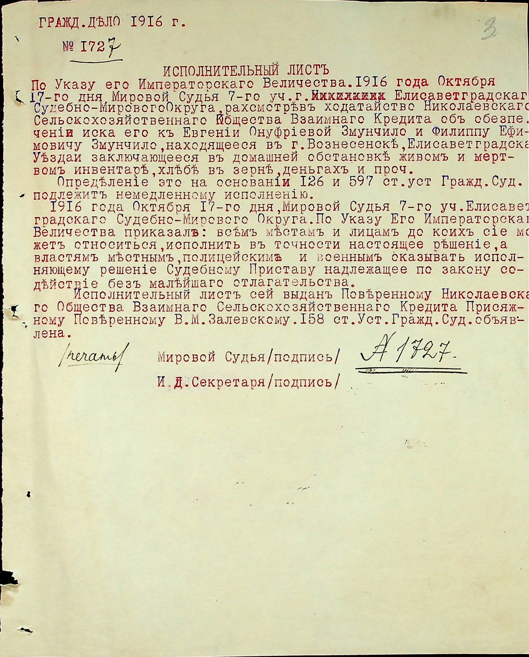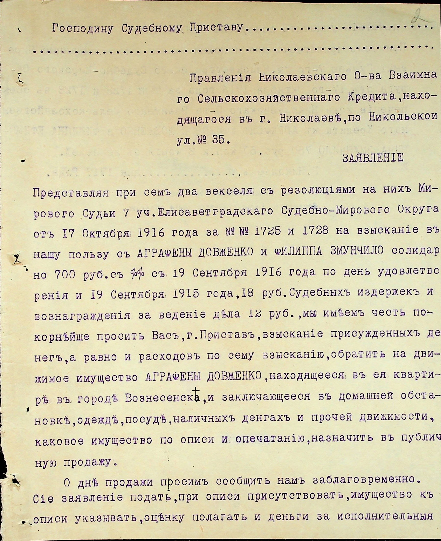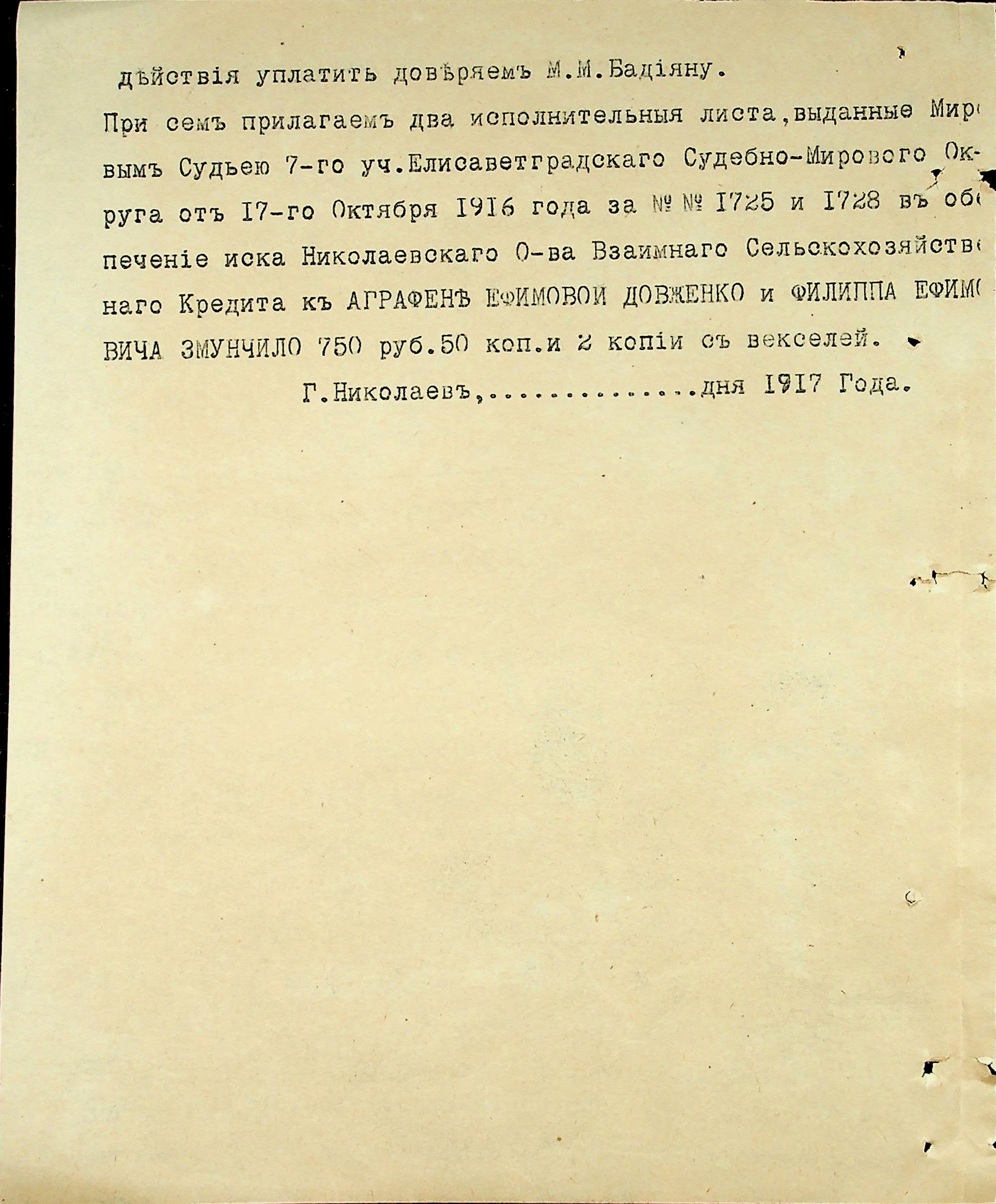 • • • • Справа № 3 “Виконавчі листи, заяви та копії векселів про стягнення грошей на користь товариства з Змунчила П.Ю., Змунчило Є.О. і Довженко А.Ю.”