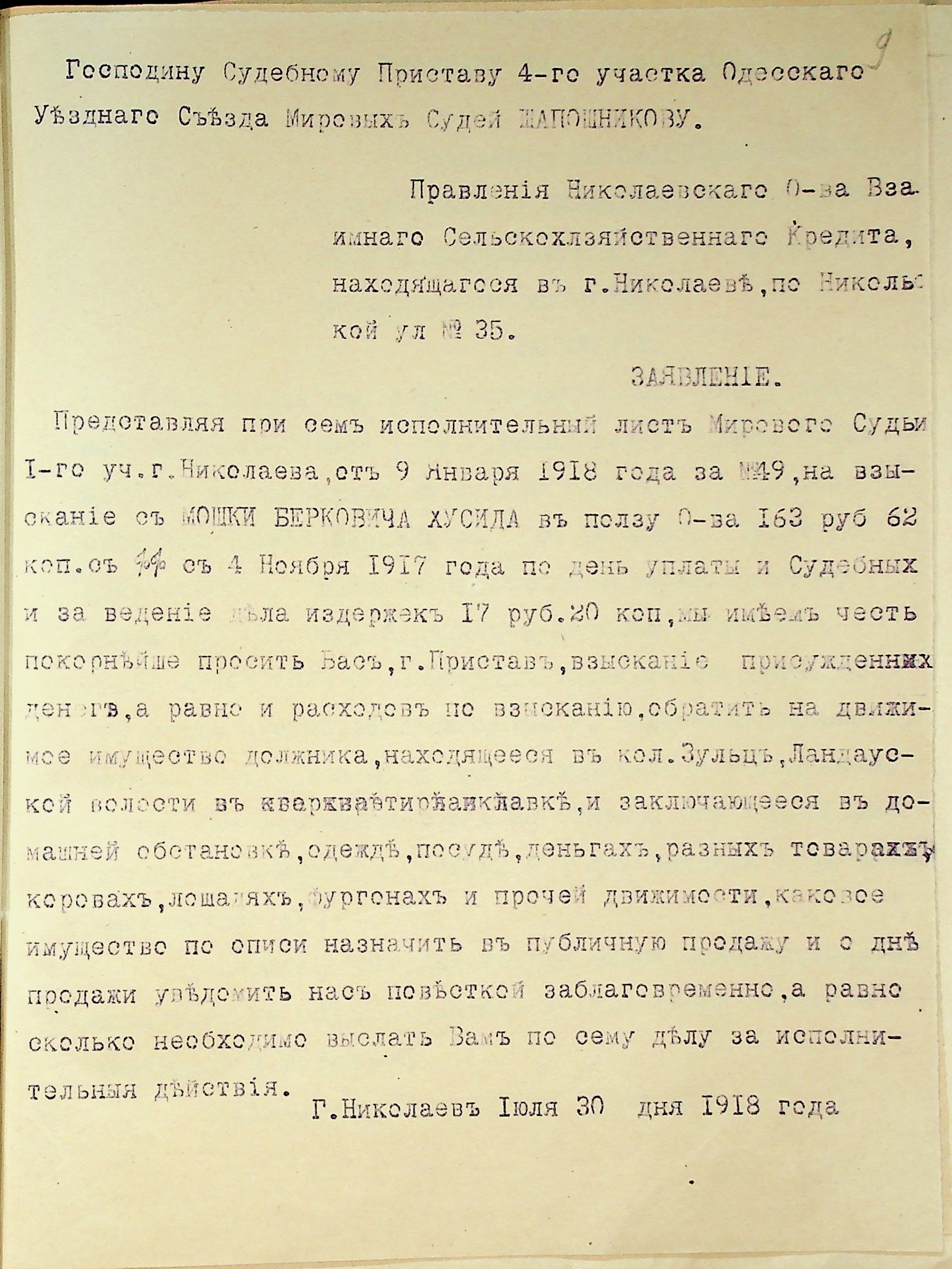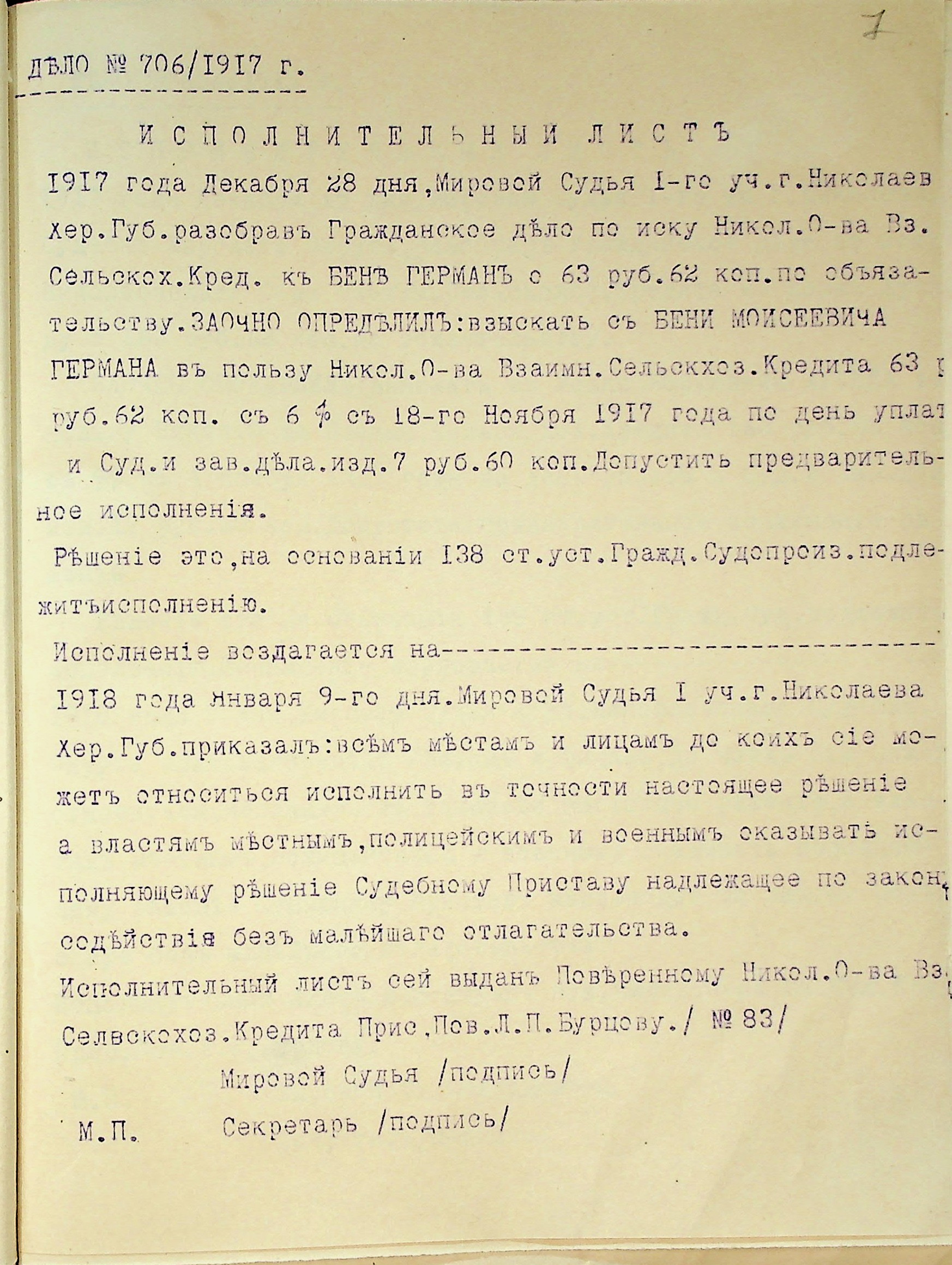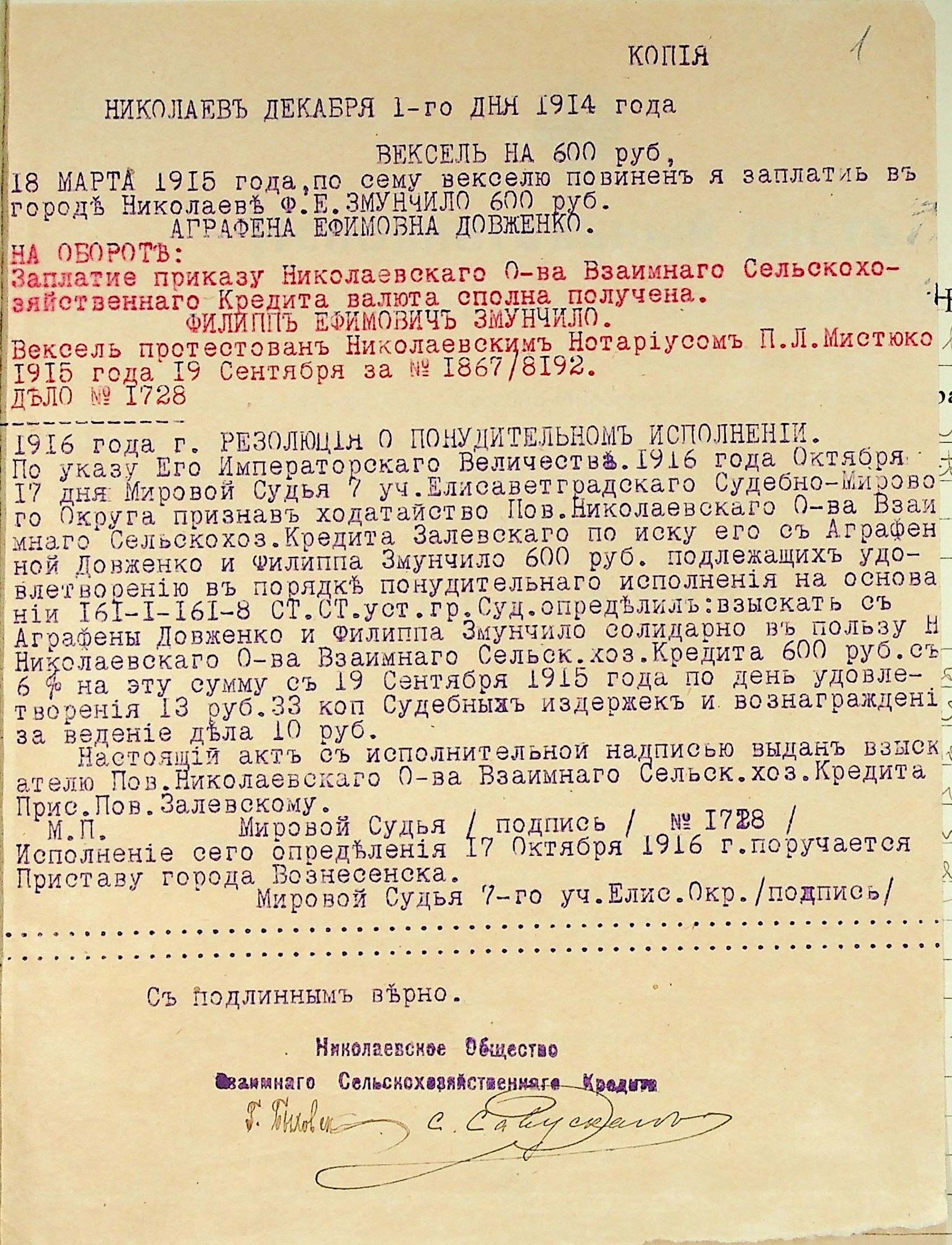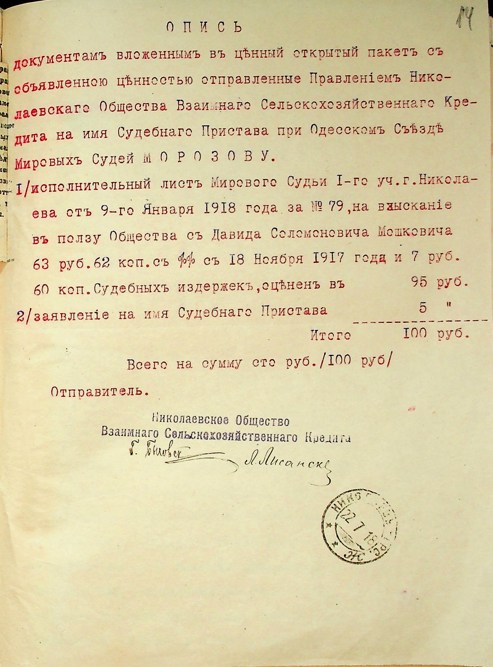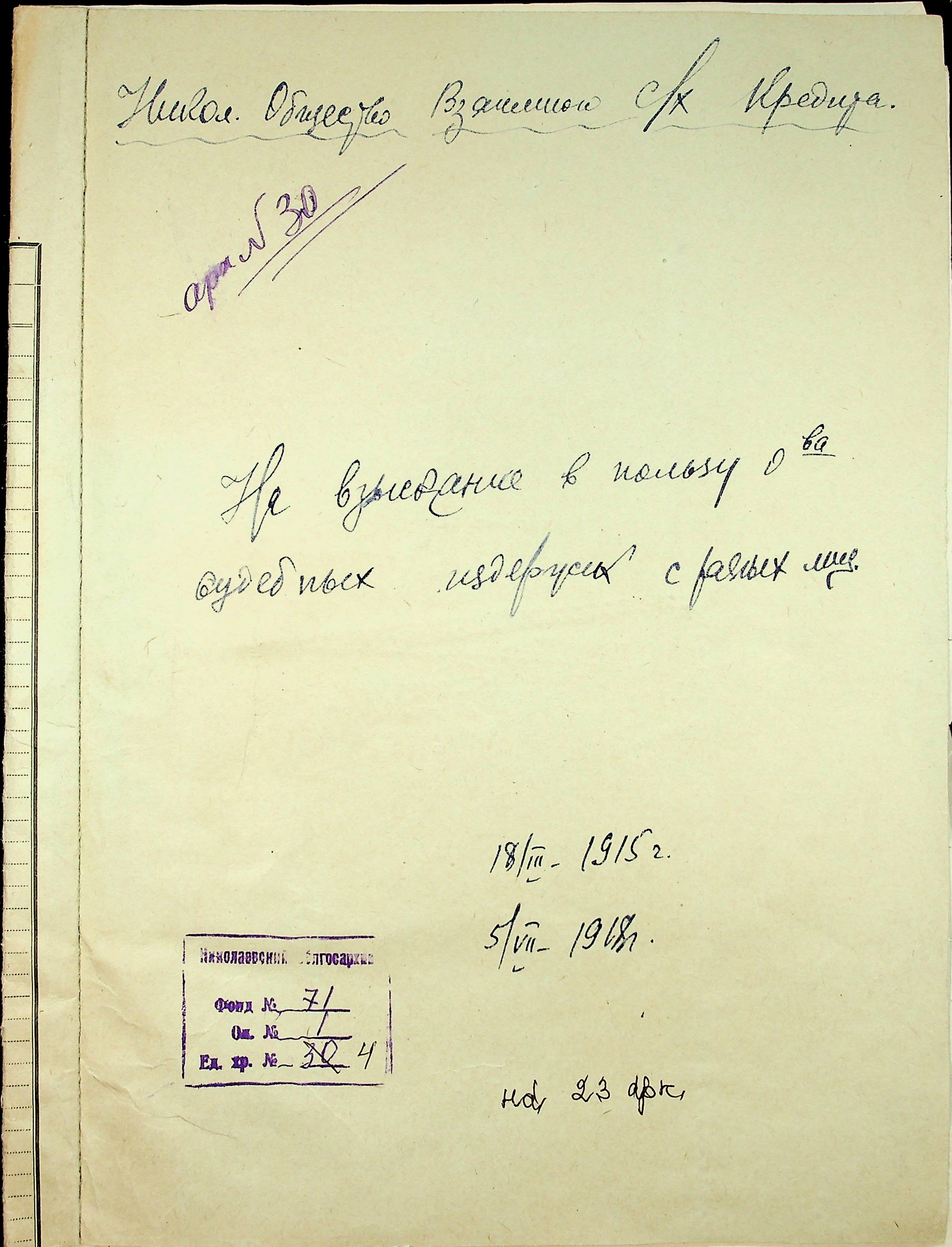 ◦ ◦ Фонд № 71 “Миколаївське товариство взаємного сільськогосподарського кредиту”