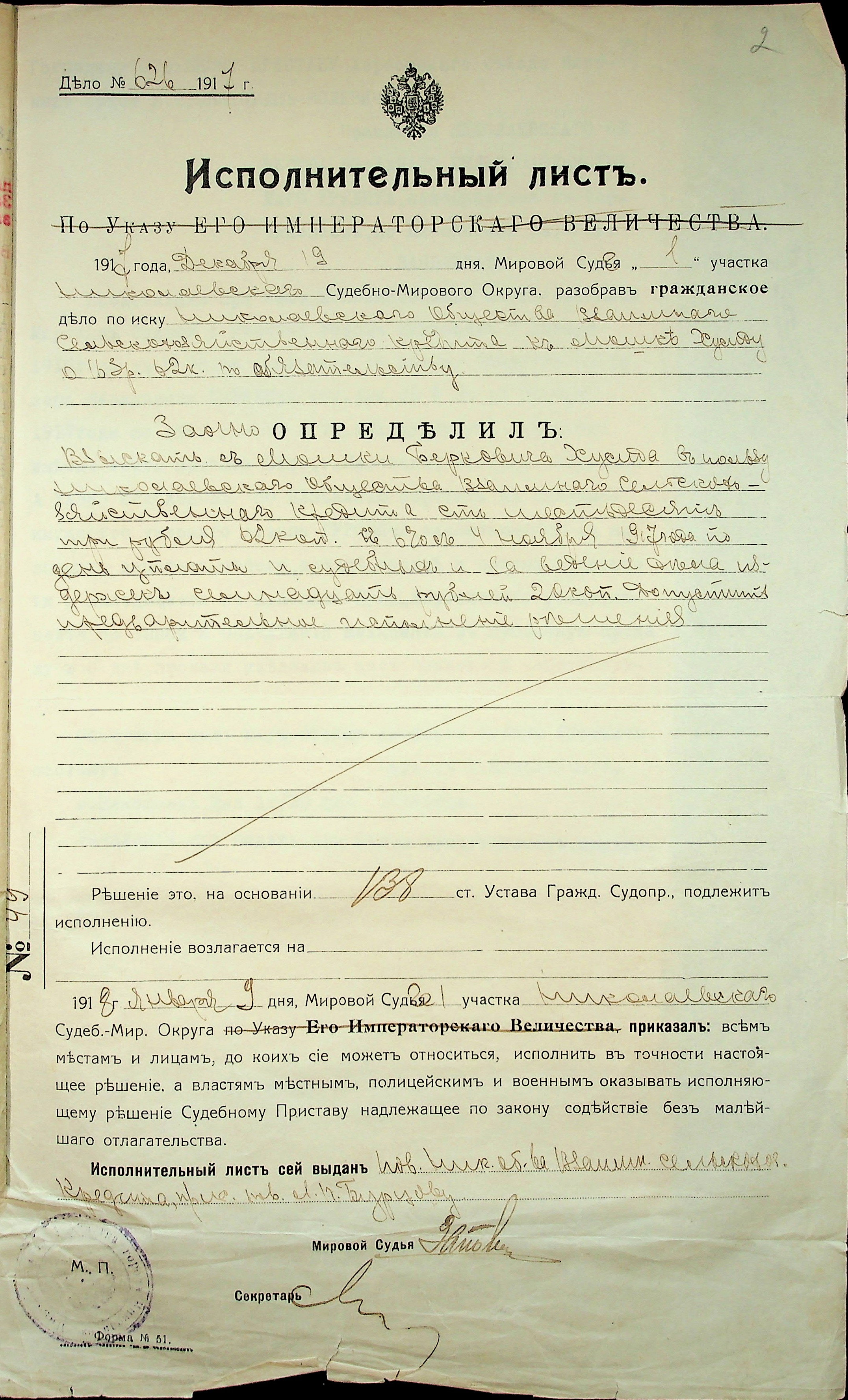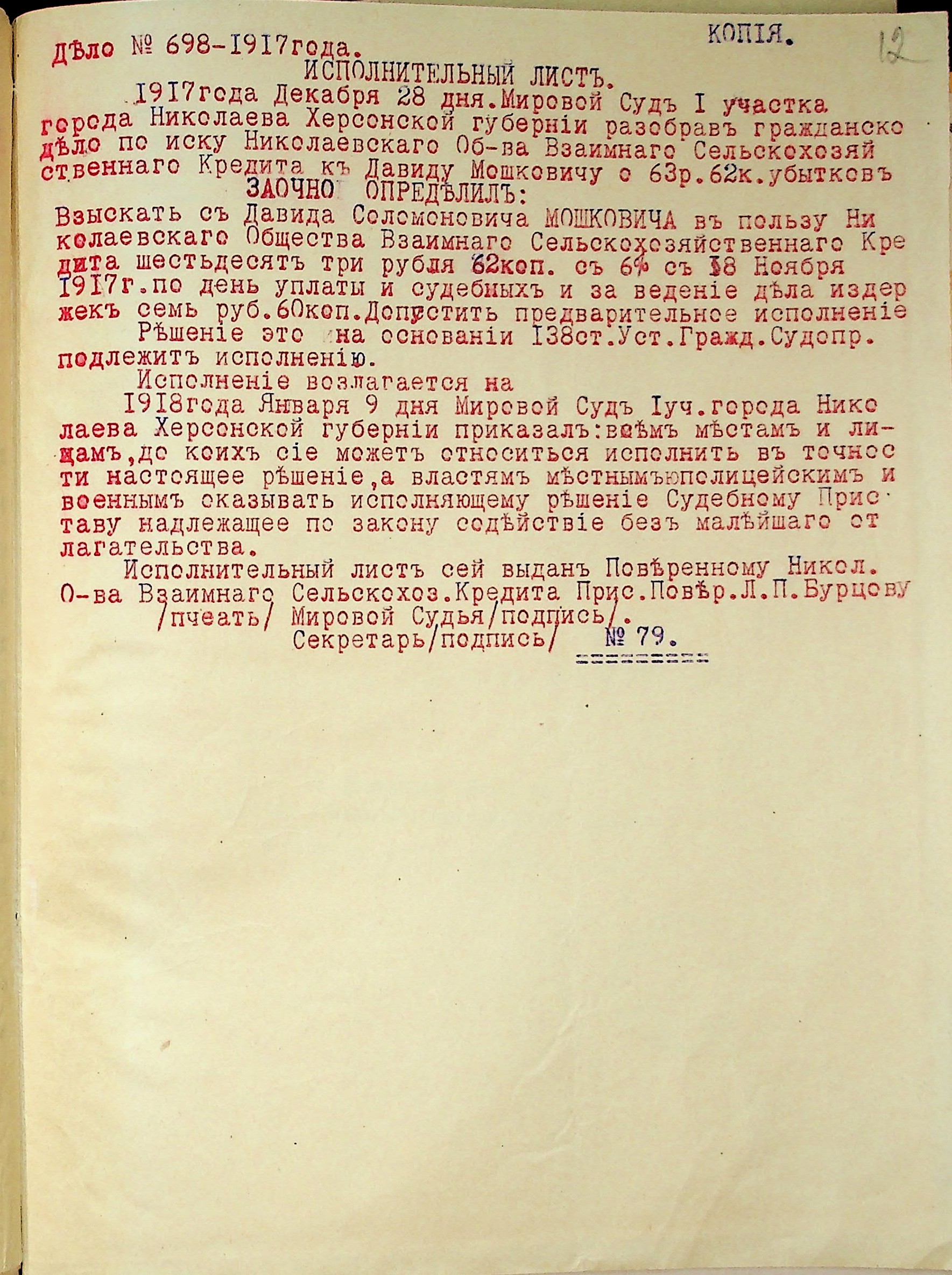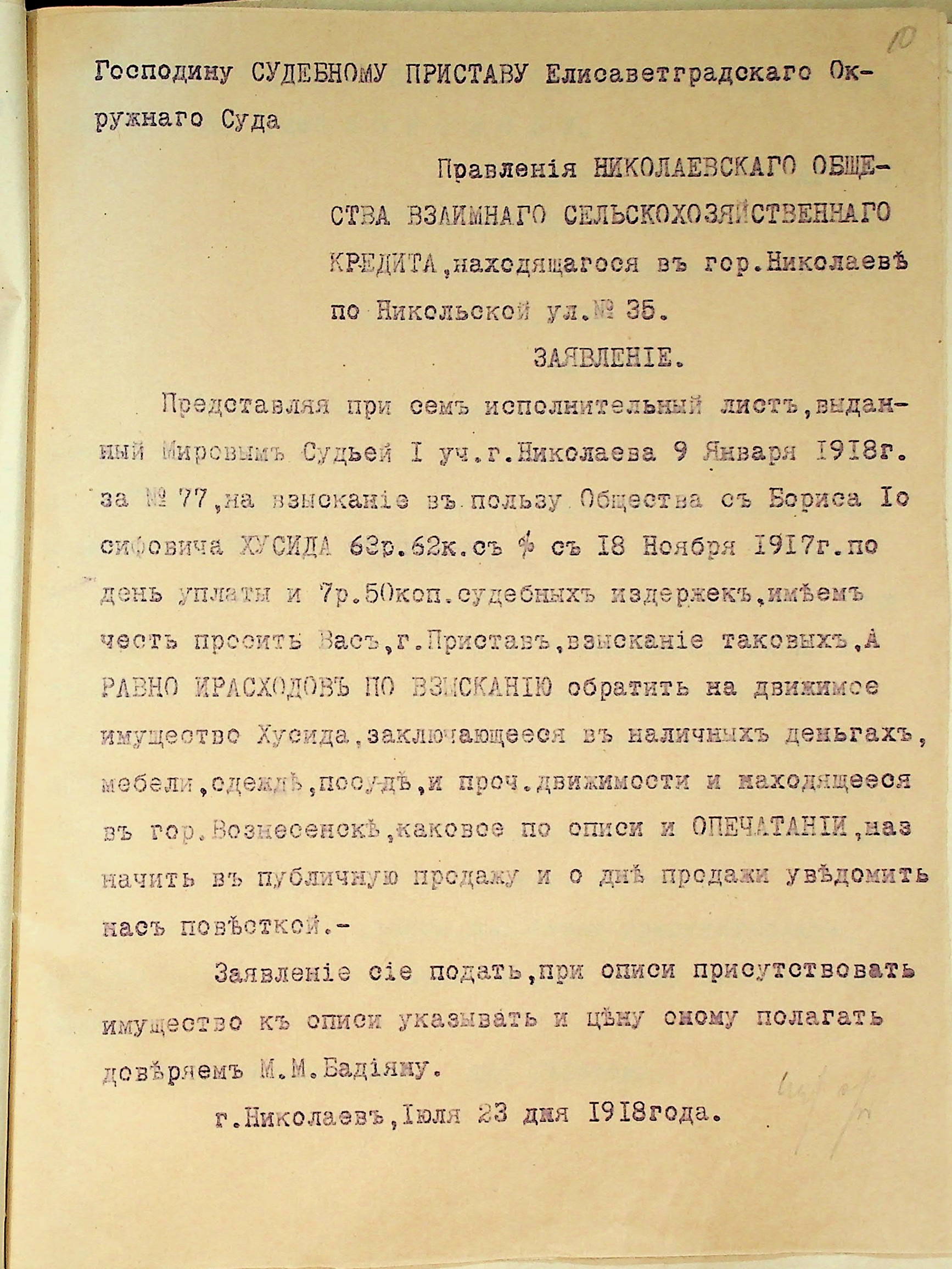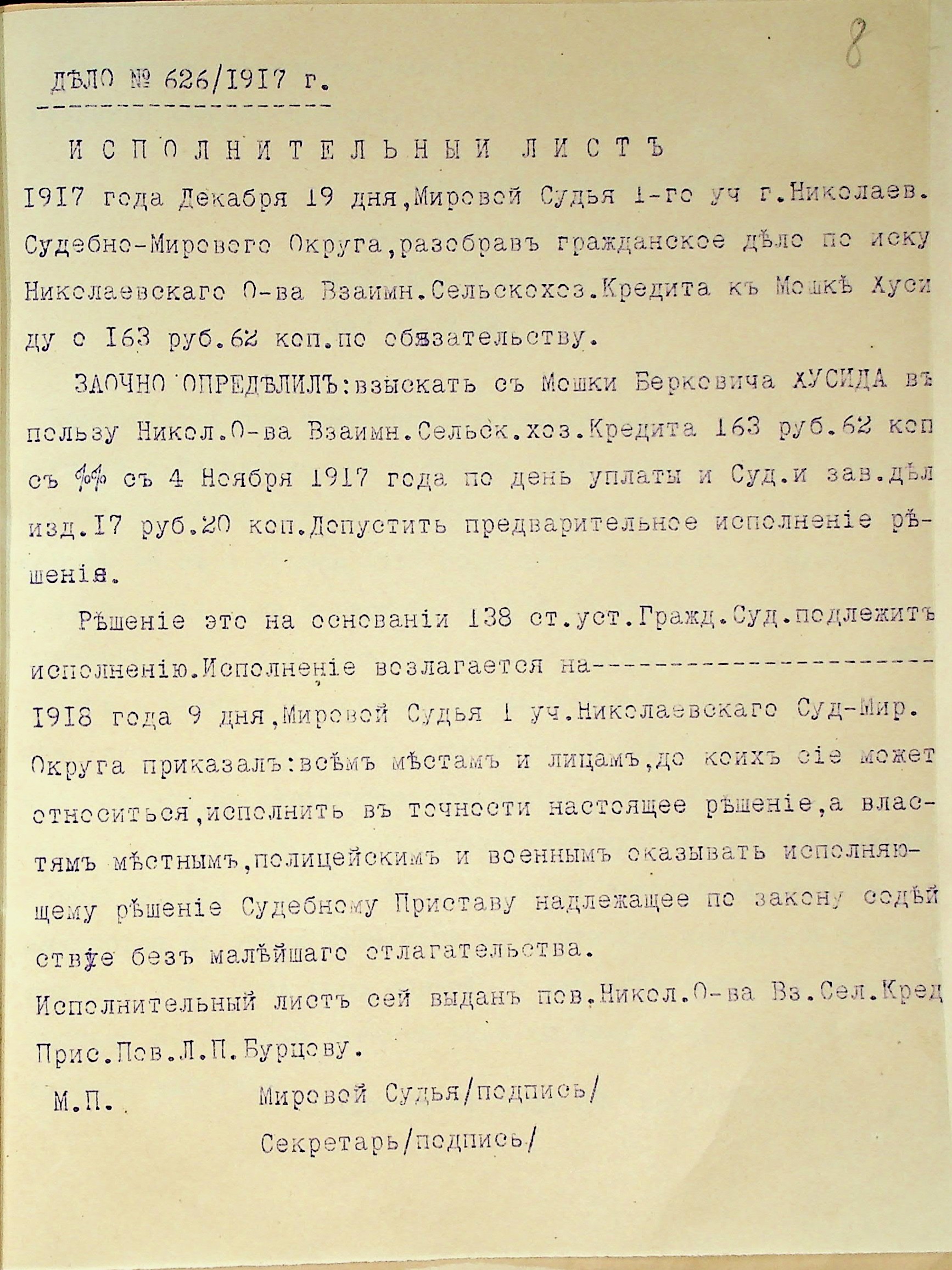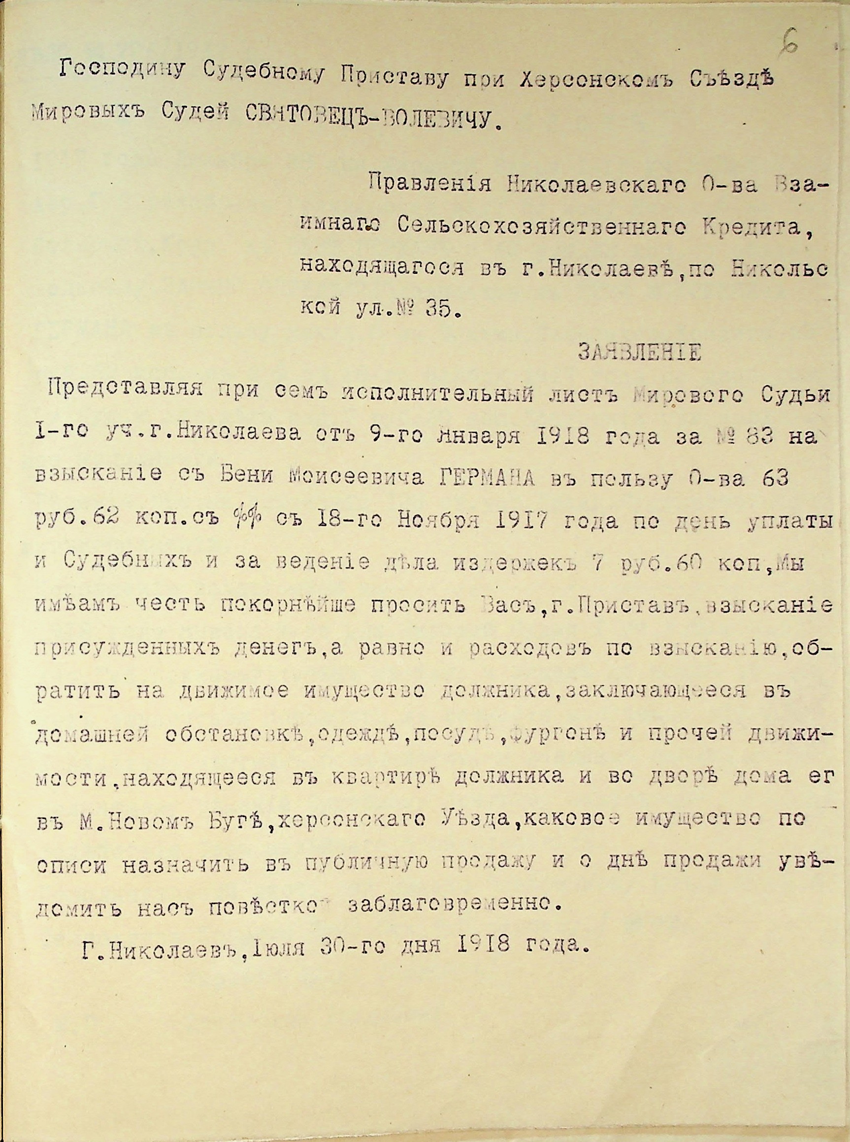 ◦ ◦ Фонд № 71 “Миколаївське товариство взаємного сільськогосподарського кредиту”