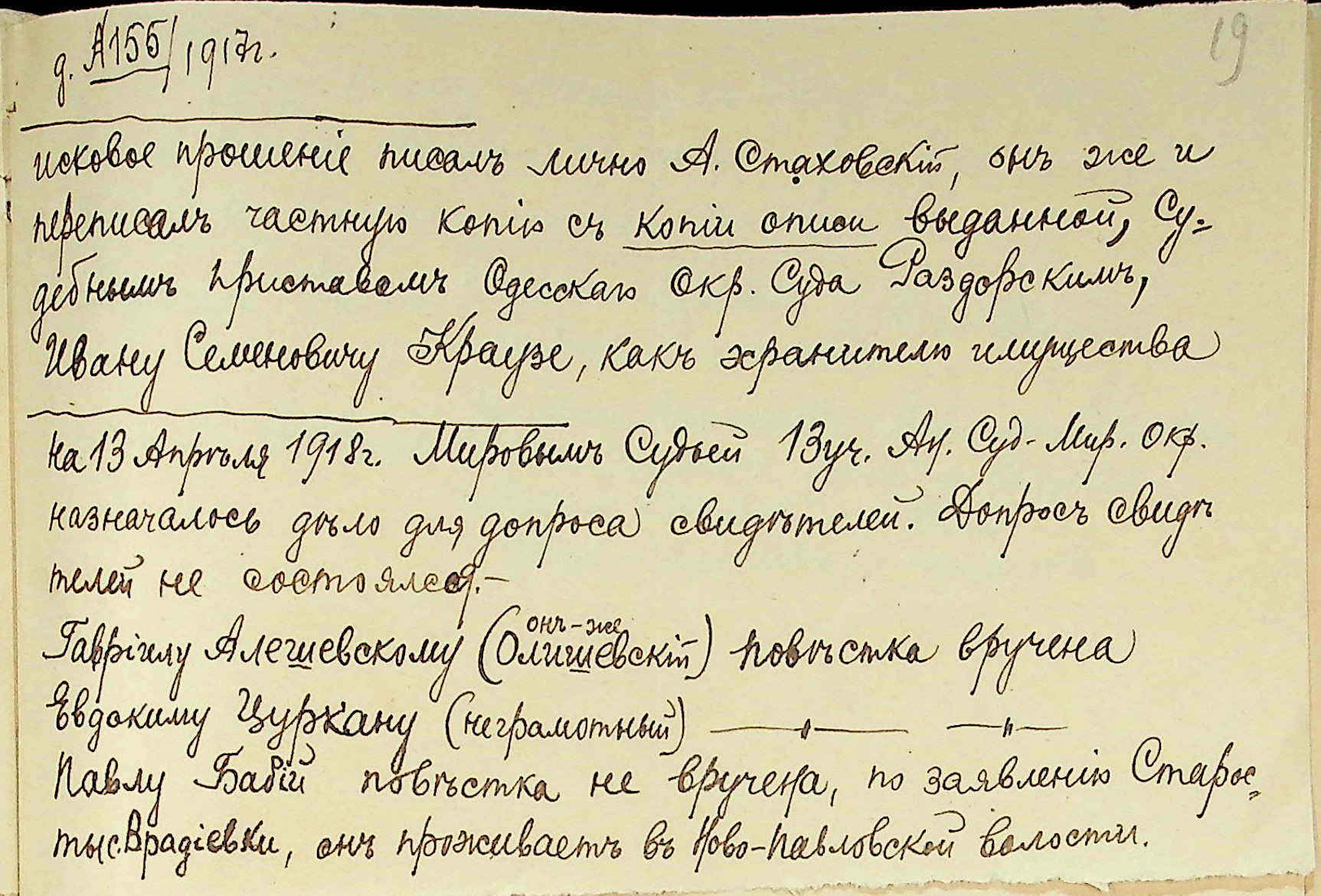 ◦ ◦ ◦ Опис № 1 справ постійного зберігання за 1914-1919 роки