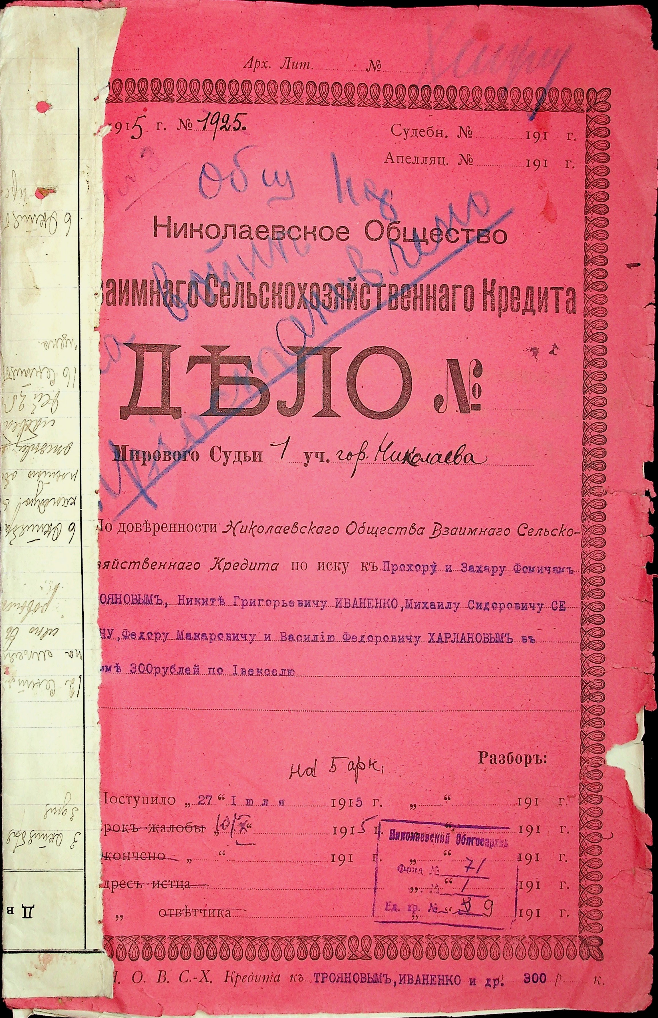◦ ◦ Фонд № 71 “Миколаївське товариство взаємного сільськогосподарського кредиту”