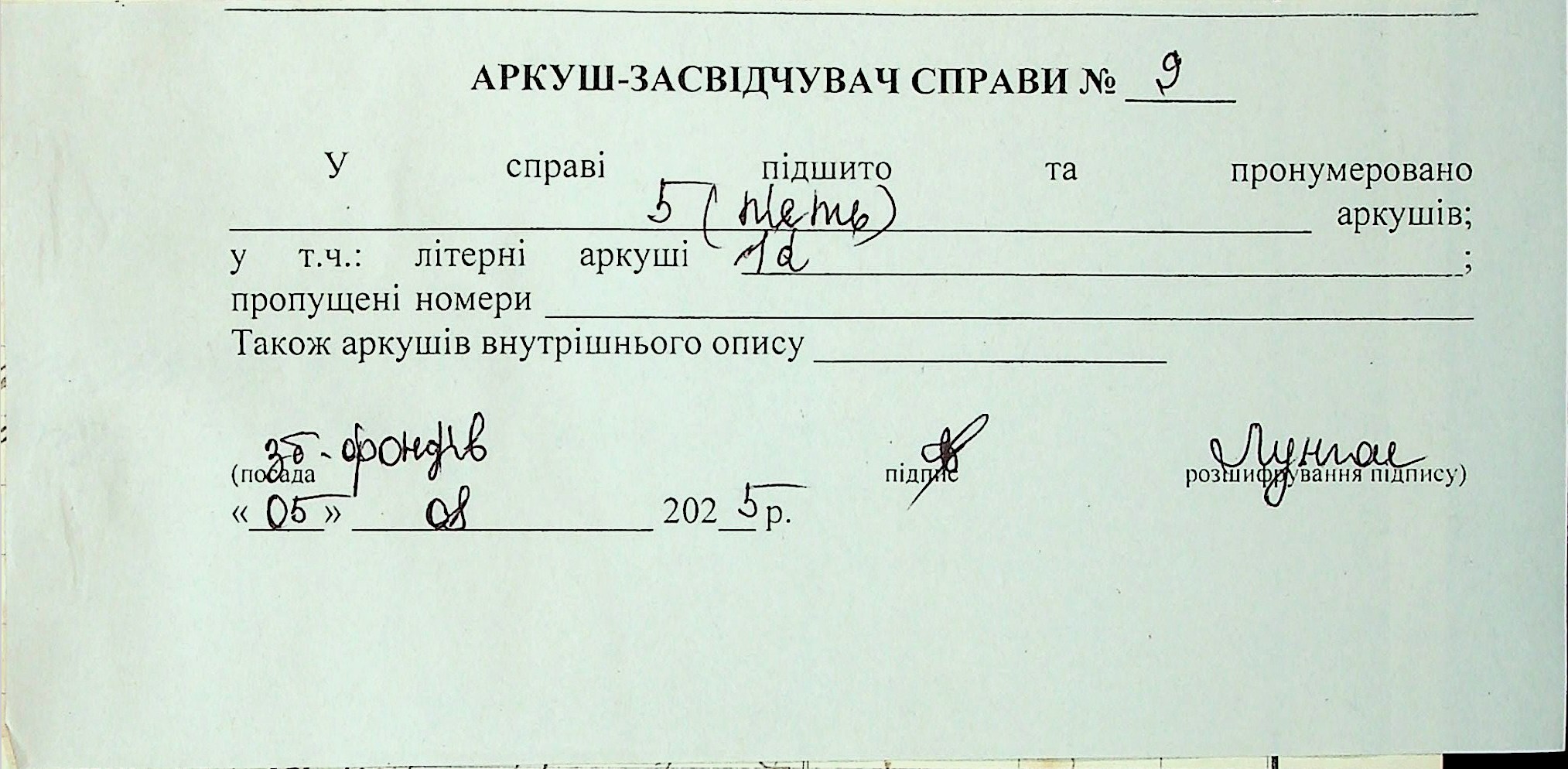Фонд 71 / Опис 1 / Справа 009