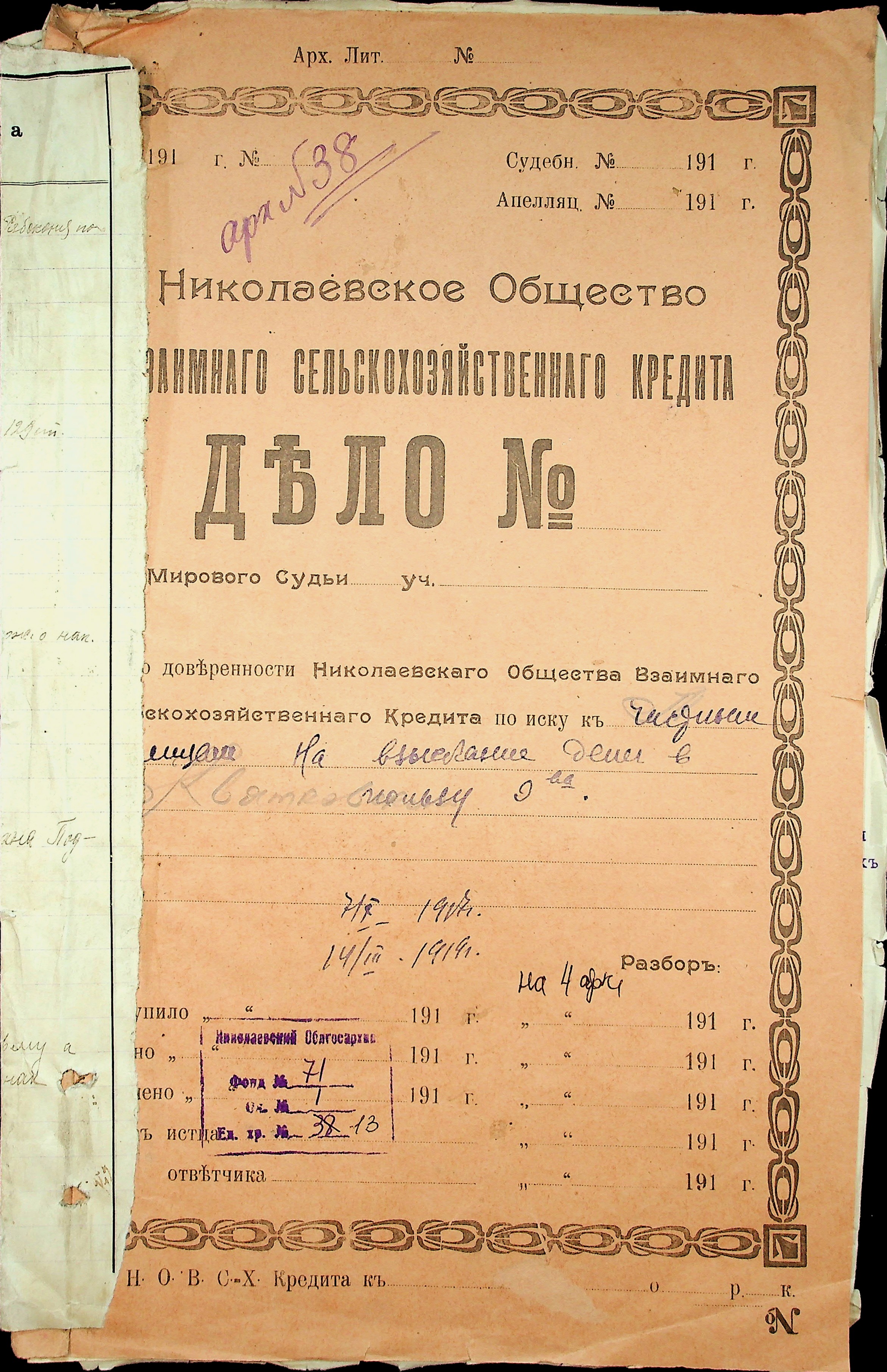 ◦ ◦ Фонд № 71 “Миколаївське товариство взаємного сільськогосподарського кредиту”