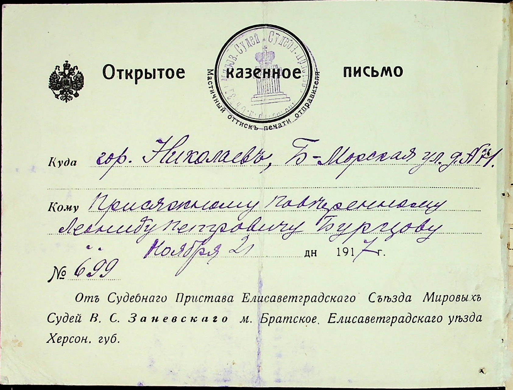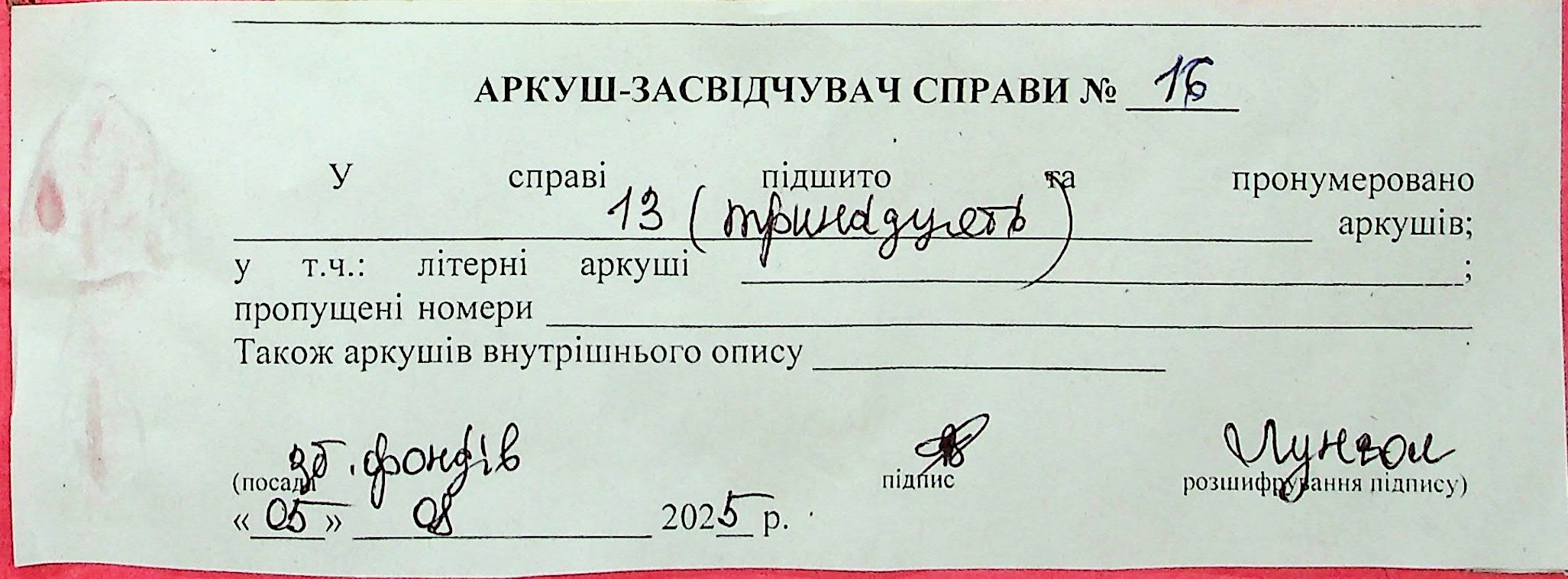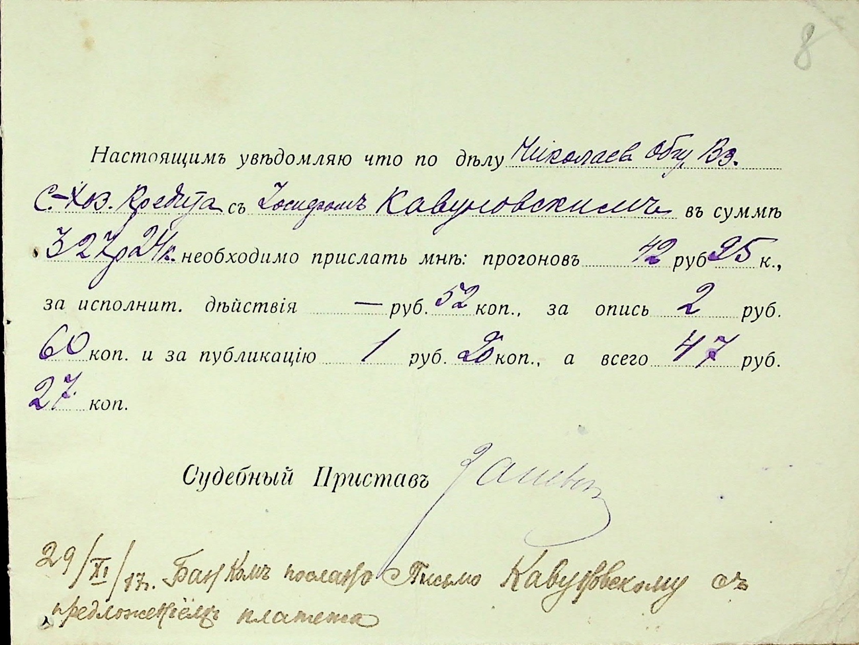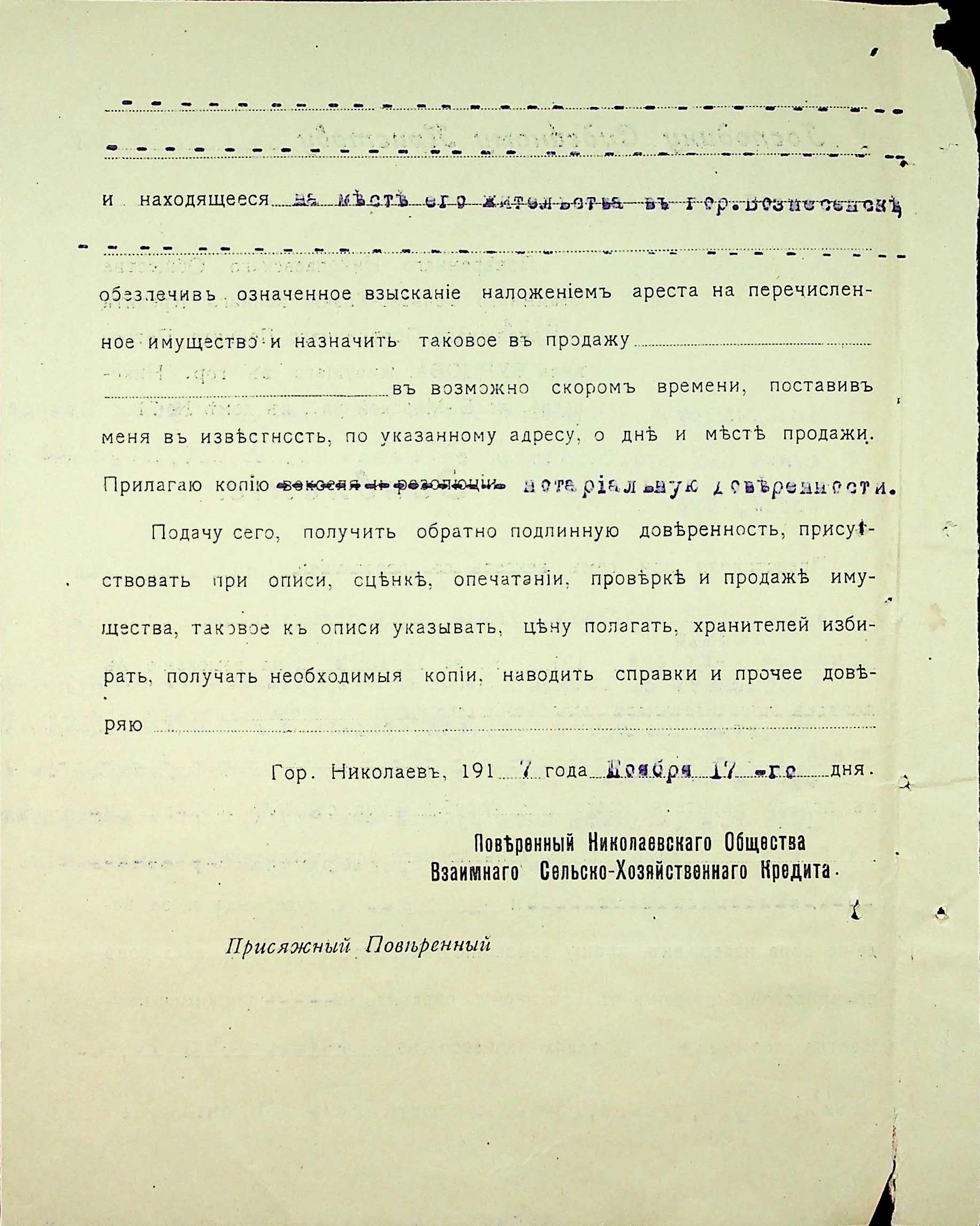 • • • • Справа № 16 “Документи (прохання, протести, квитанції, виконавчі листи, листування тощо) мирового судді дільниці № 1 м. Миколаїв про стягнення грошей за векселями на користь товариства з Кавунівського І.А.”