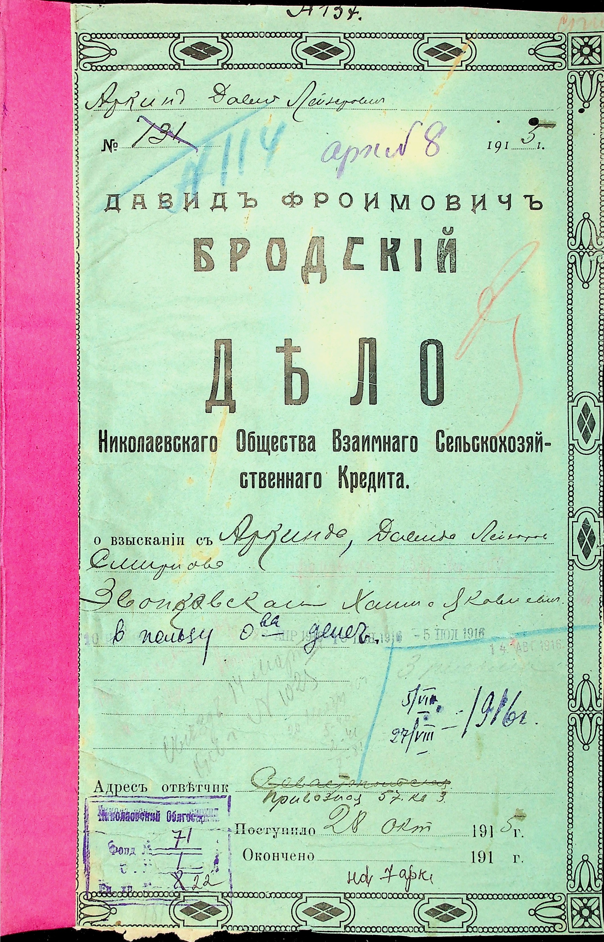 ◦ ◦ Фонд № 71 “Миколаївське товариство взаємного сільськогосподарського кредиту”