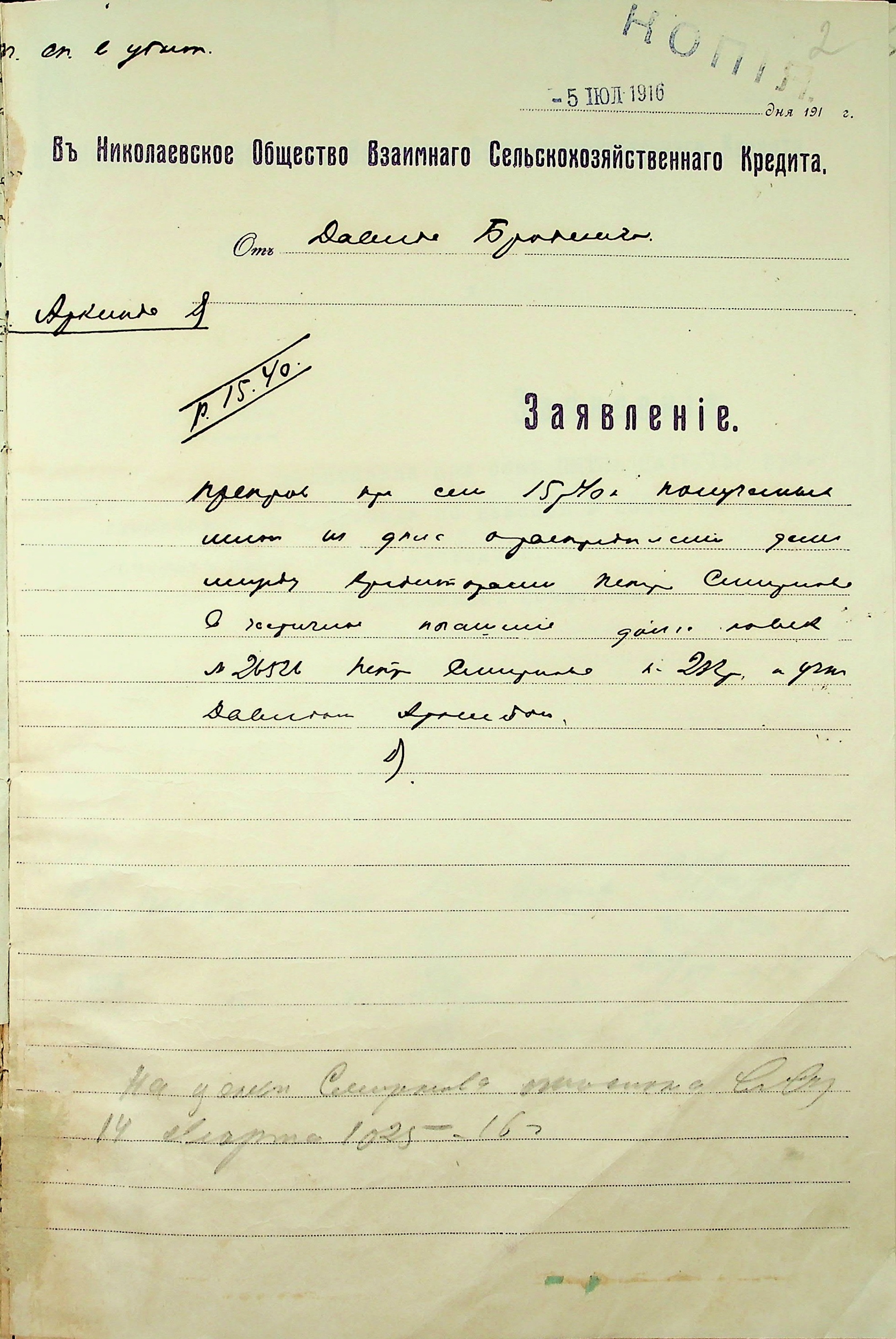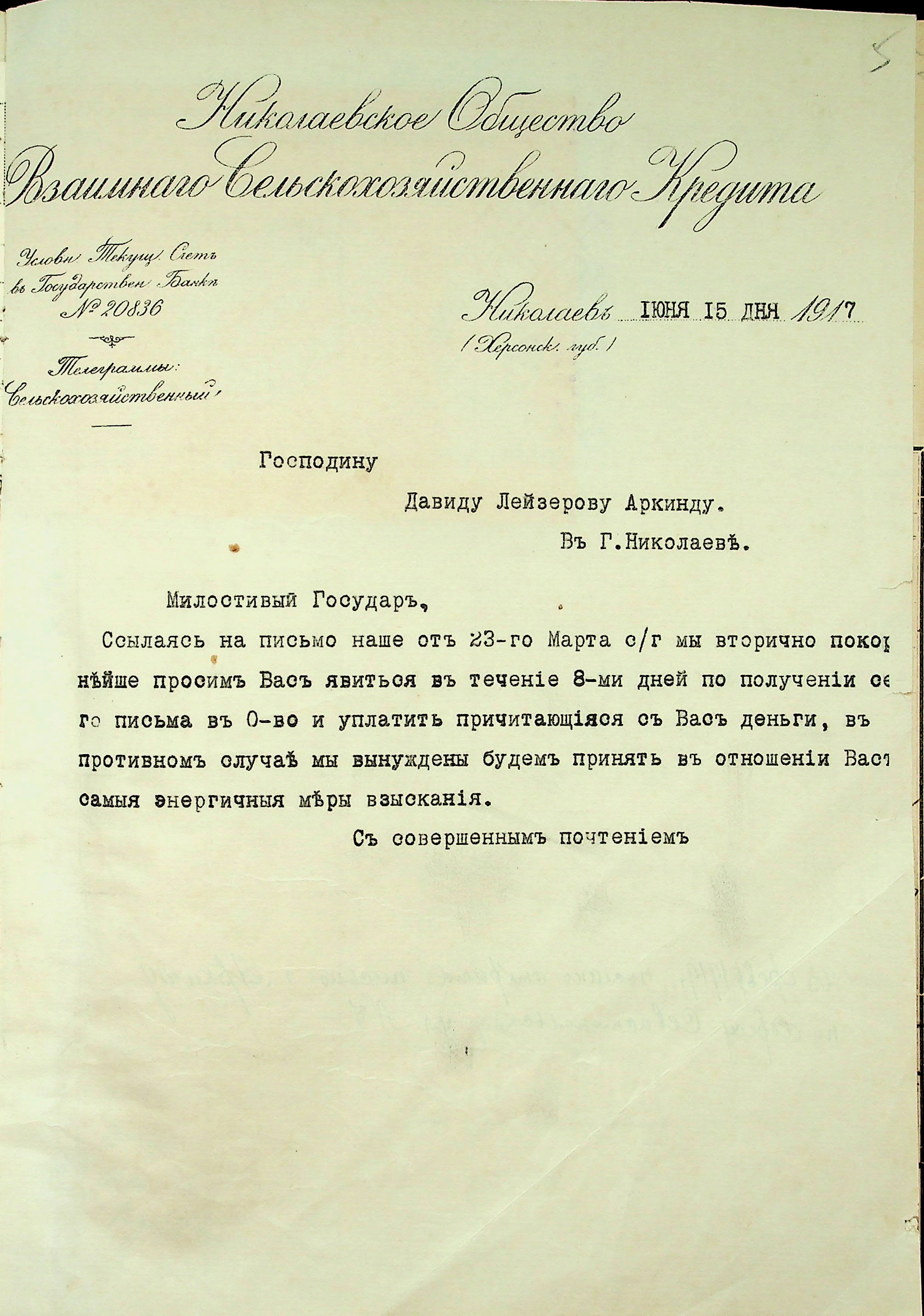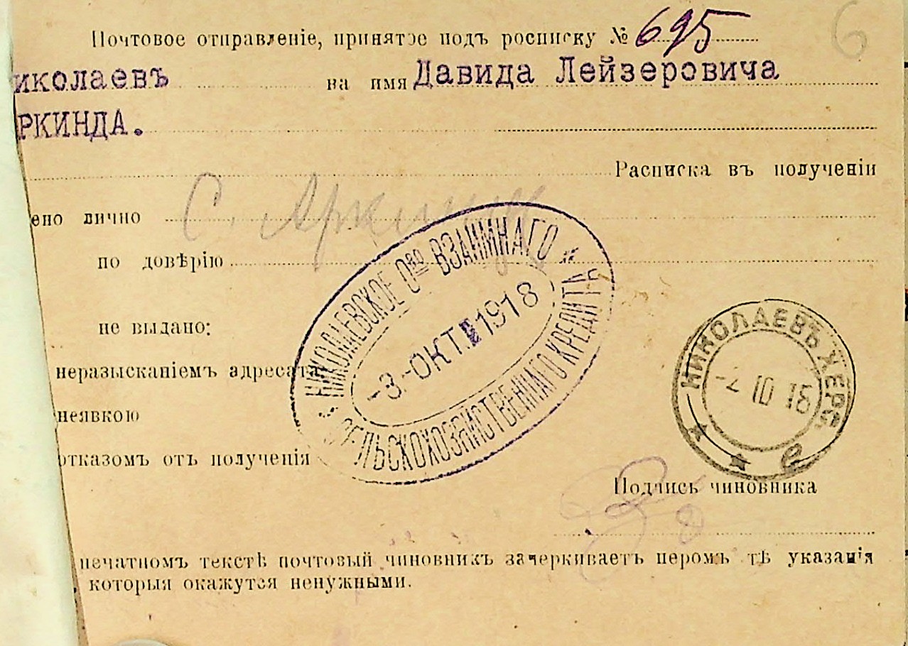 • • • • Справа № 22 “Документи (заяви, квитанції, розписки, листування) мирового судді дільниці № 3 м. Миколаїв про стягнення грошей за векселями на користь товариства з Аркіна Д.Л. і Смирнова П.М.”