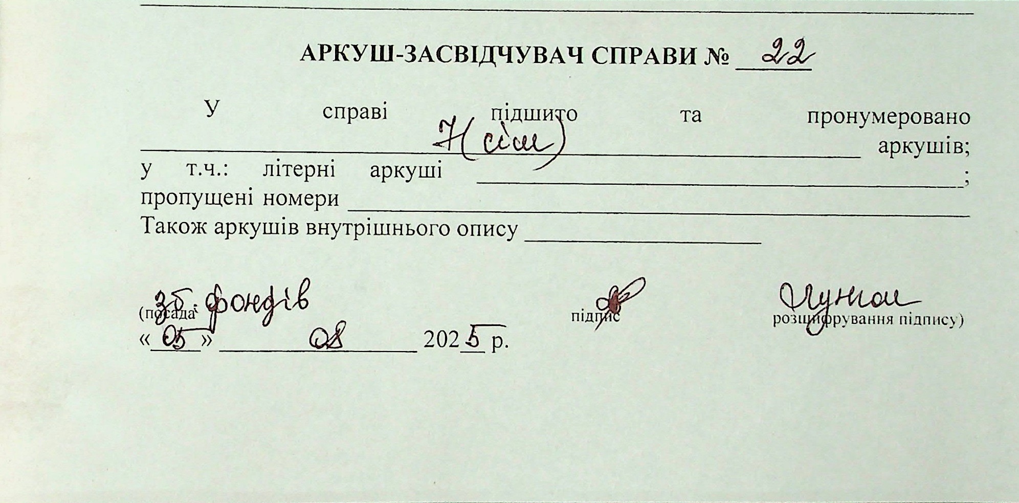 Фонд 71 / Опис 1 / Справа 022