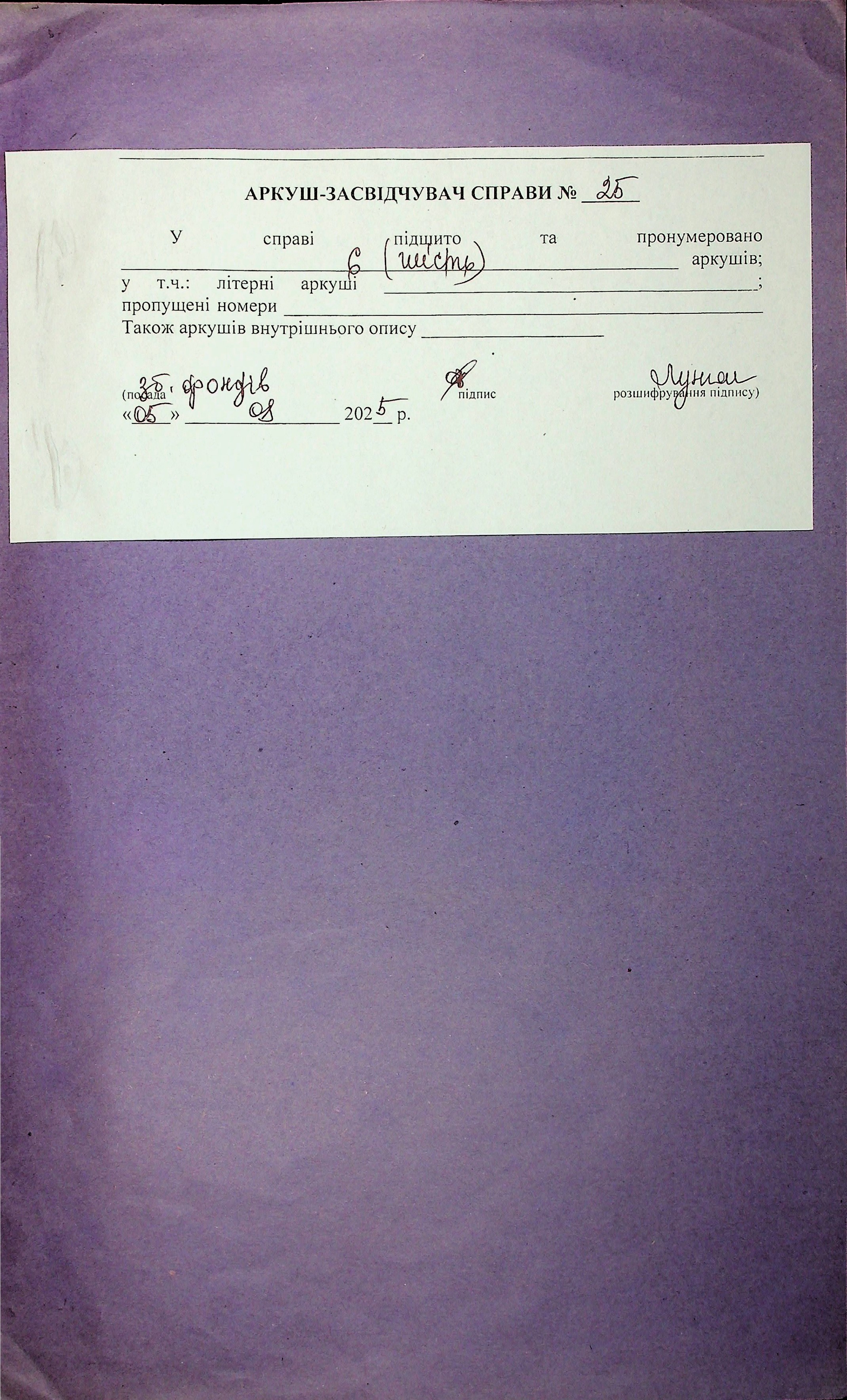 Фонд 71 / Опис 1 / Справа 025