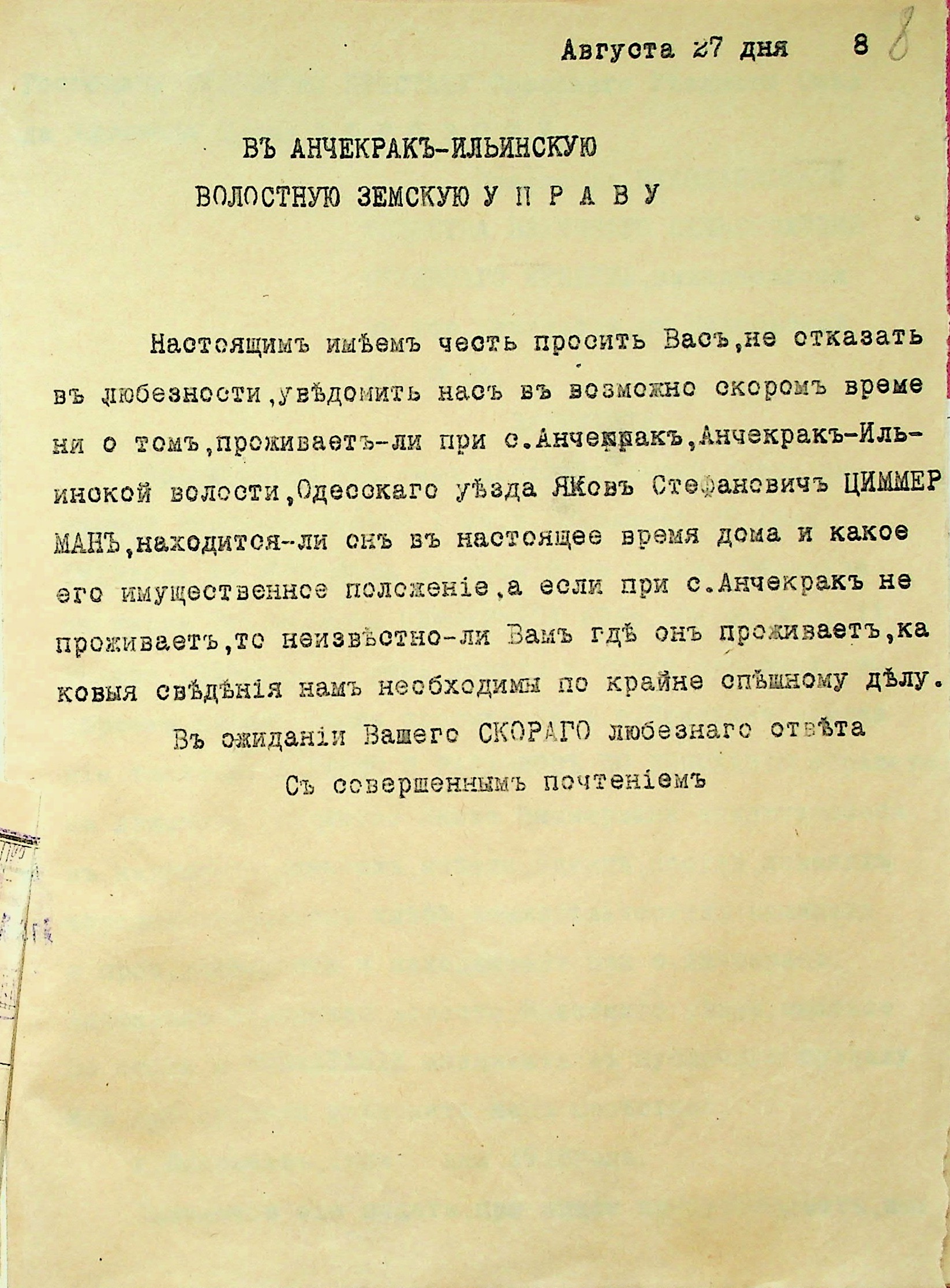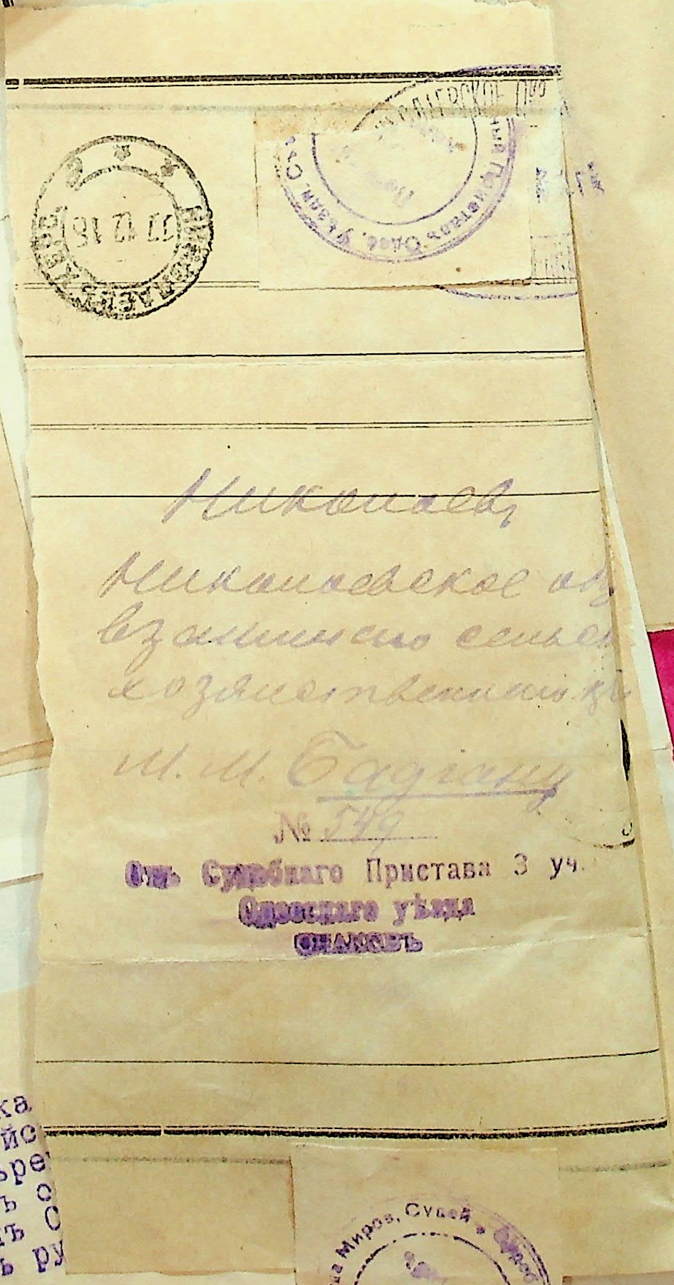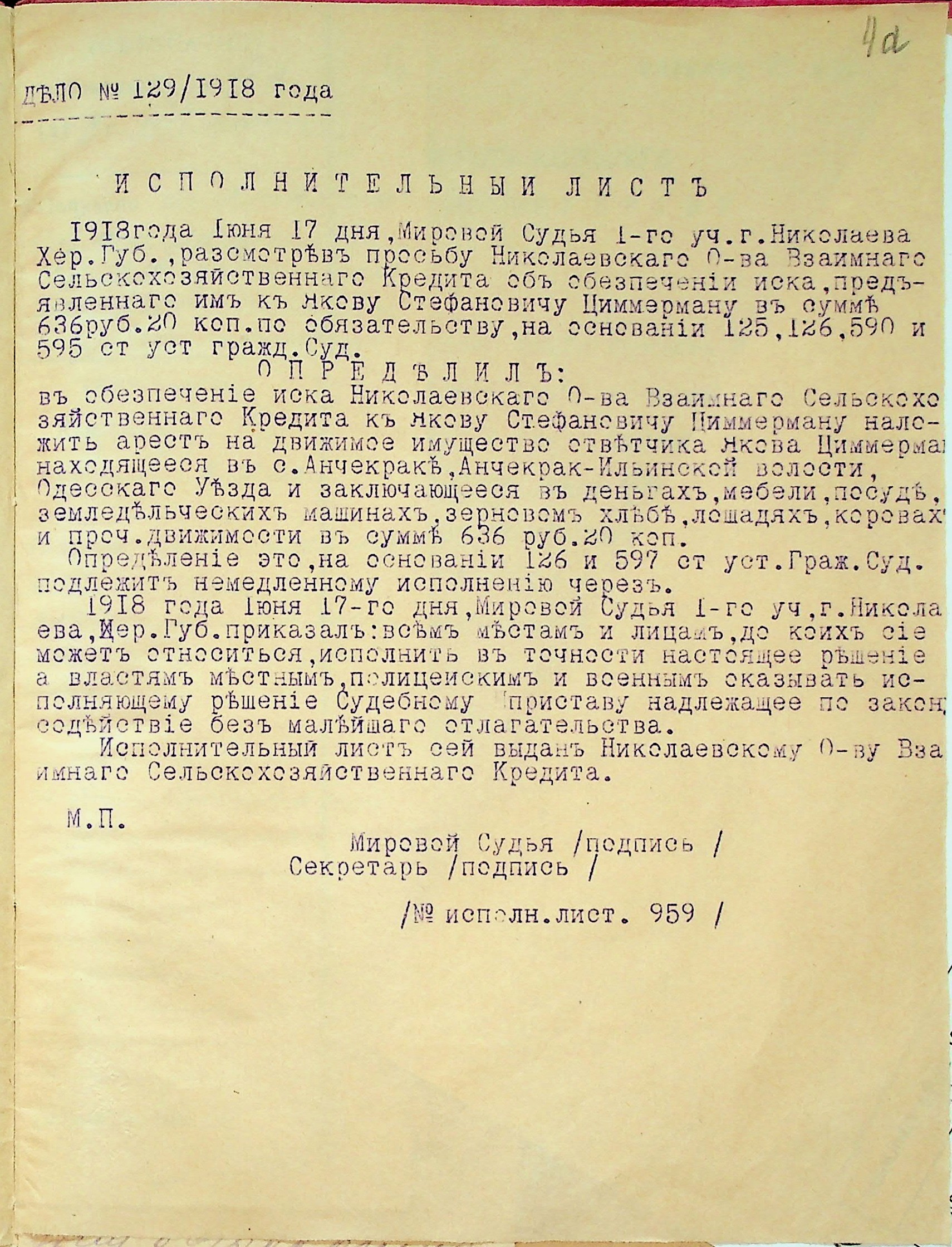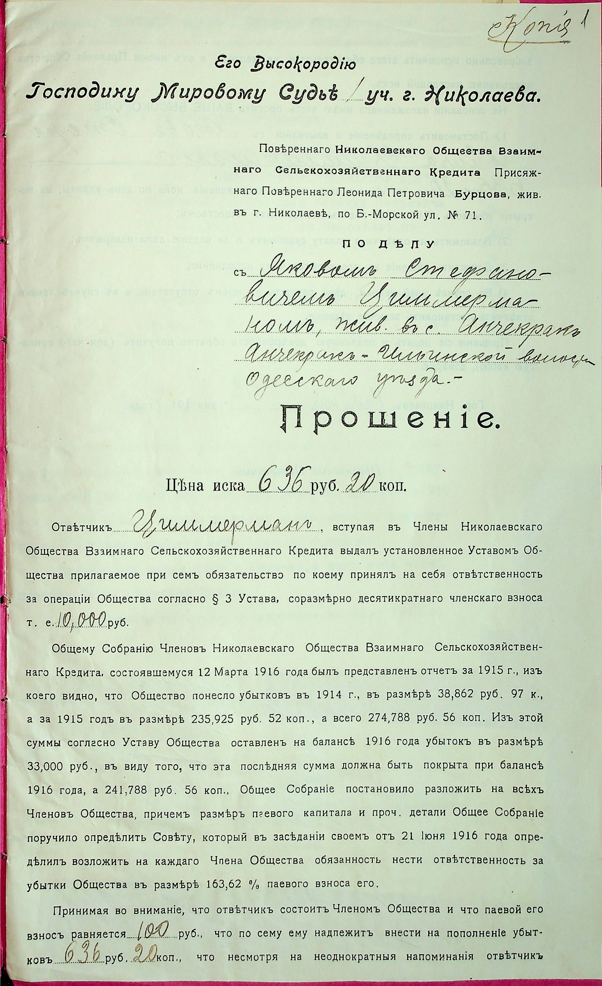 • • • • Справа № 28 “Документи (заява, прохання, квитанція) мирового судді дільниці № 1 м. Миколаїв про стягнення грошей за векселями на користь товариства з Цимермана Я.С.”