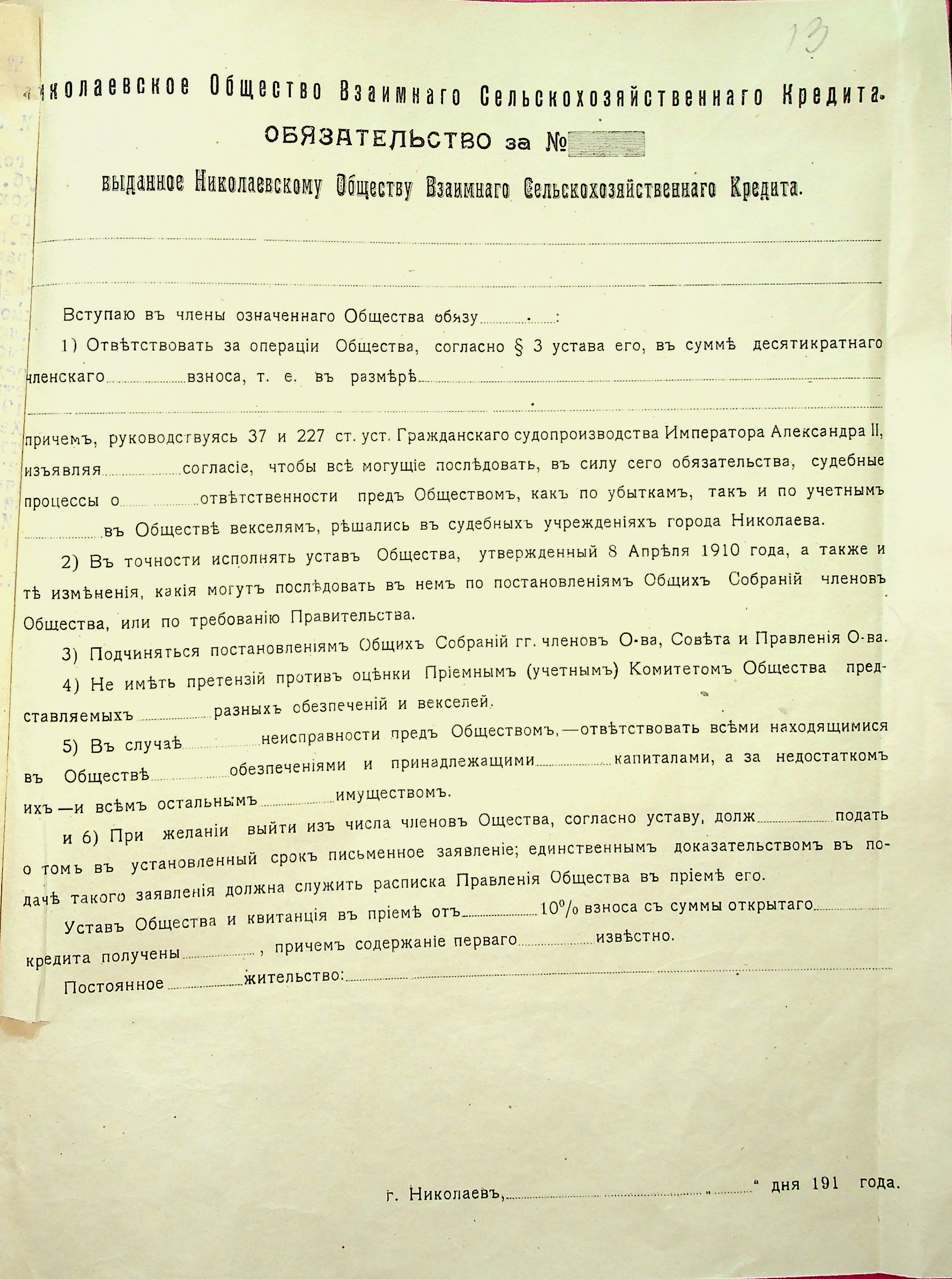 ◦ ◦ Фонд № 71 “Миколаївське товариство взаємного сільськогосподарського кредиту”