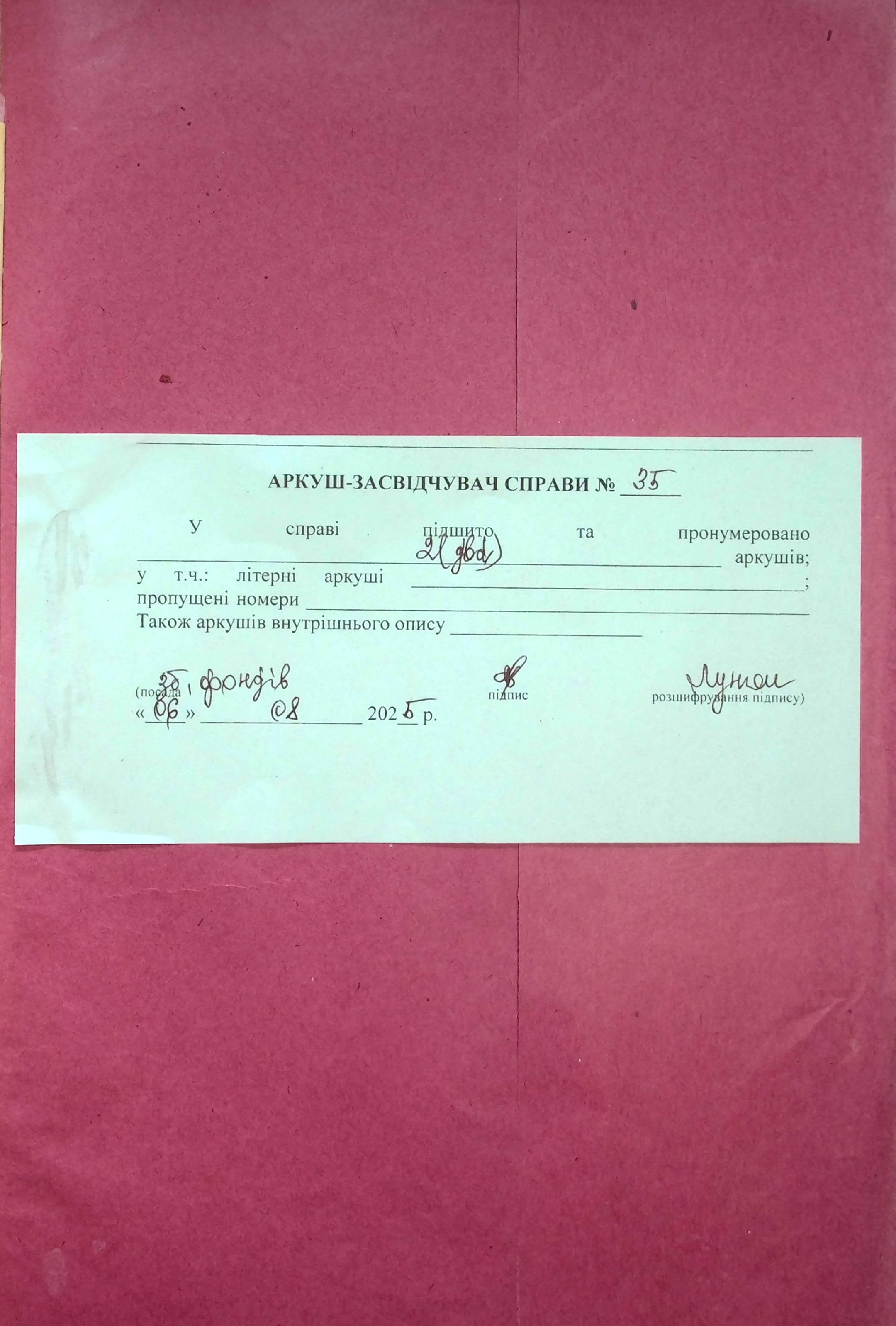Фонд 71 / Опис 1 / Справа 035