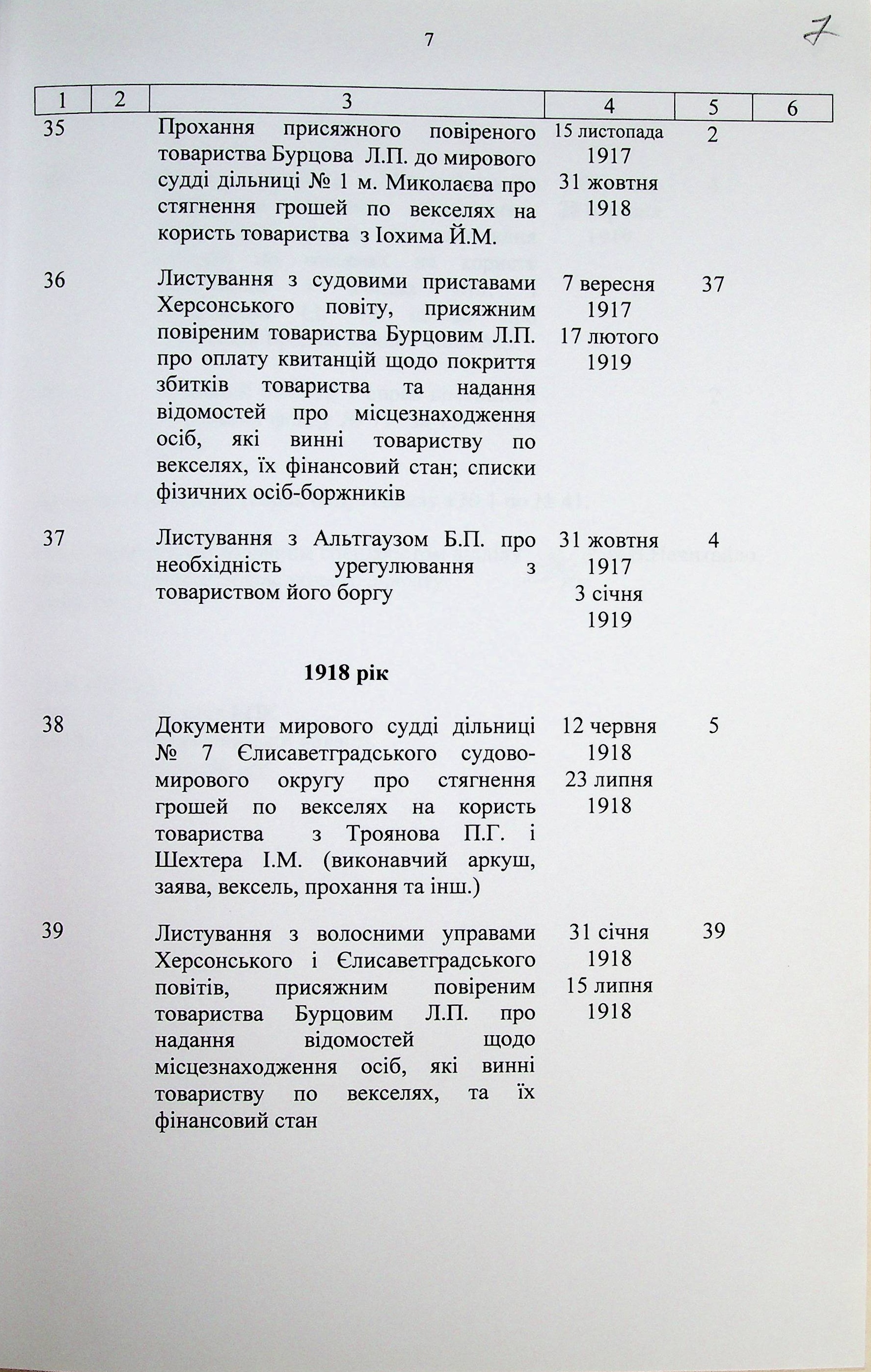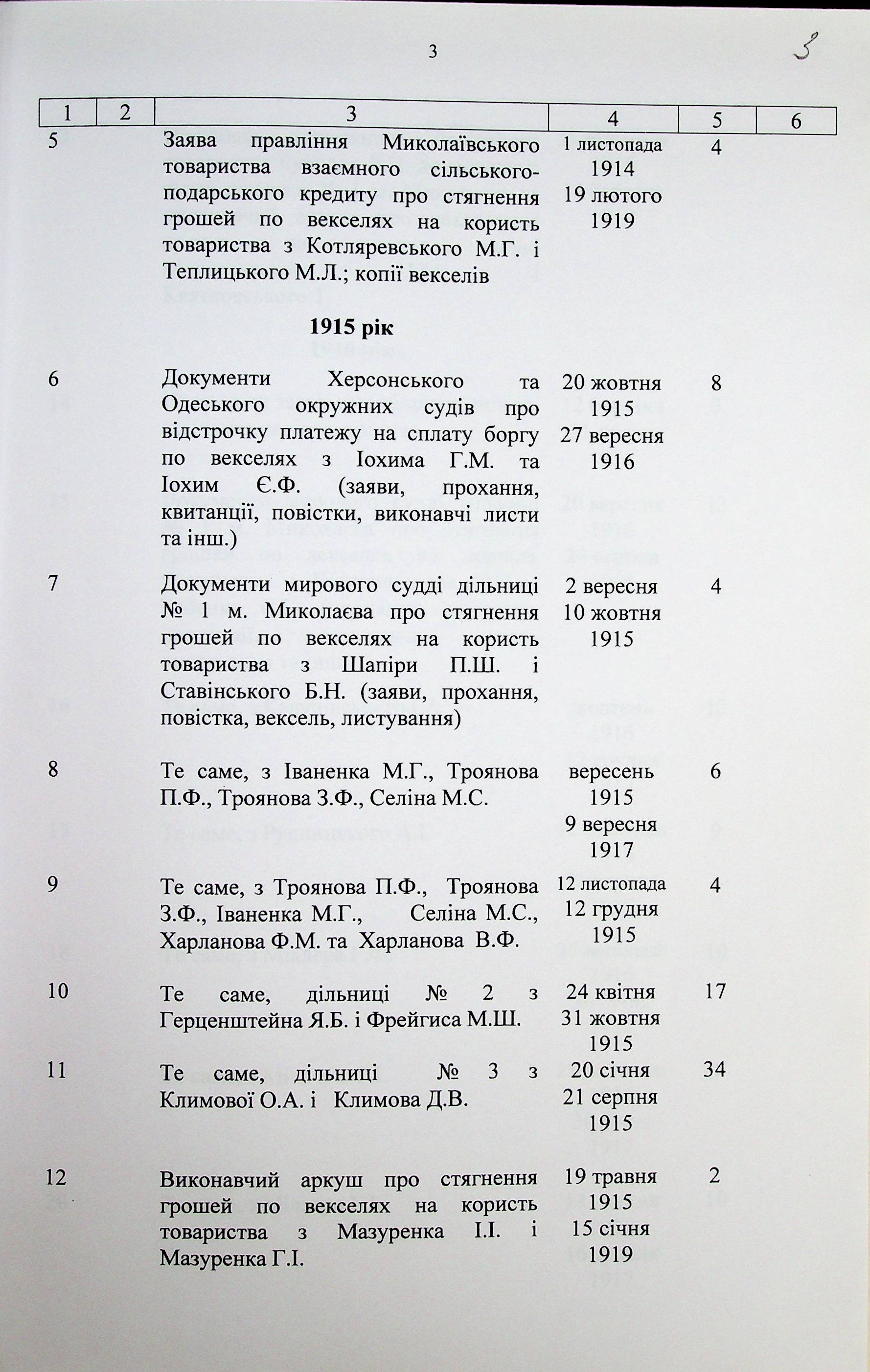 ◦ ◦ ◦ Опис № 1 справ постійного зберігання за 1914-1919 роки