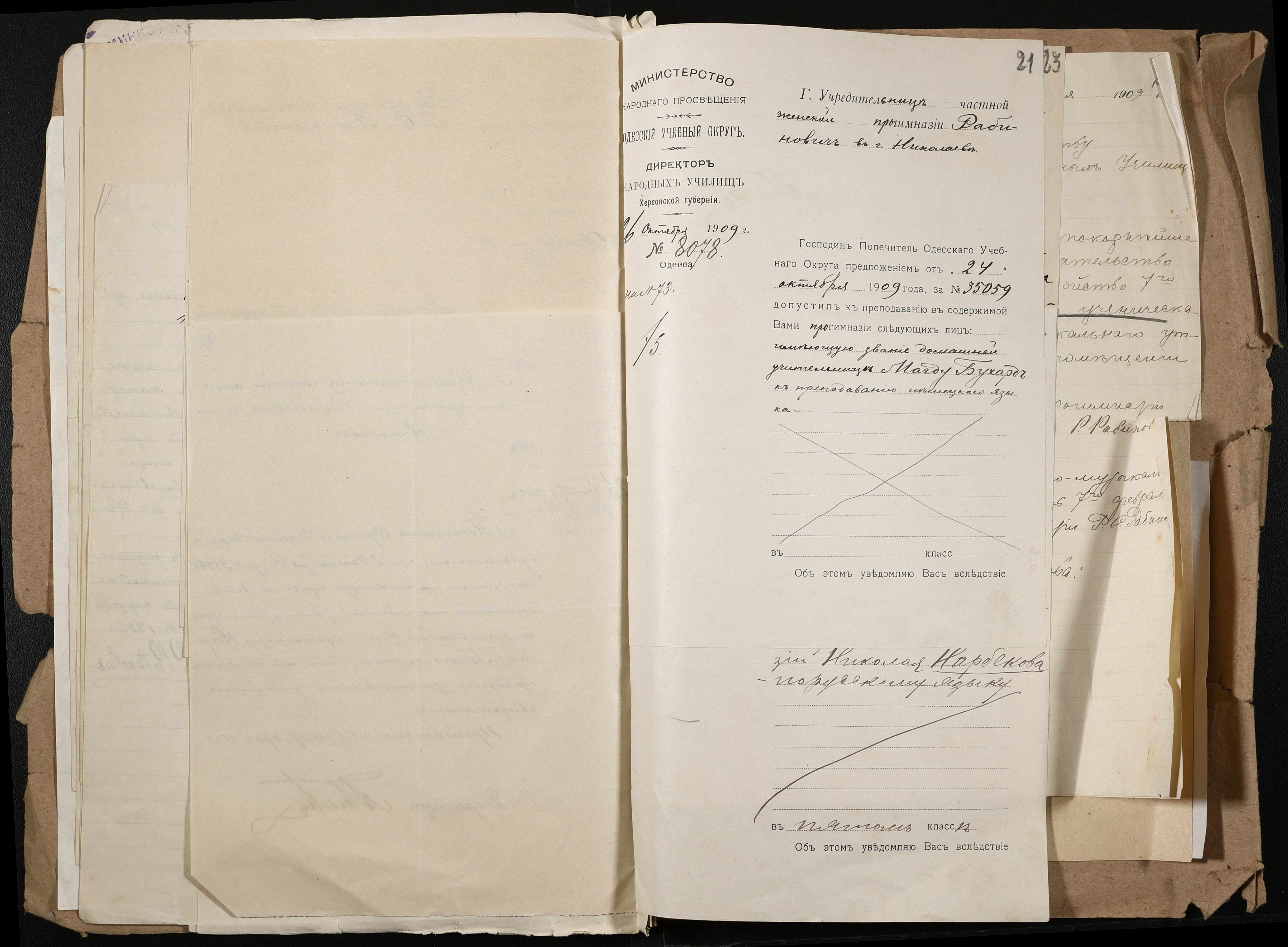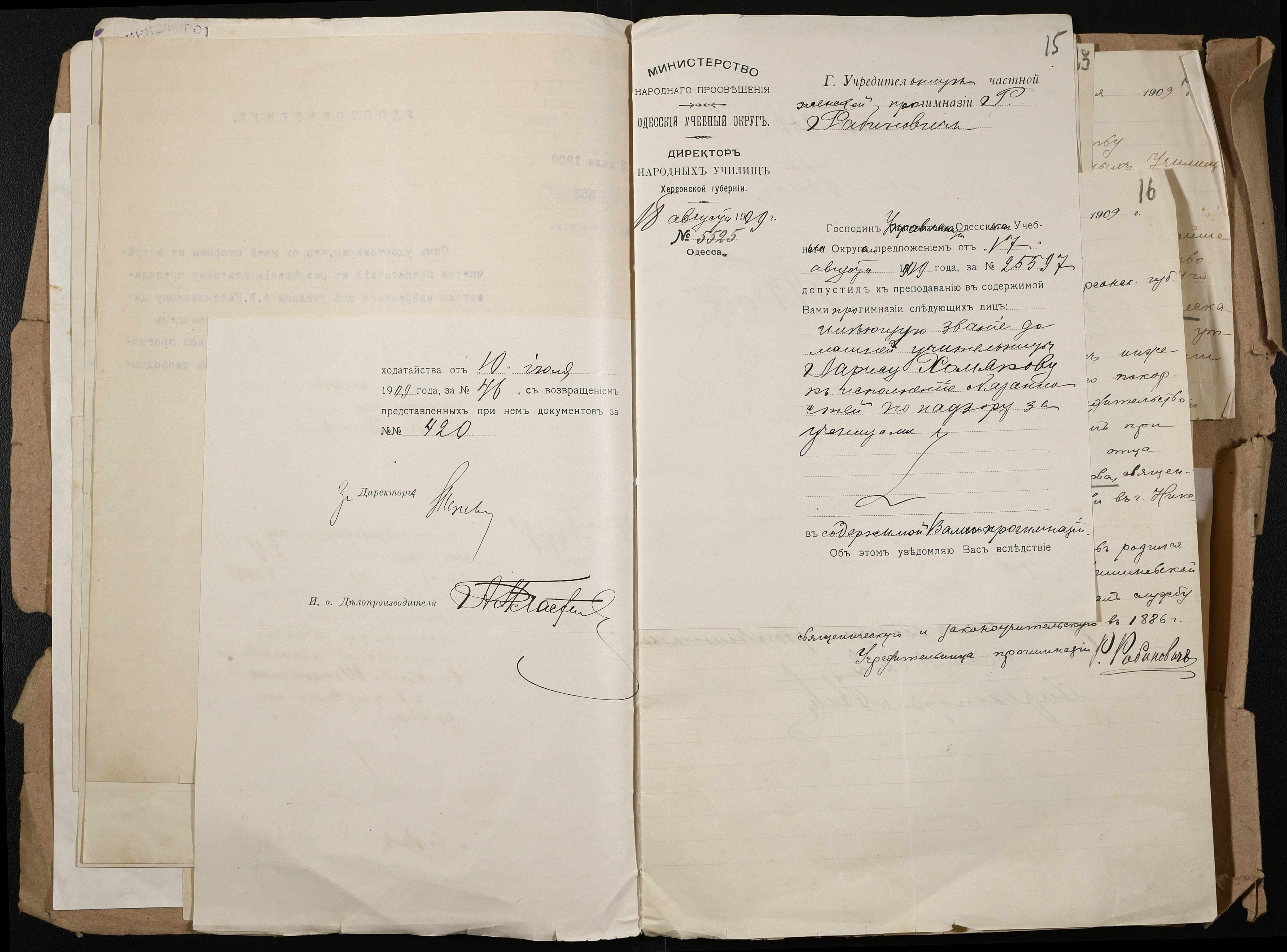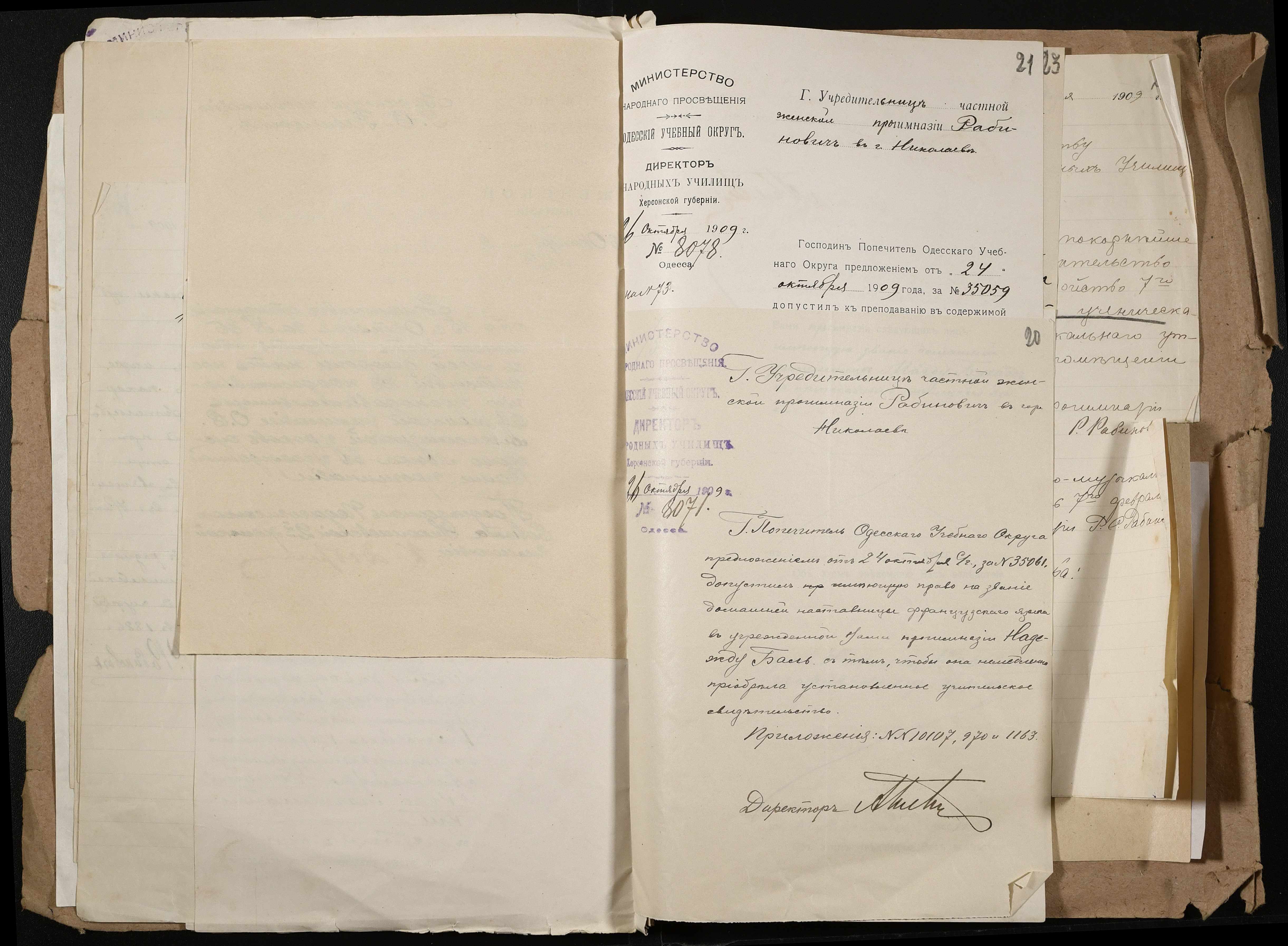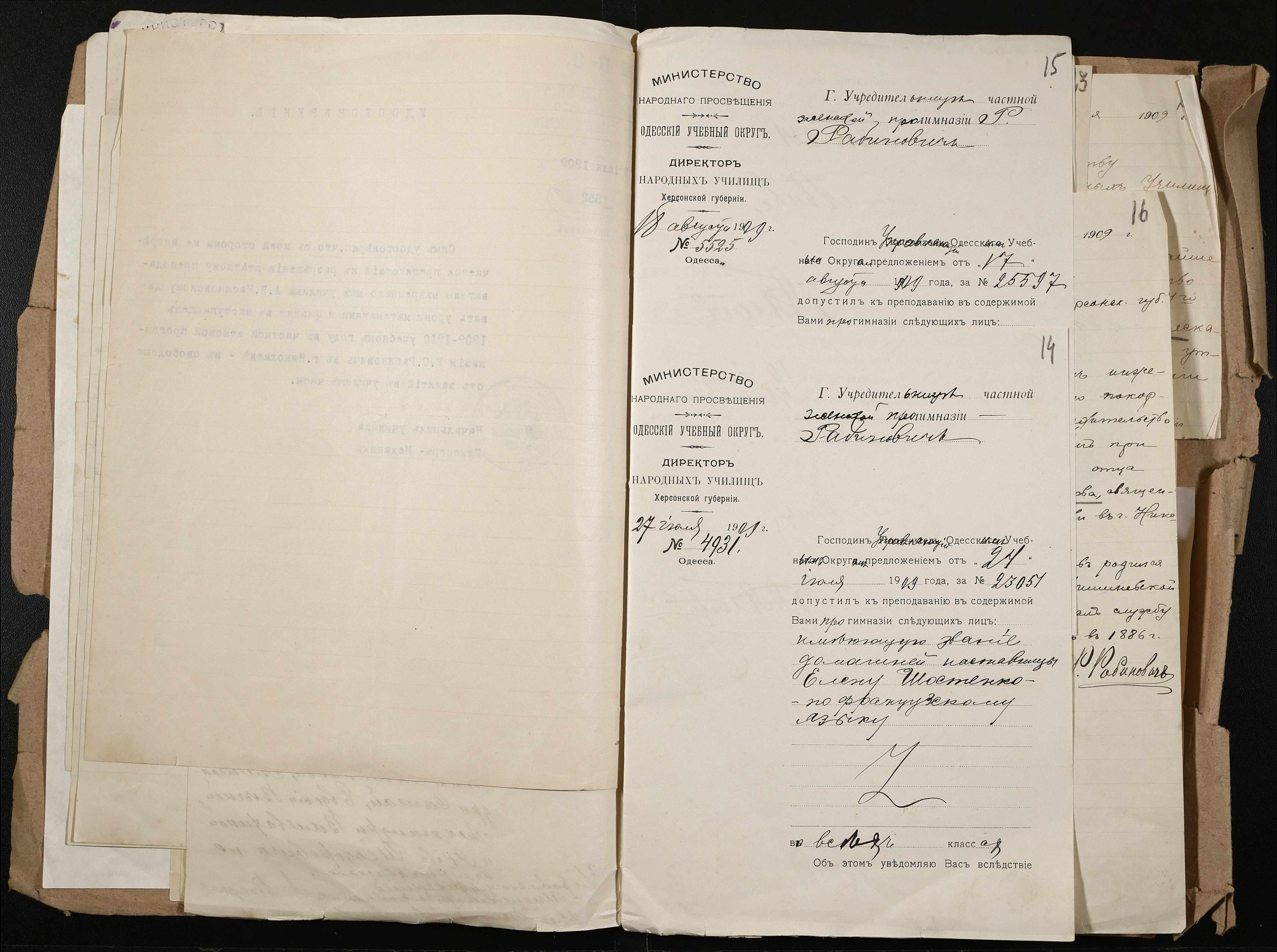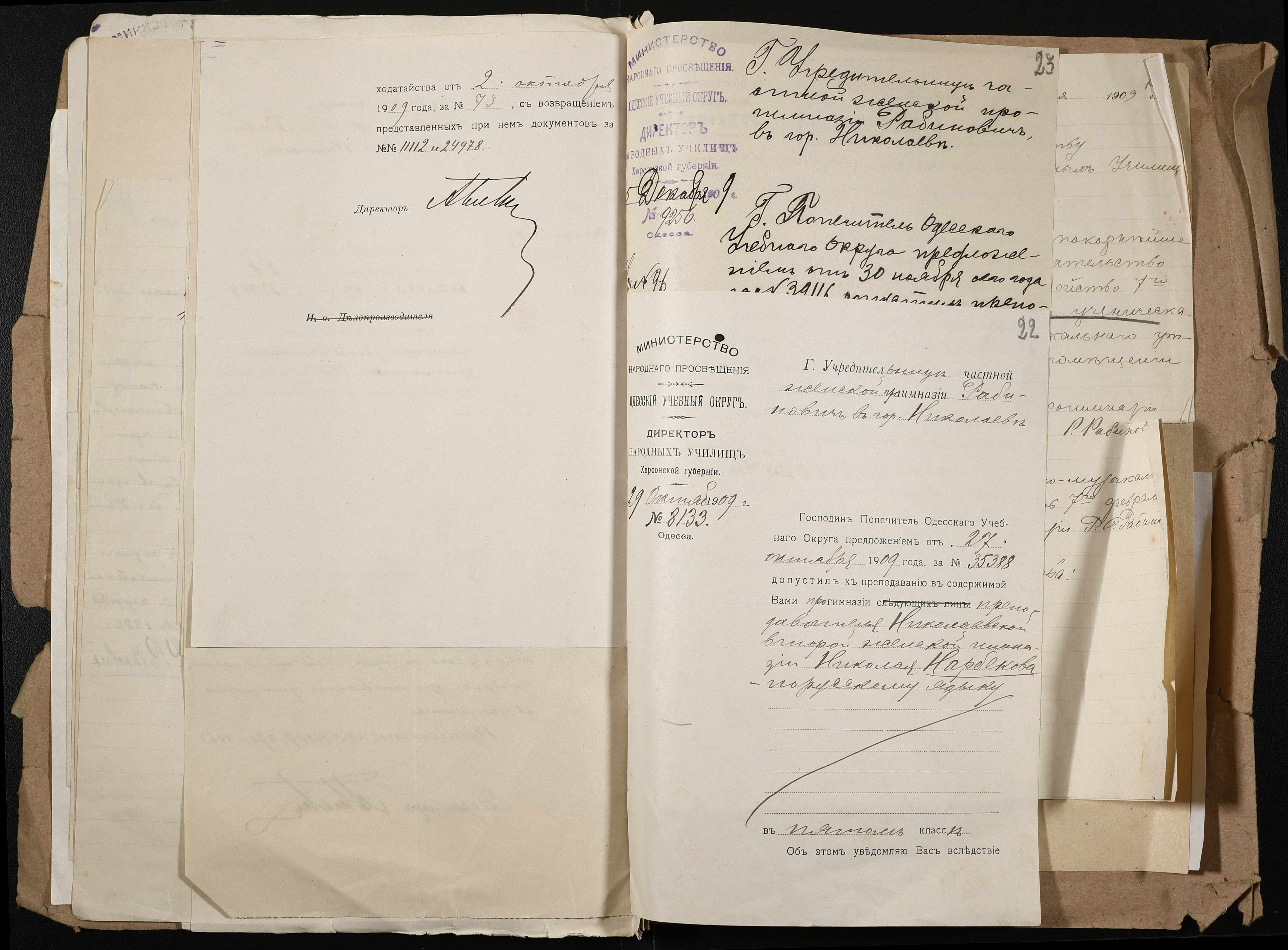 • • • • Справа № 1 “Листування з директором народних училищ Одеського навчального округу про допуск учителів до викладання предметів”