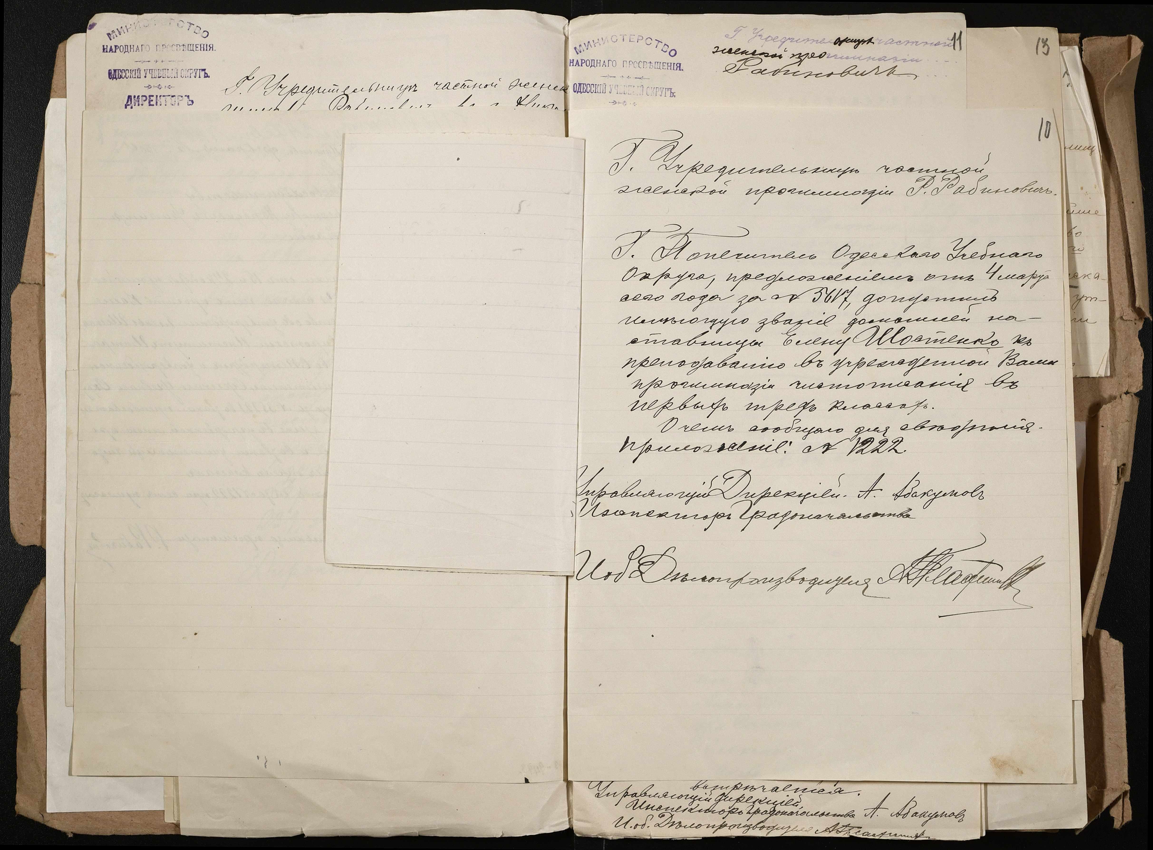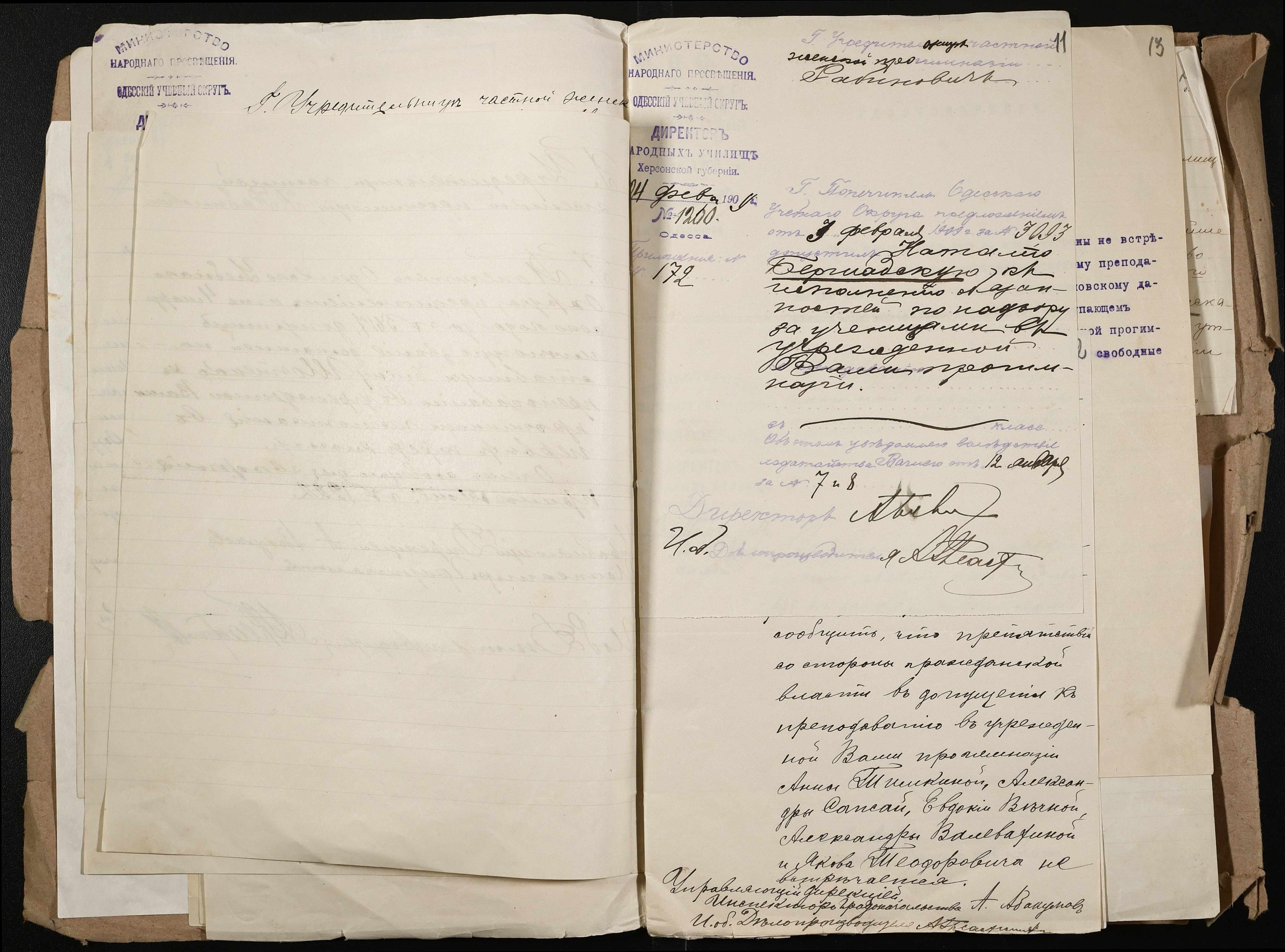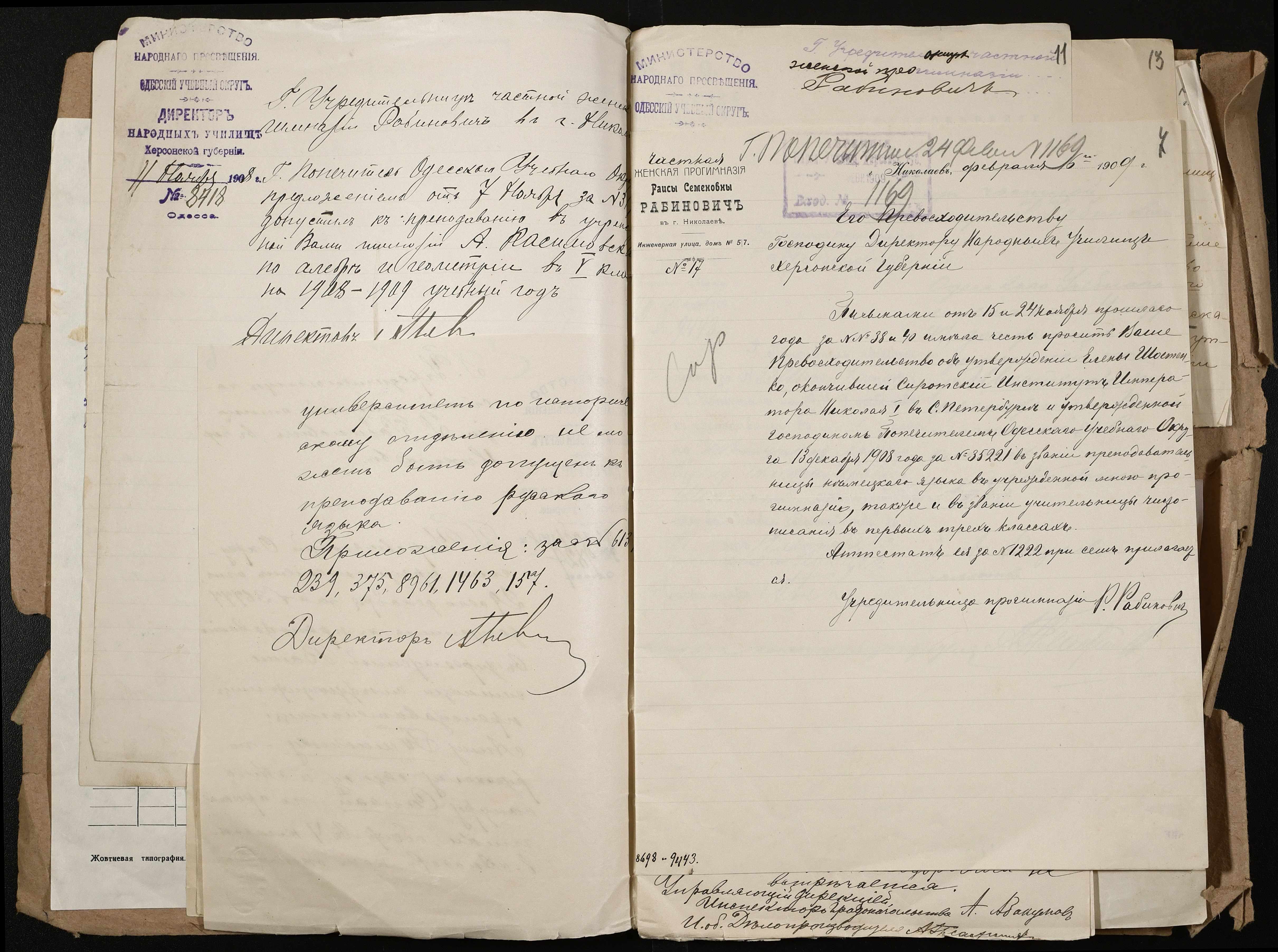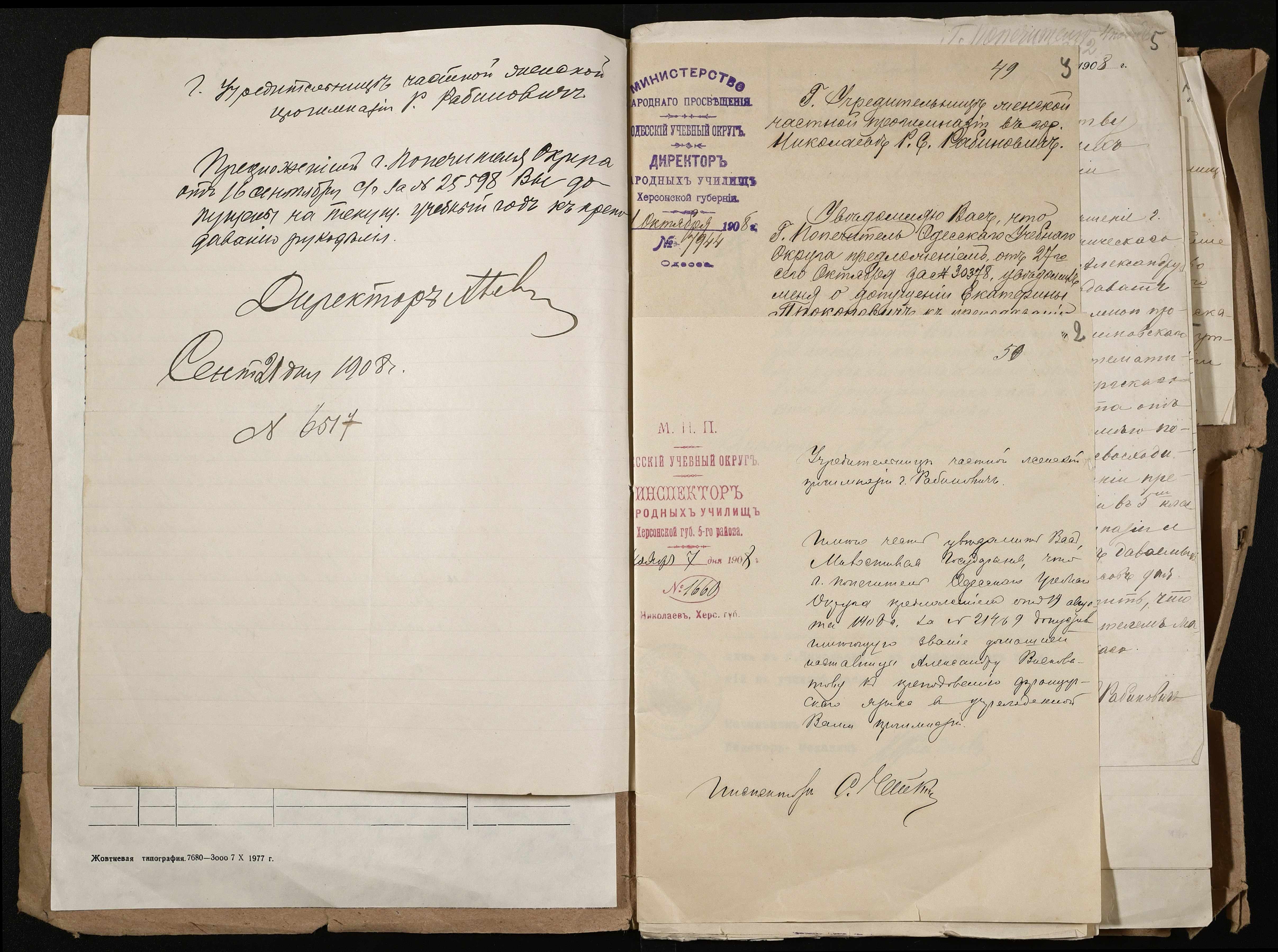 • • • • Справа № 1 “Листування з директором народних училищ Одеського навчального округу про допуск учителів до викладання предметів”