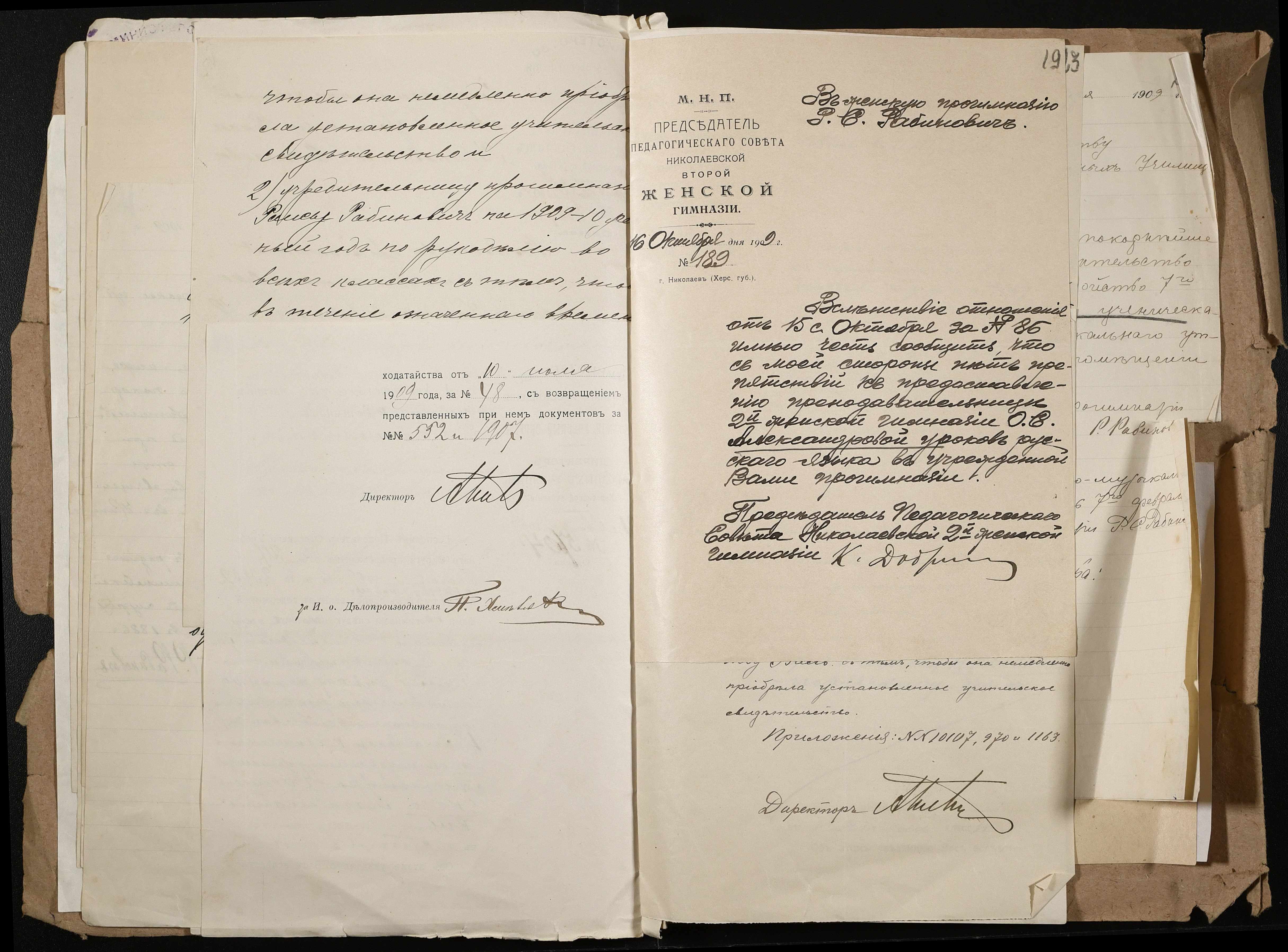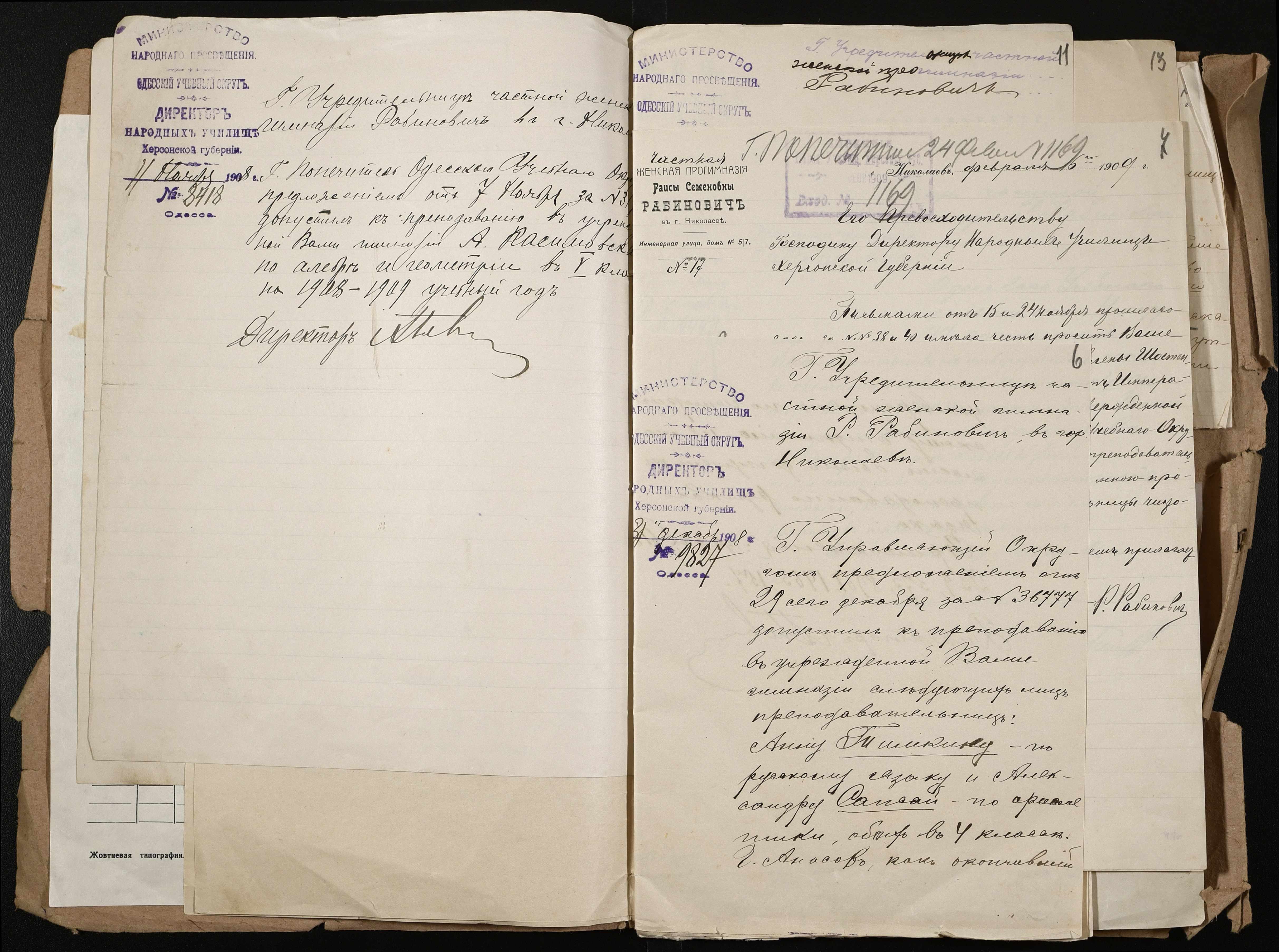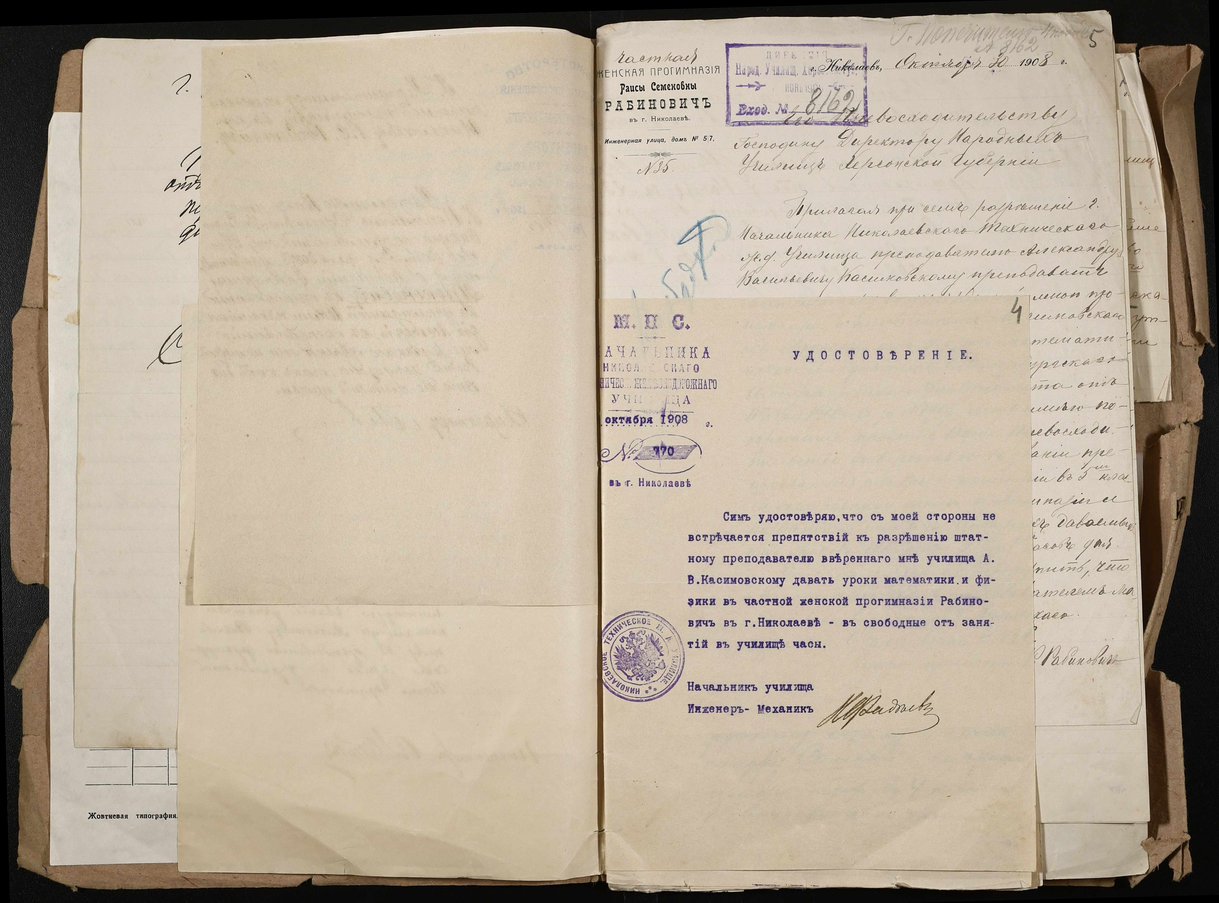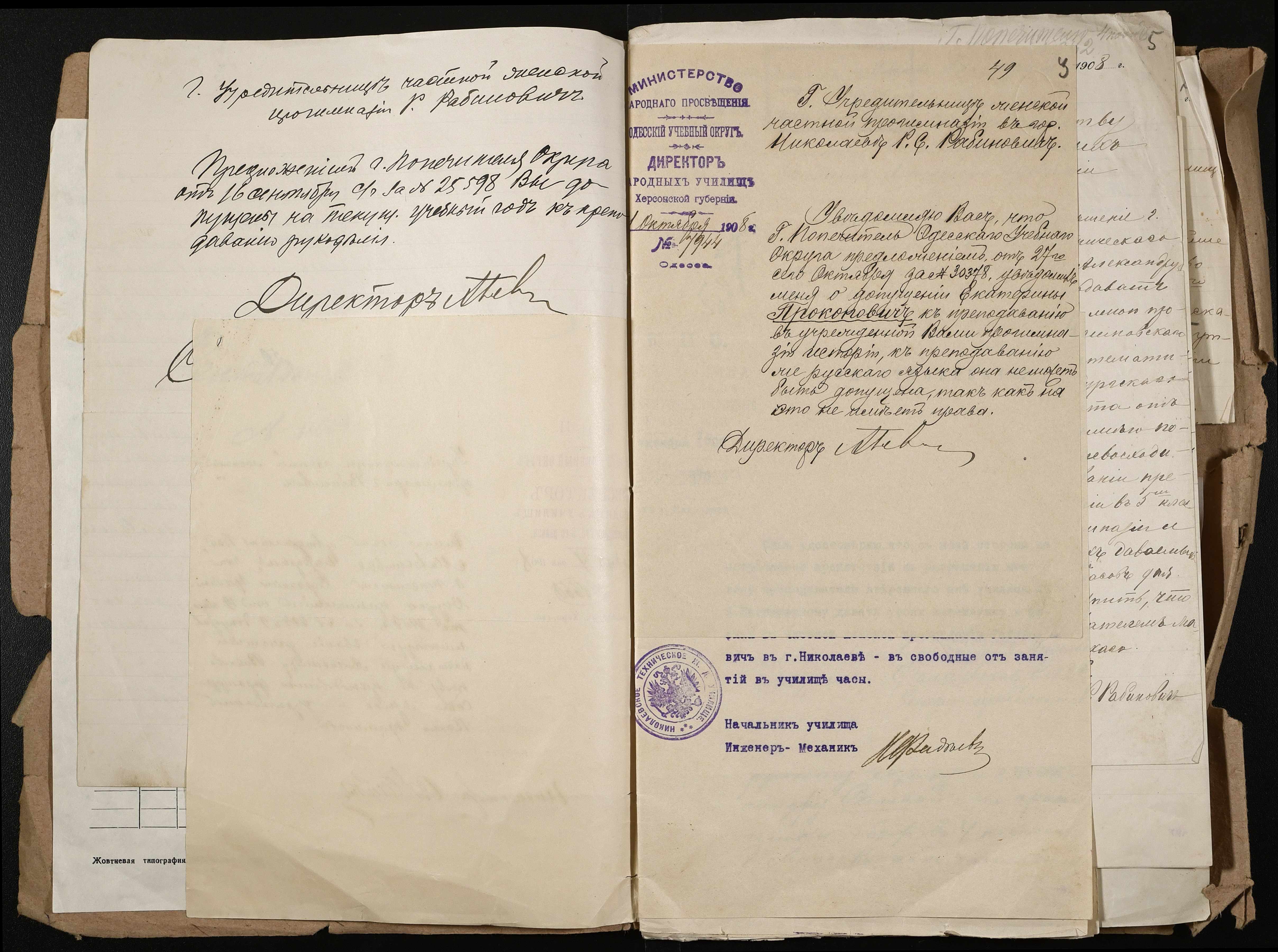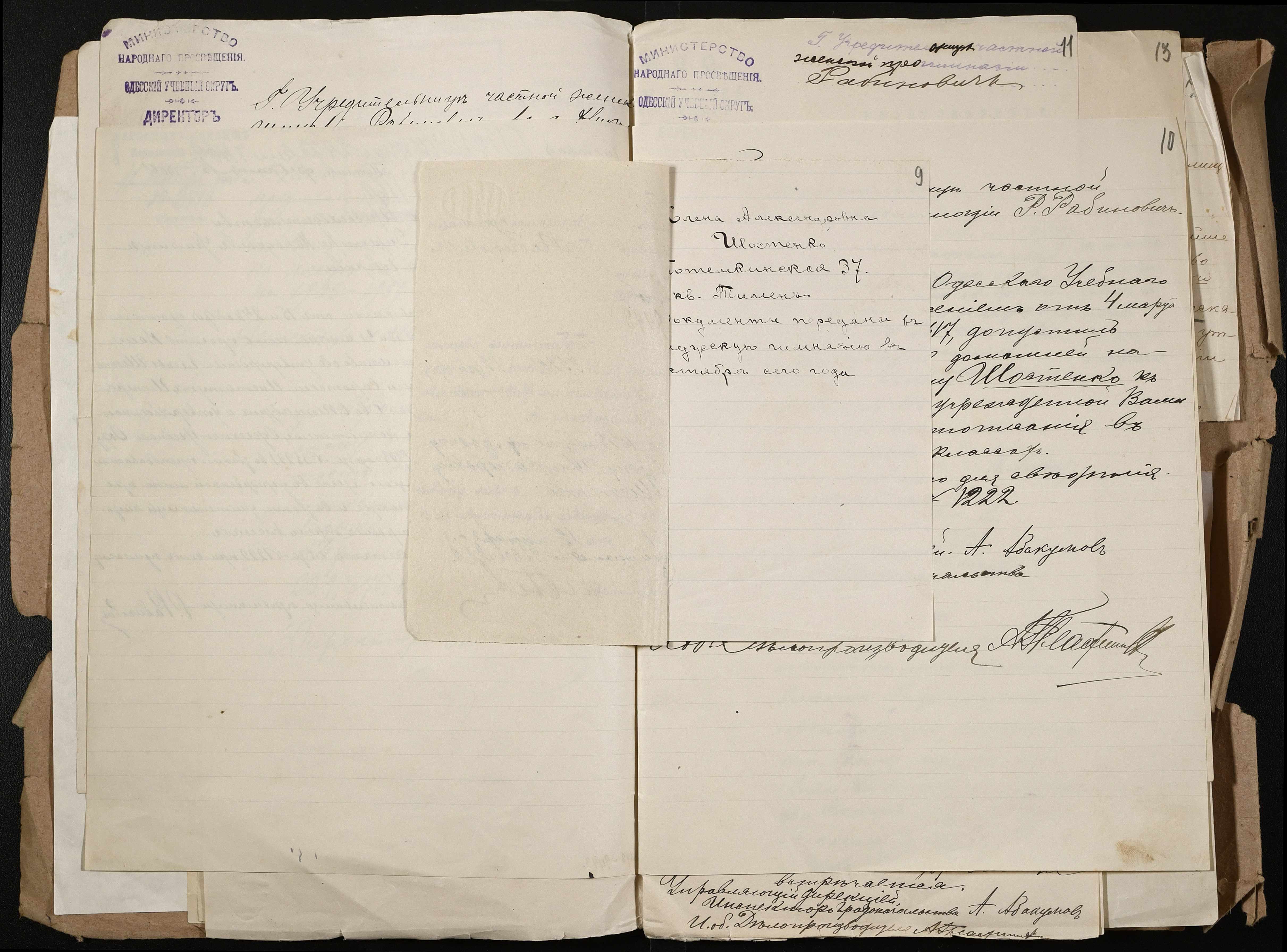 • • • • Справа № 1 “Листування з директором народних училищ Одеського навчального округу про допуск учителів до викладання предметів”