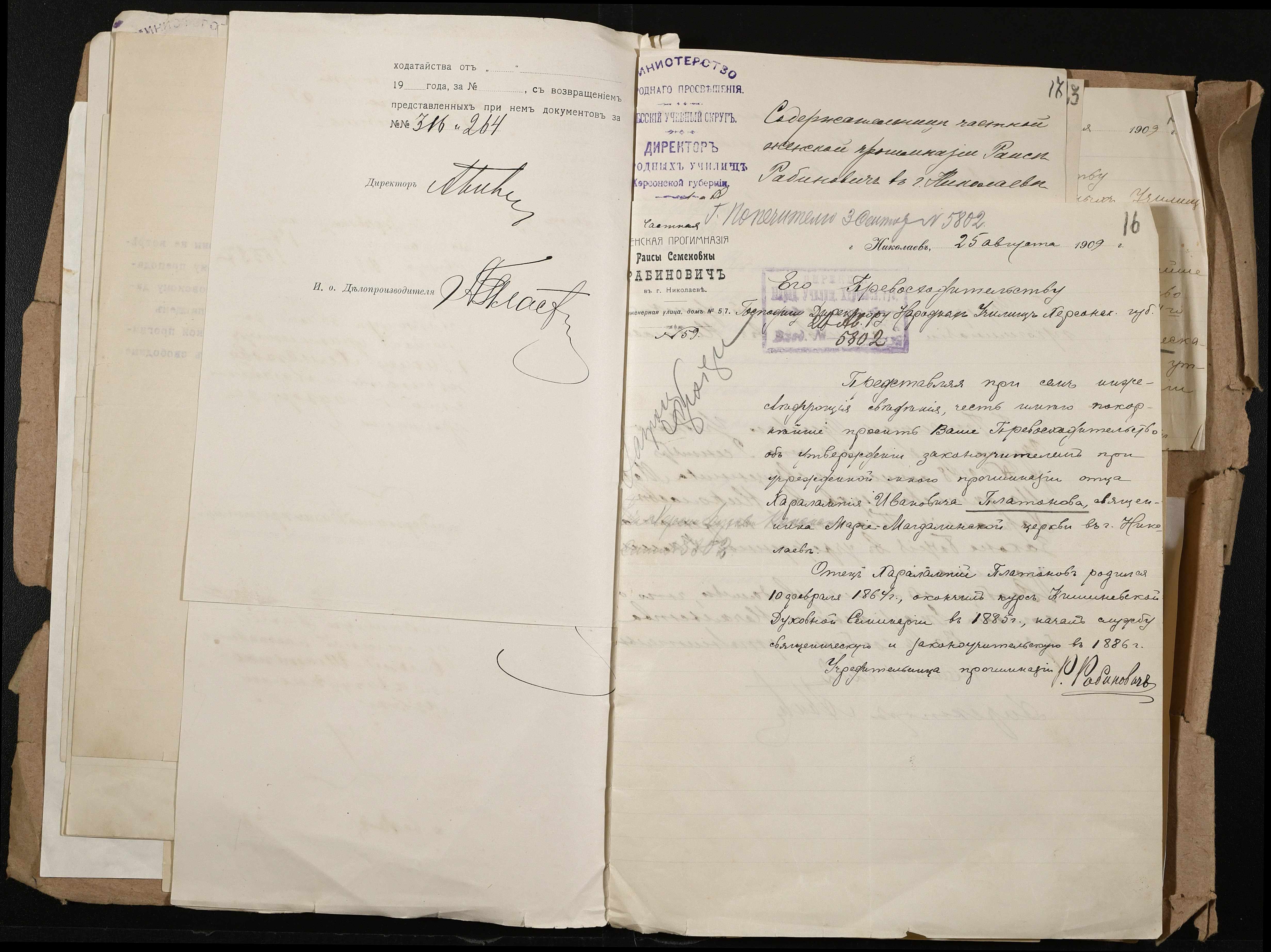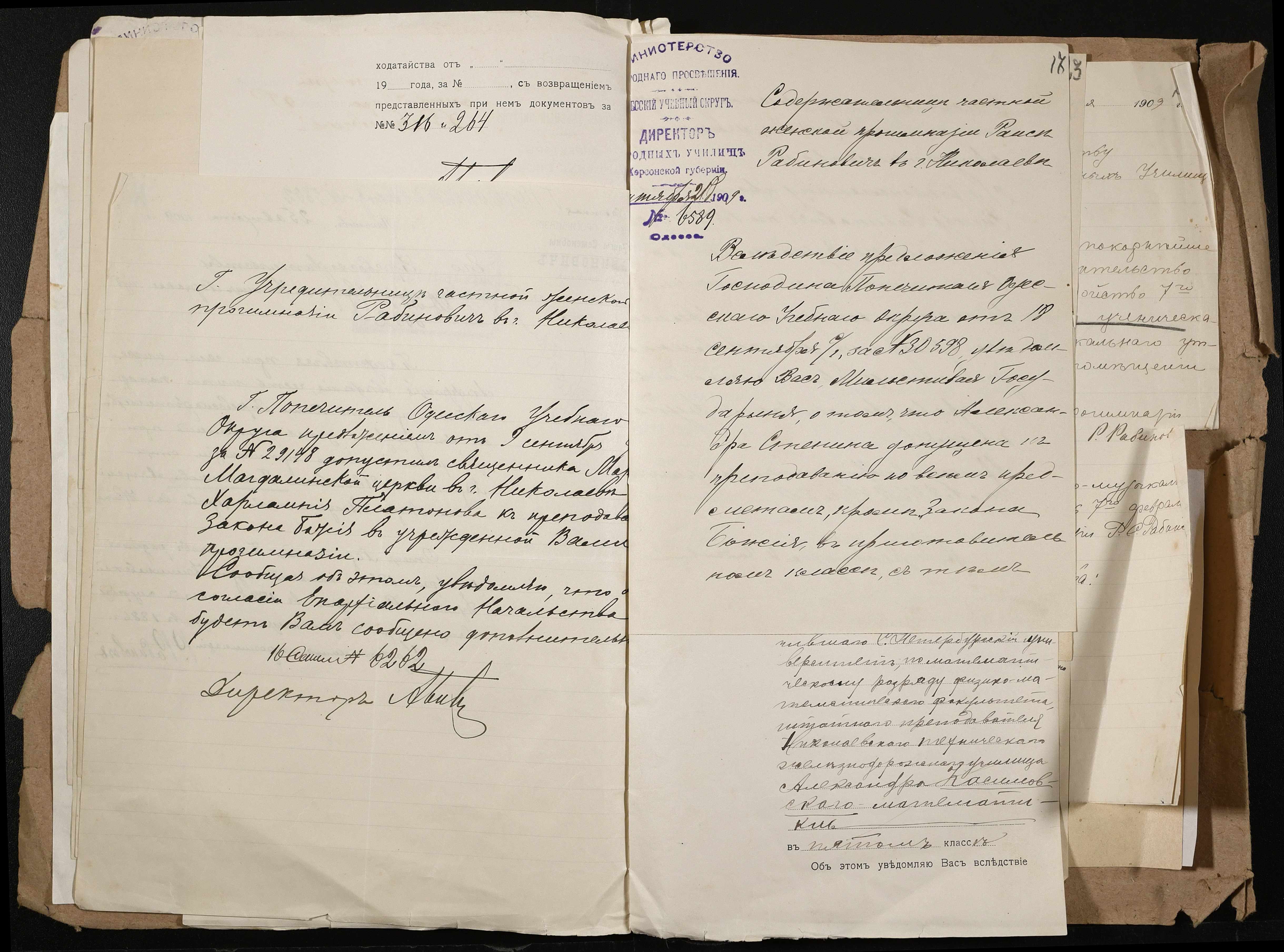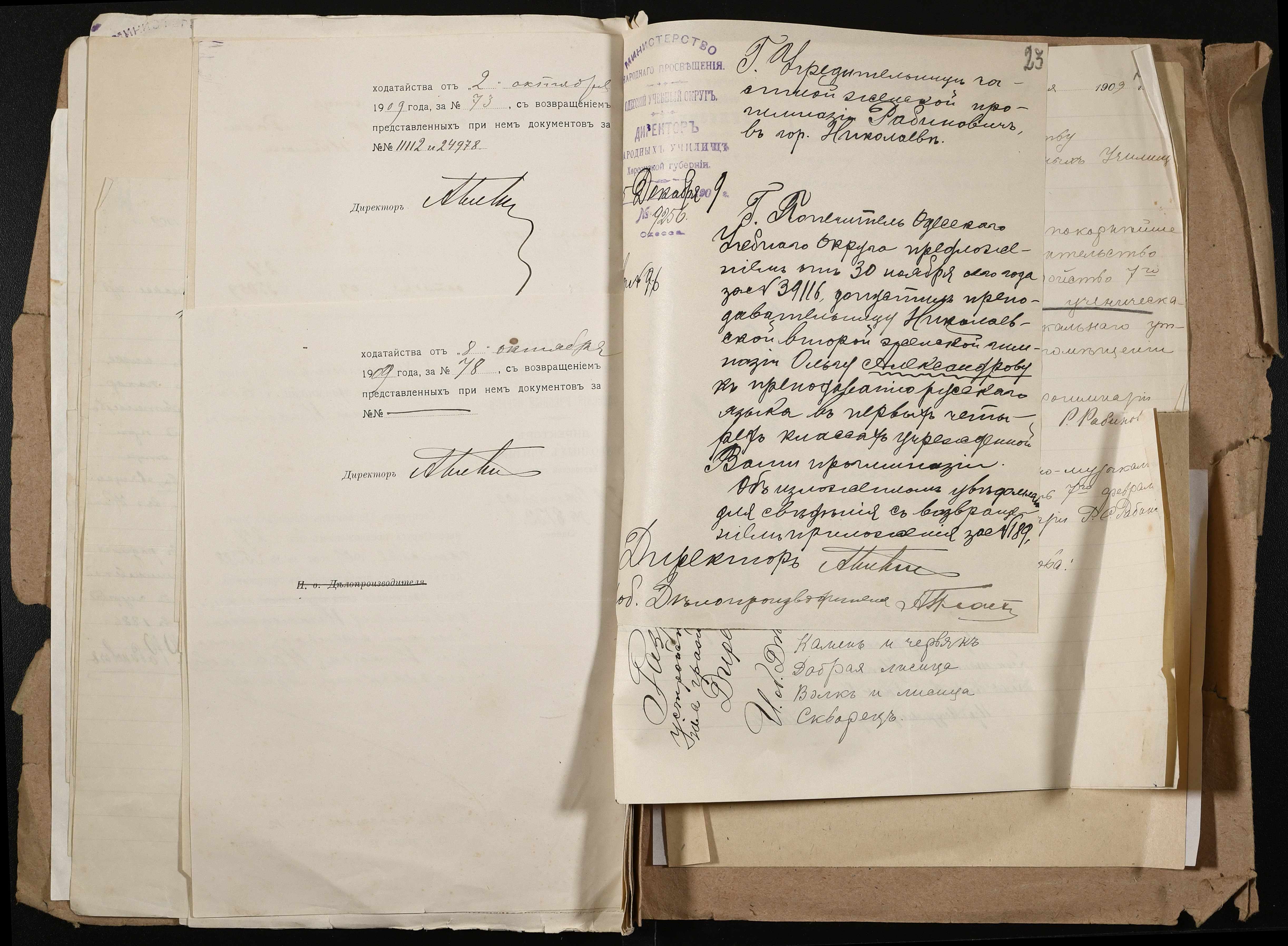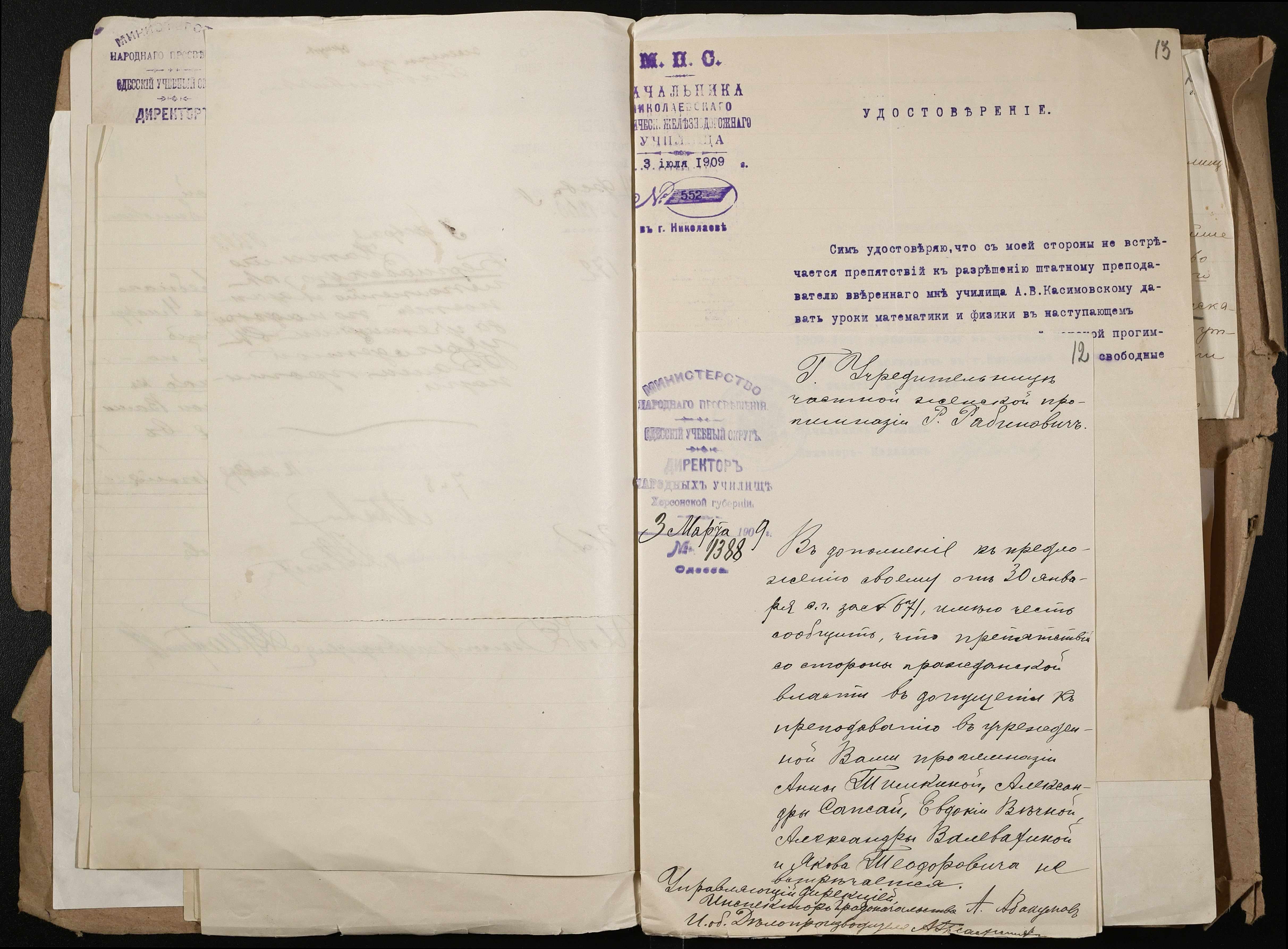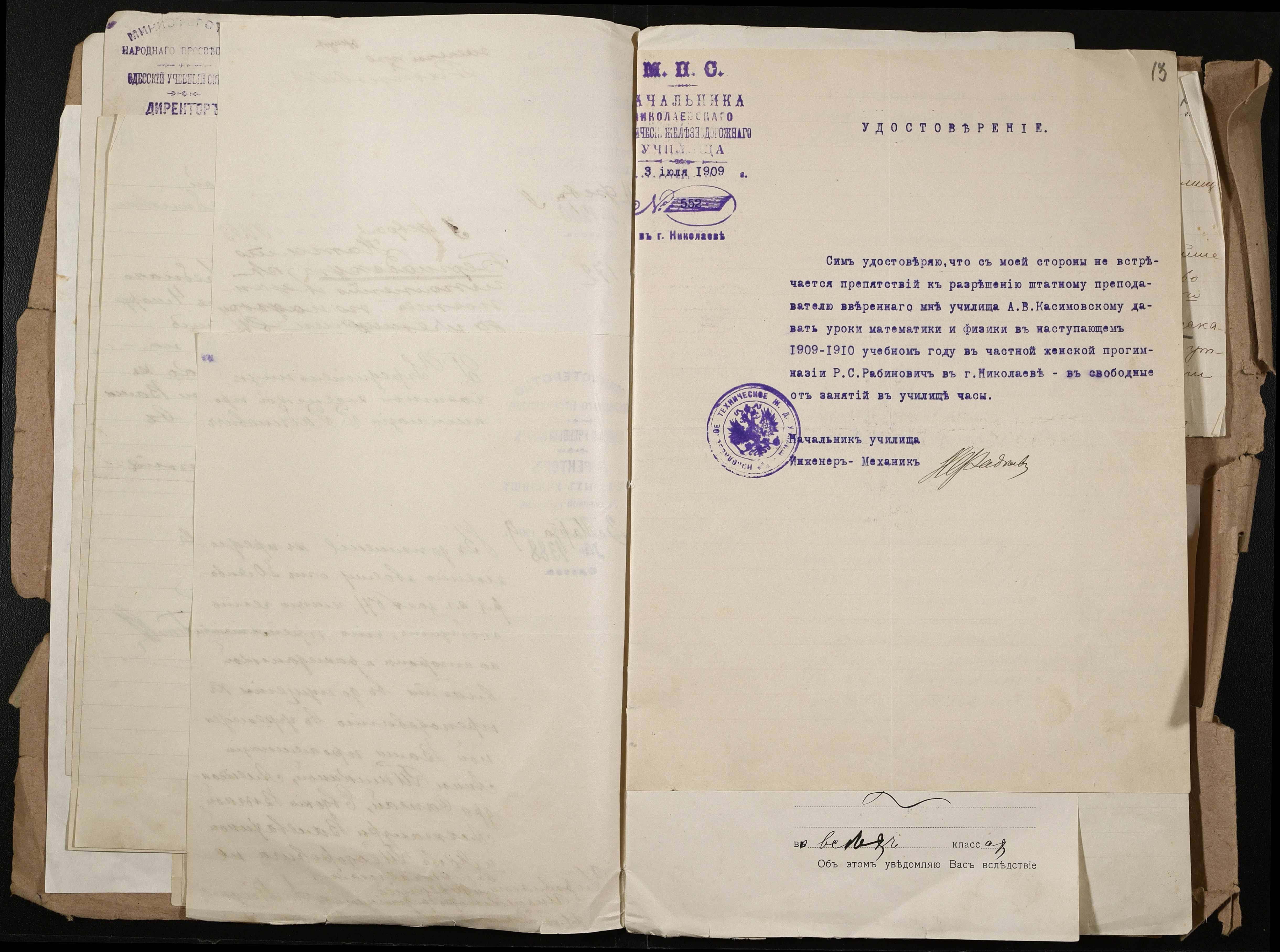 • • • • Справа № 1 “Листування з директором народних училищ Одеського навчального округу про допуск учителів до викладання предметів”
