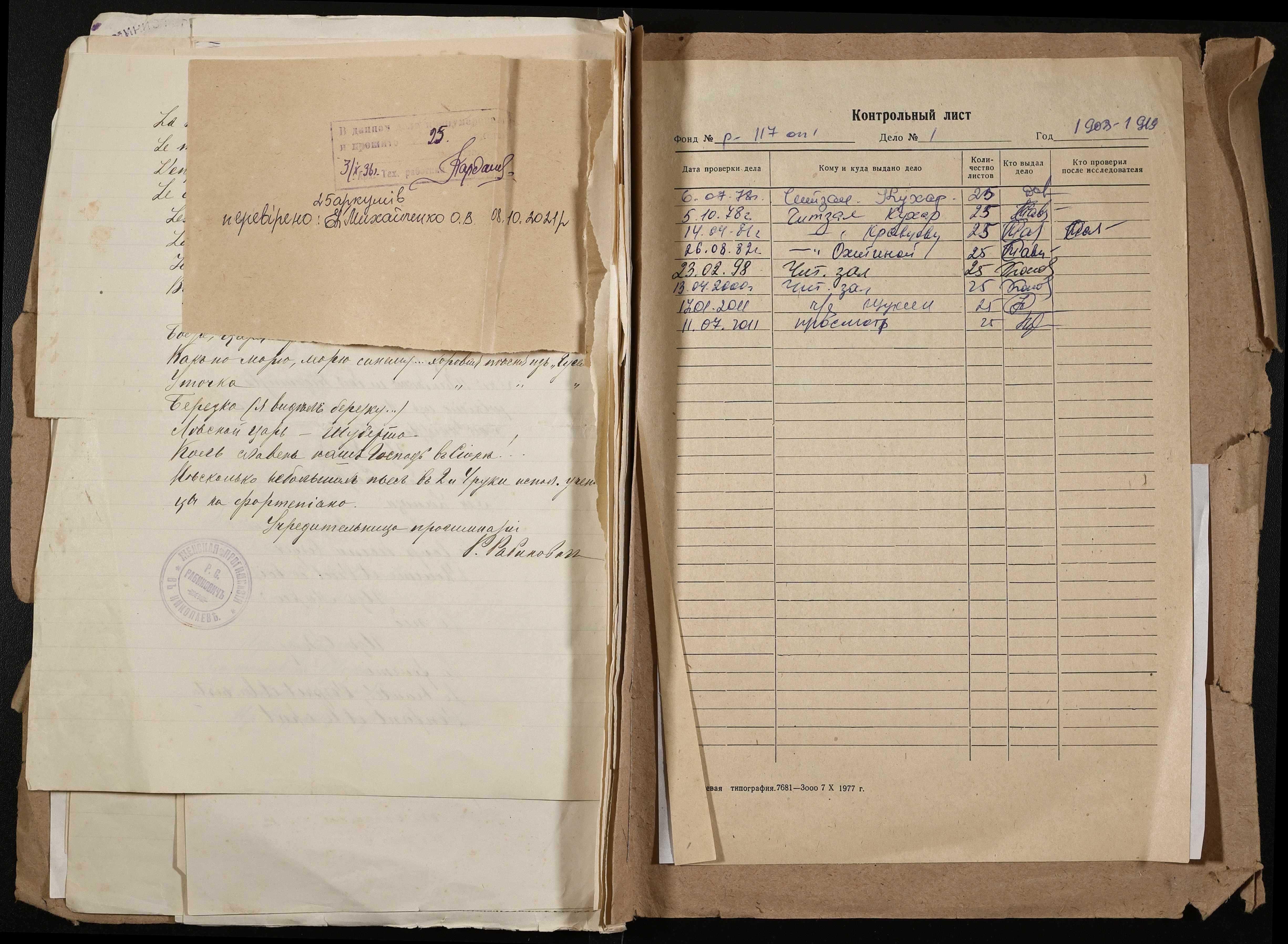 ◦ ◦ ◦ Опис № 1 справ постійного зберігання за 1908 – 1920 роки