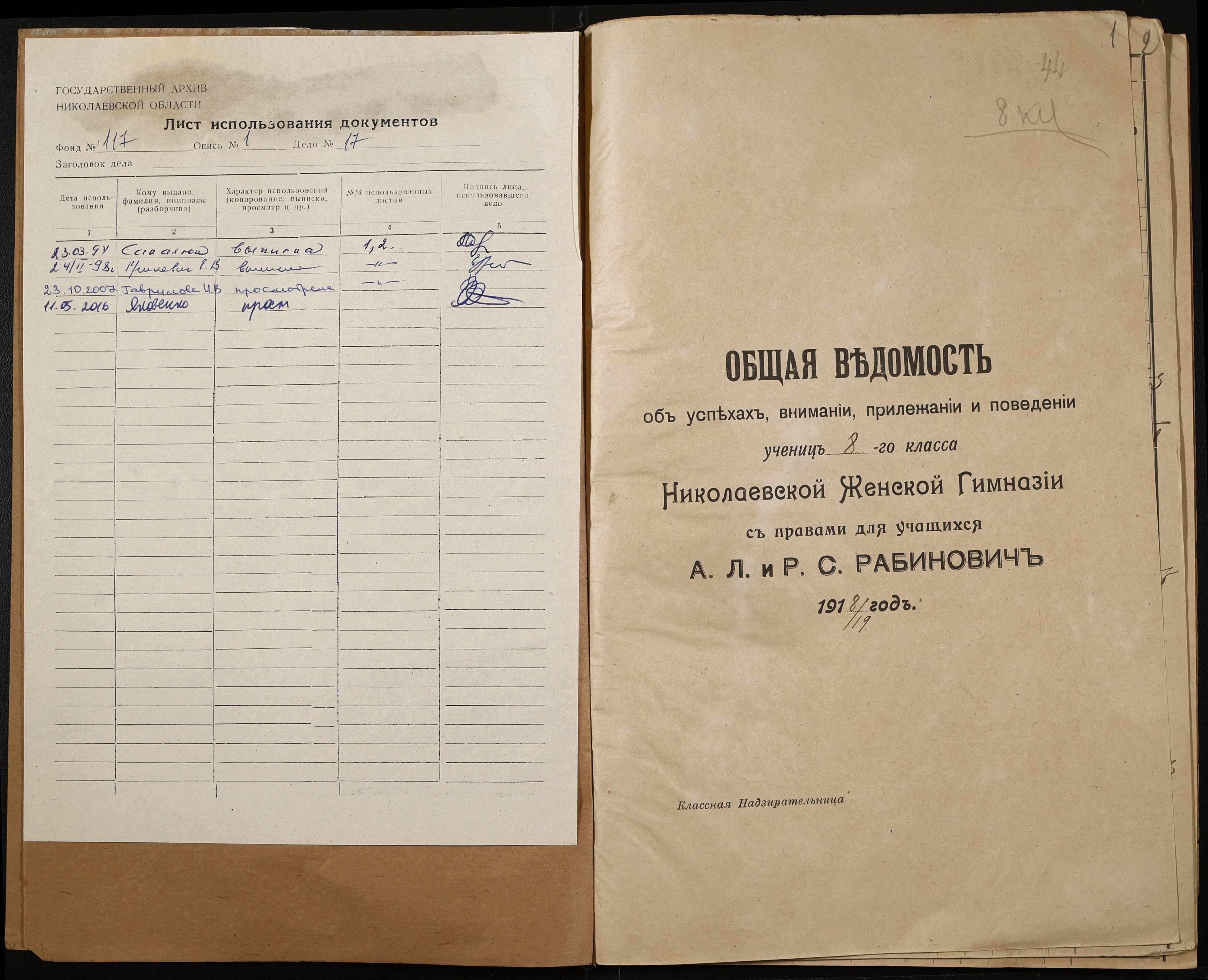 ◦ ◦ Фонд № 117 “Миколаївська 5-а жіноча гімназія”