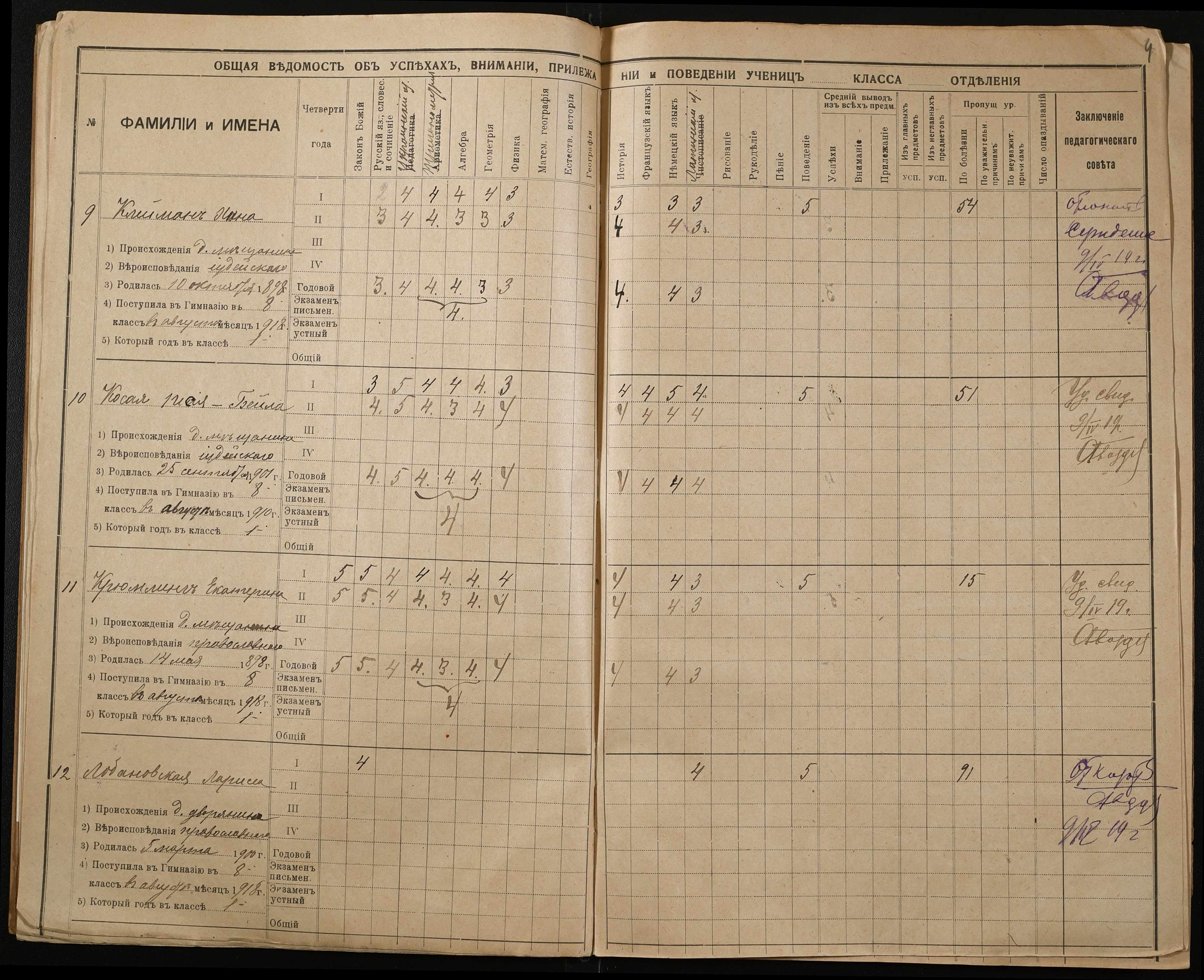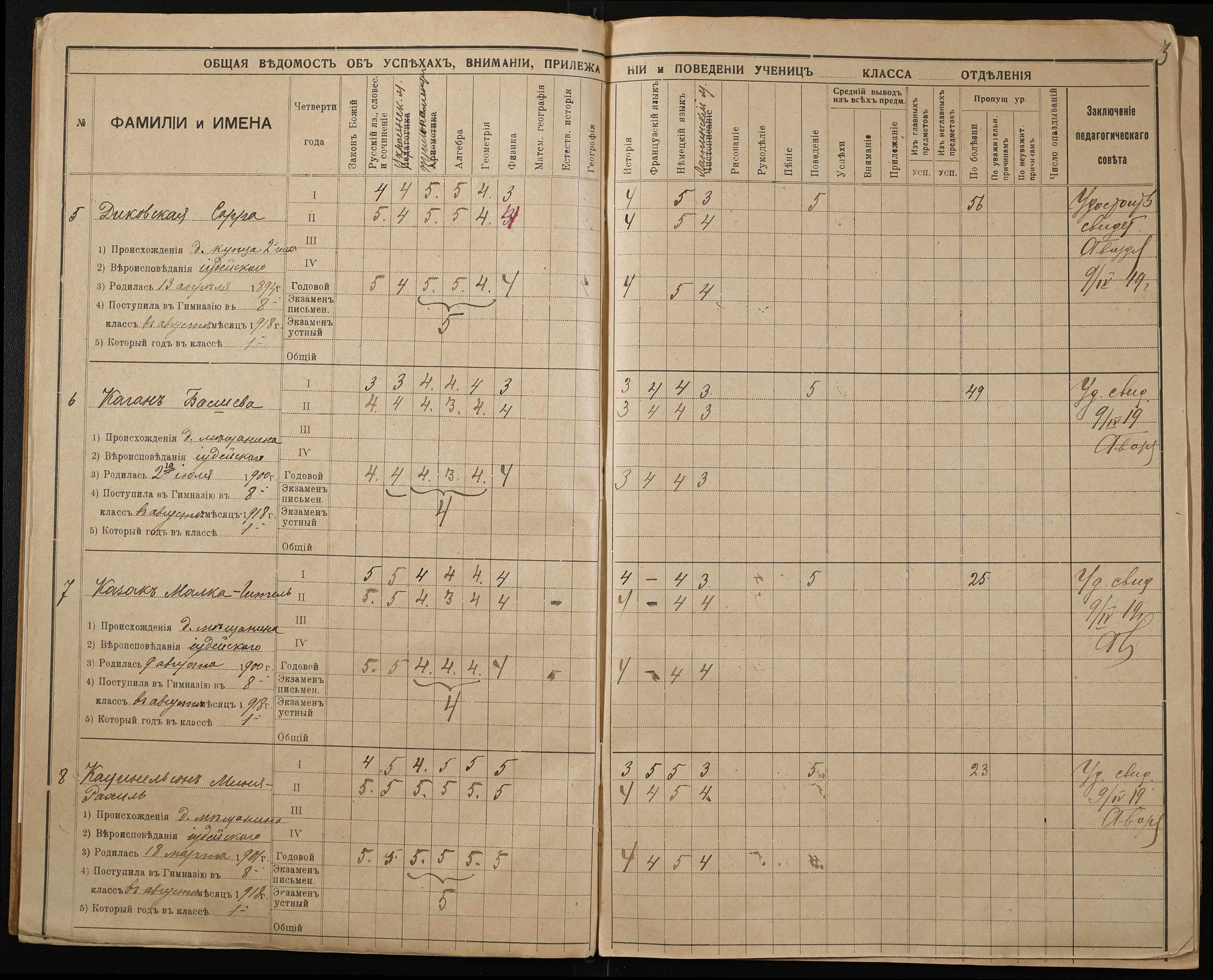 • • • • Справа № 10 “Журнал обліку успішності і поведінки учениць 8-го класу”