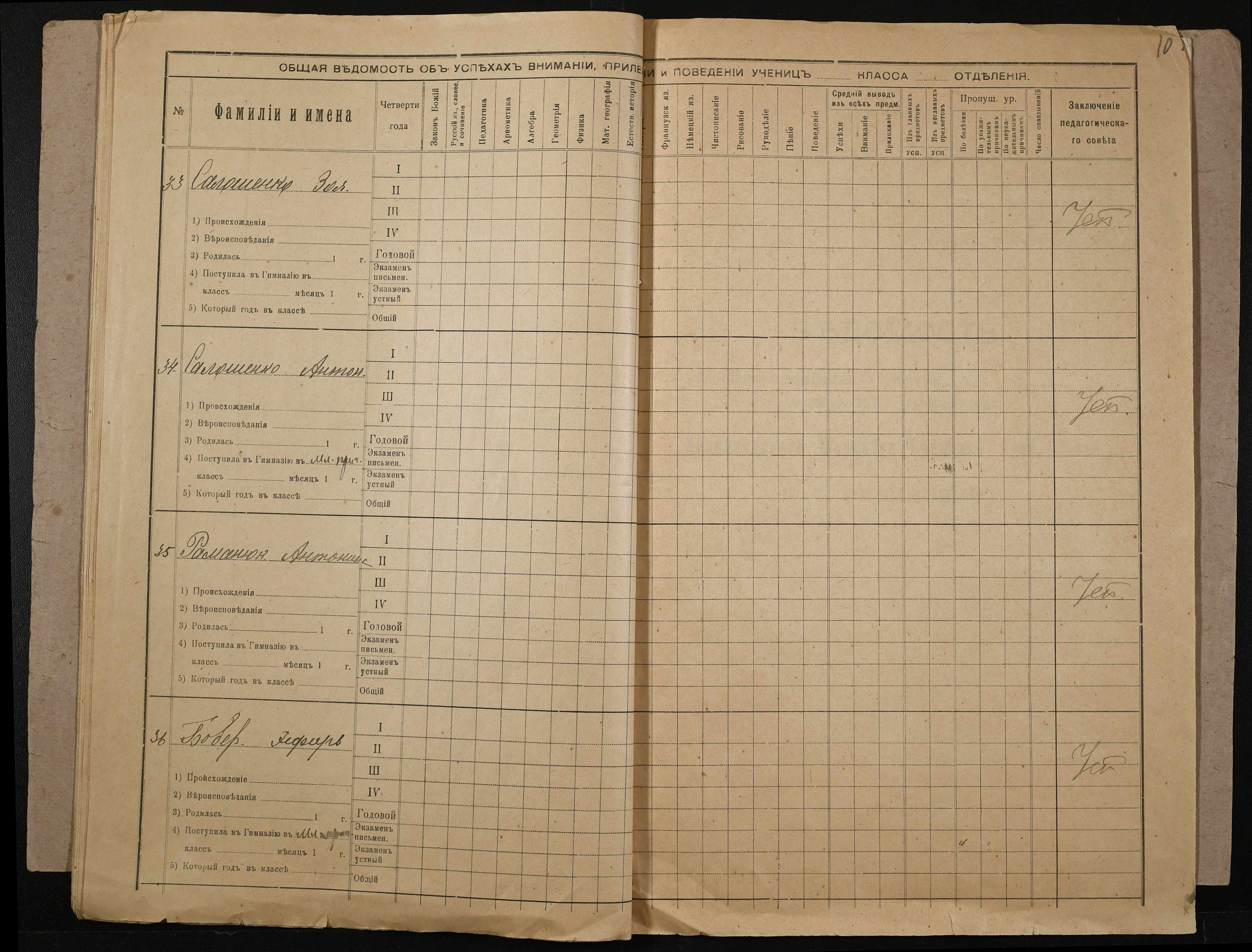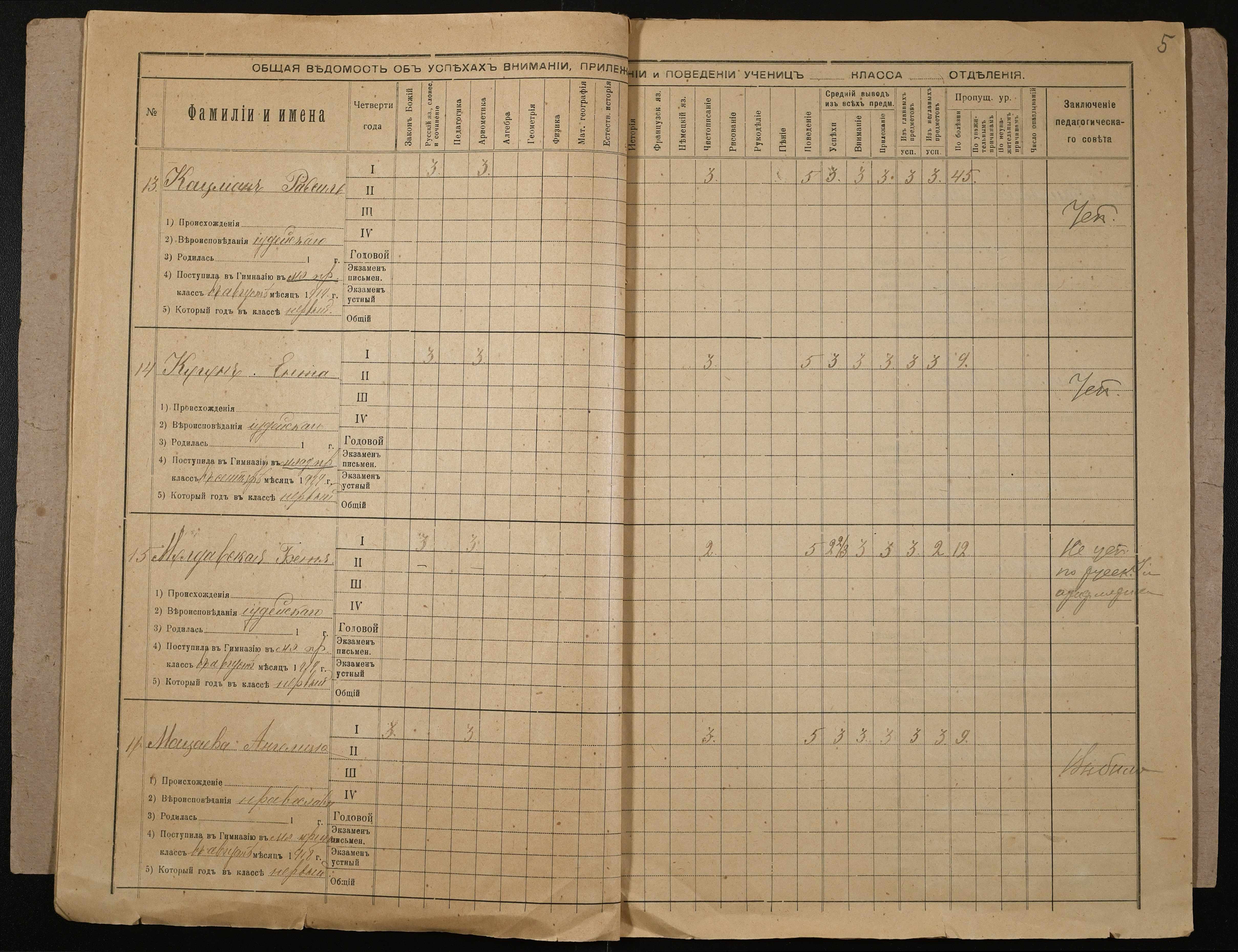 • • • • Справа № 11 “Журнал обліку успішності і поведінки учениць підготовчого класу за 1919-1920 навчальний рік”
