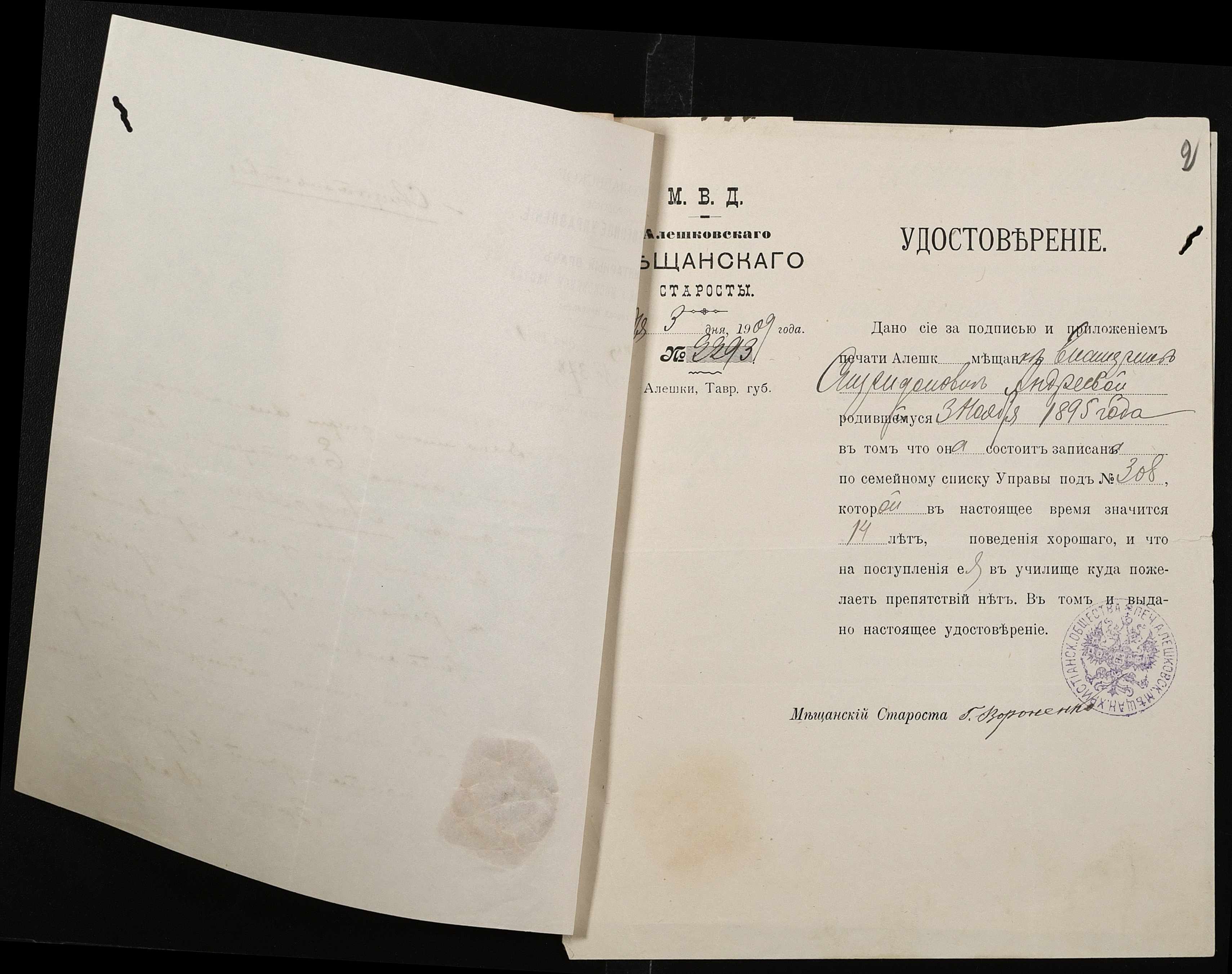 ◦ ◦ ◦ Опис № 1 справ постійного зберігання за 1908 – 1920 роки