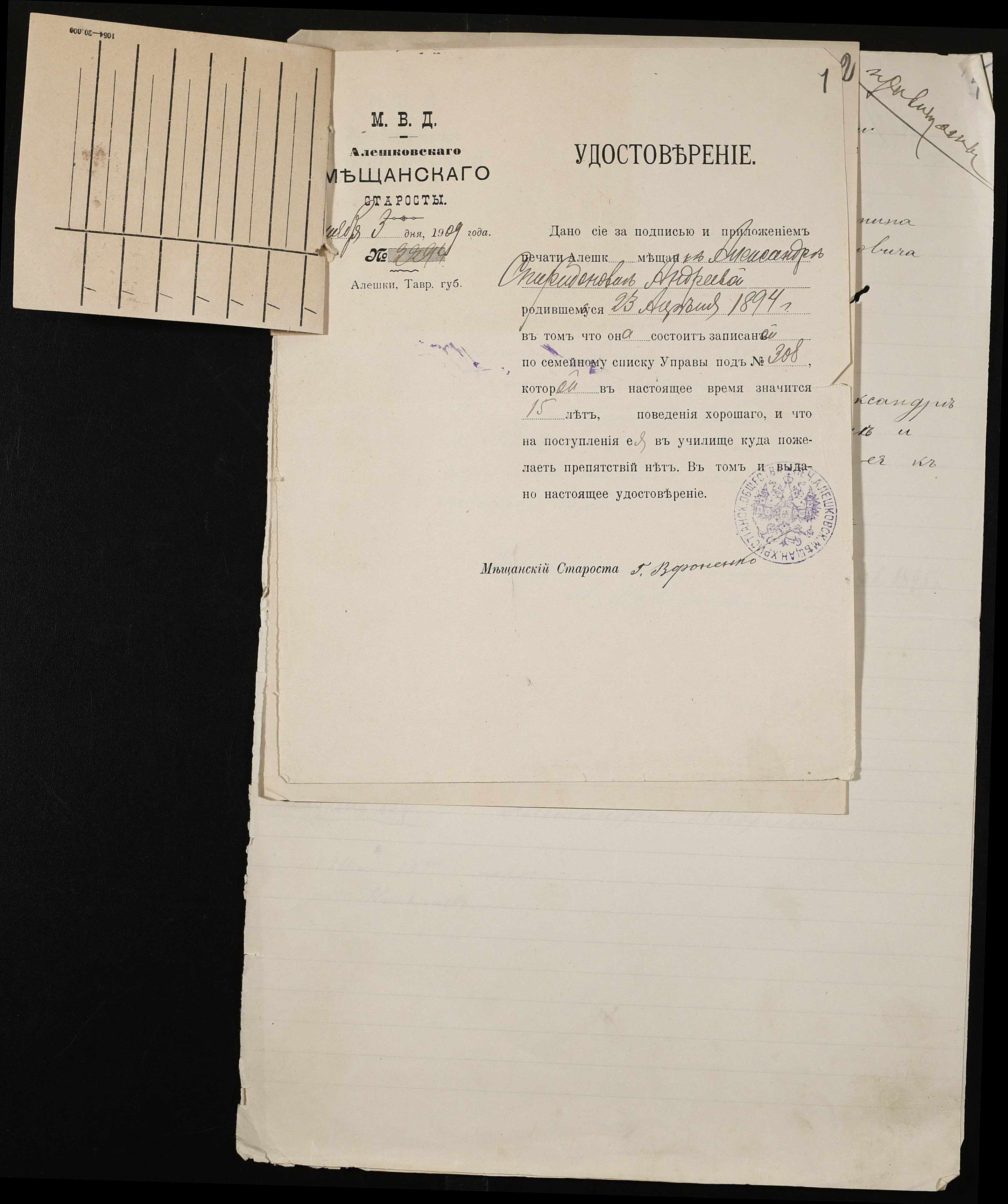 ◦ ◦ ◦ Опис № 1 справ постійного зберігання за 1908 – 1920 роки