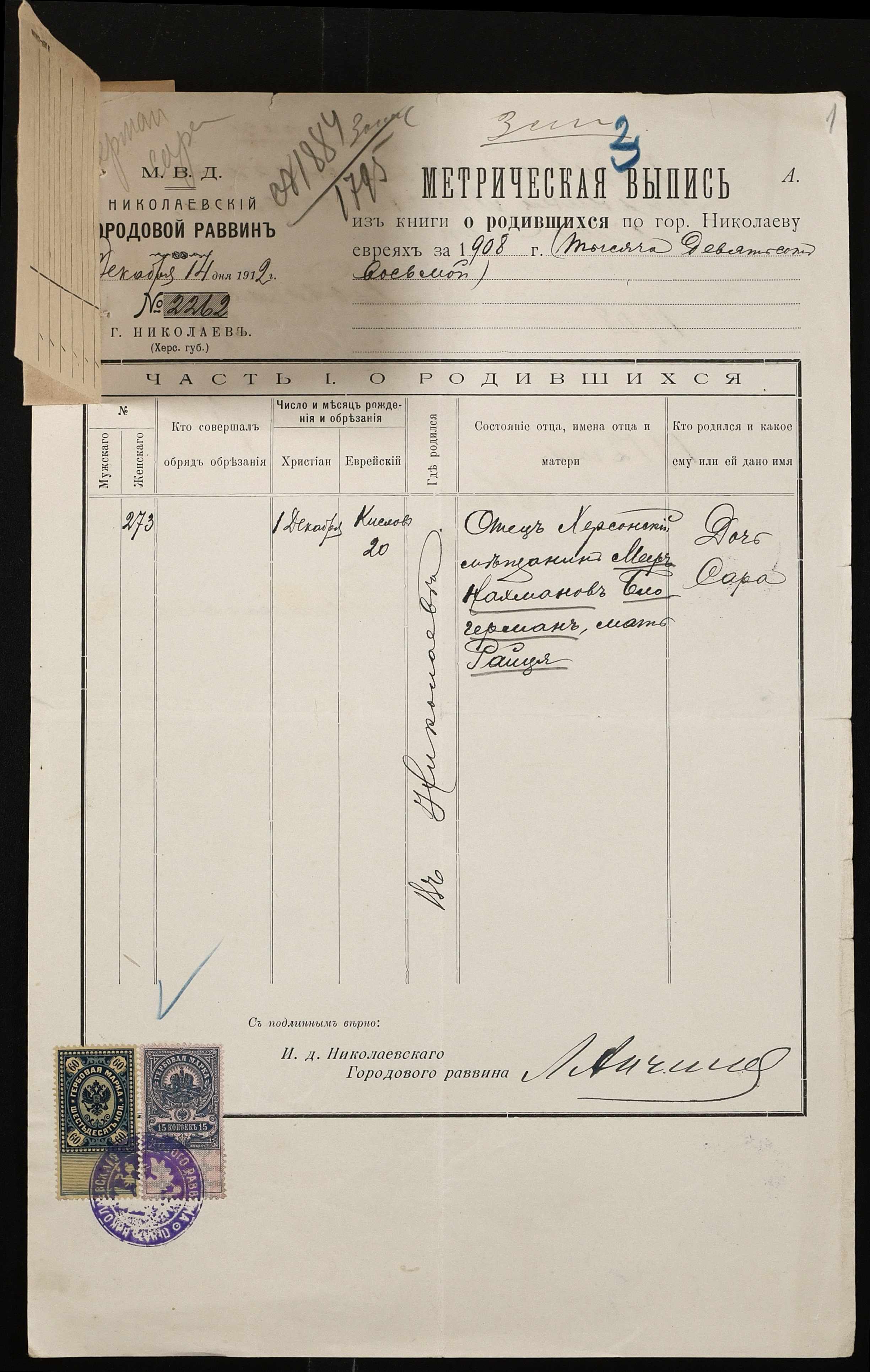 ◦ ◦ ◦ Опис № 1 справ постійного зберігання за 1908 – 1920 роки