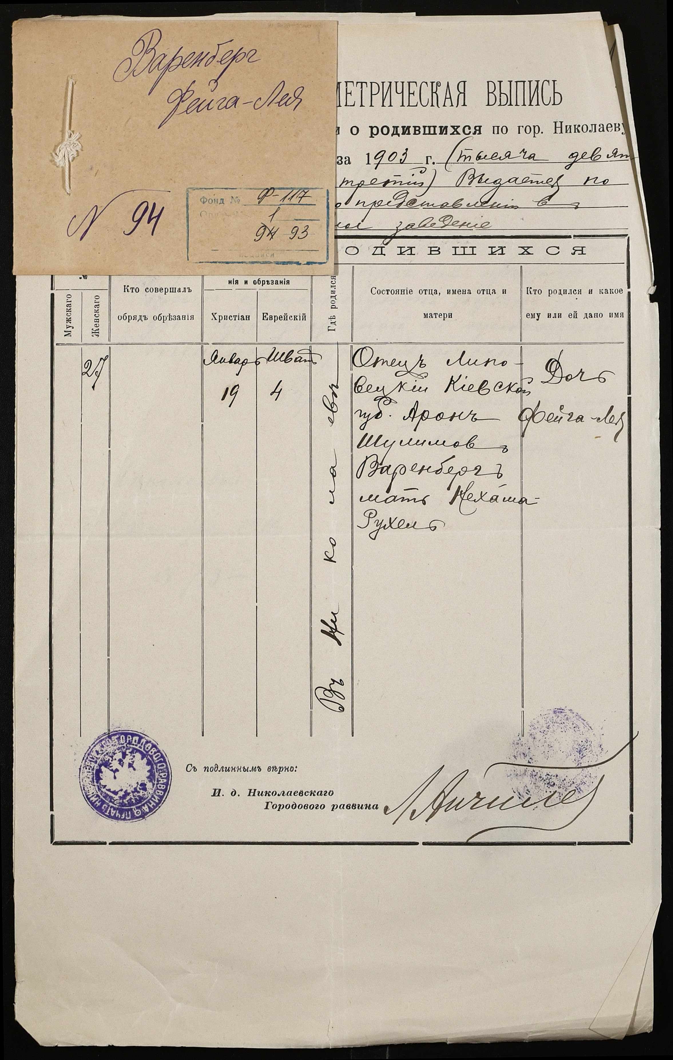 • • • • Справа № 93 “Варенберг Фейга-Лея”