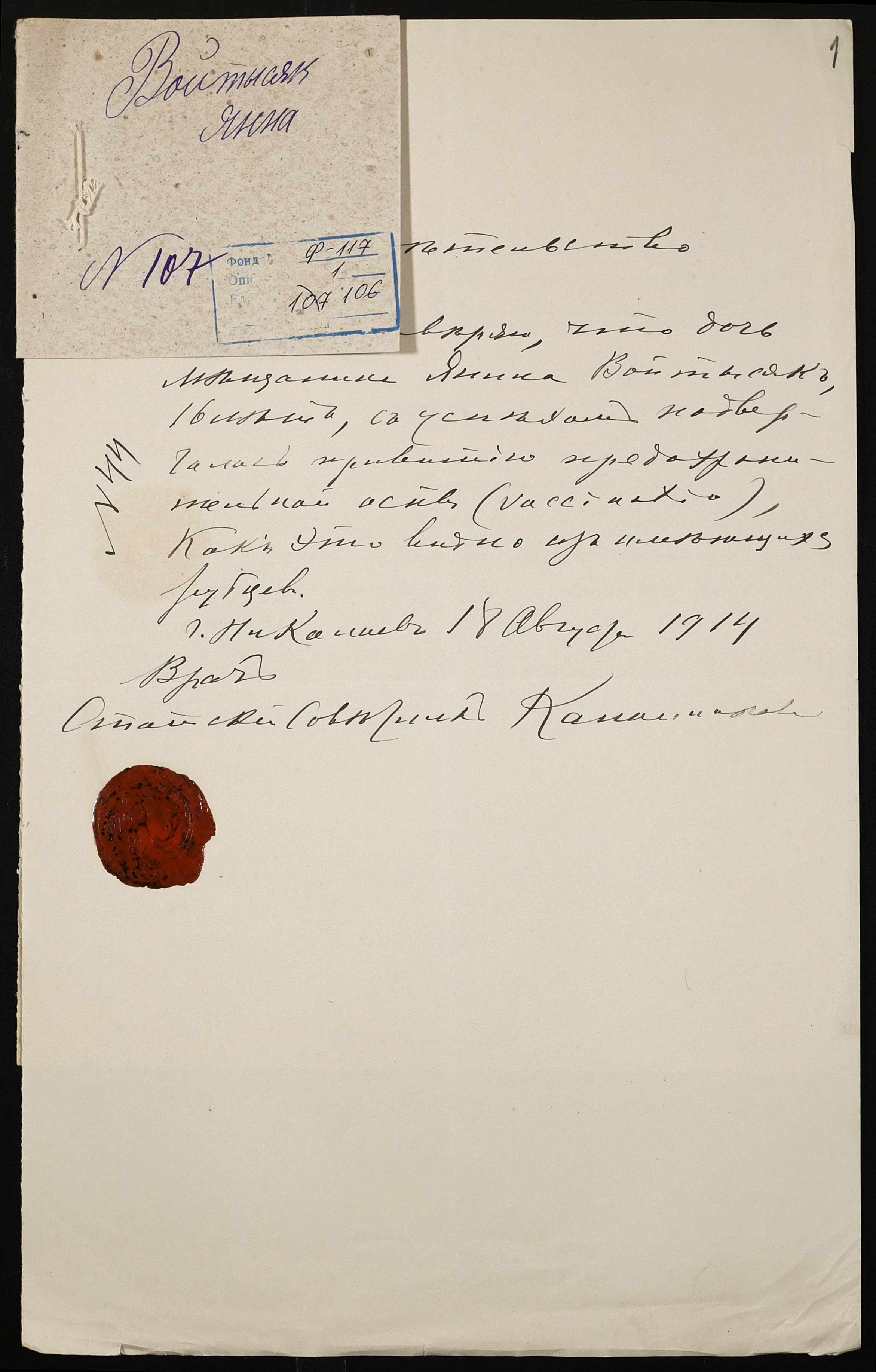 ◦ ◦ ◦ Опис № 1 справ постійного зберігання за 1908 – 1920 роки