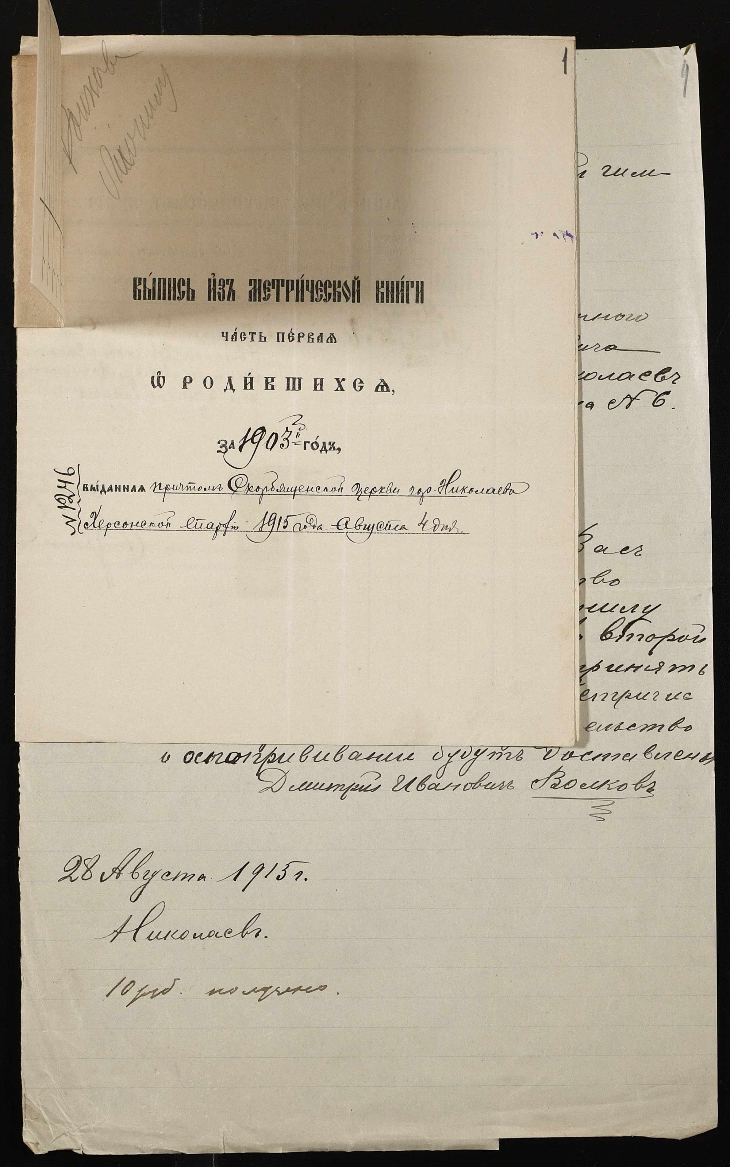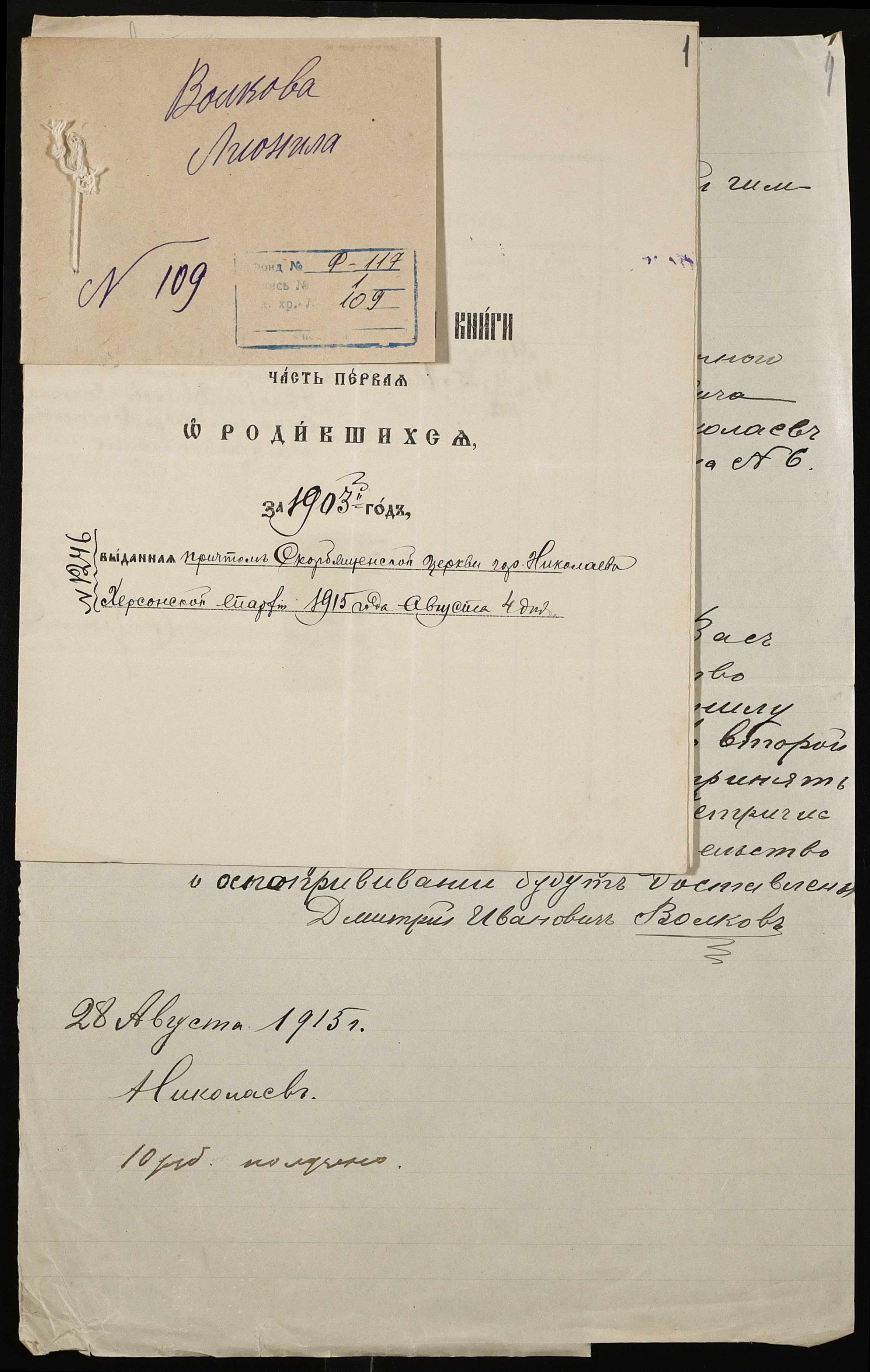 ◦ ◦ ◦ Опис № 1 справ постійного зберігання за 1908 – 1920 роки
