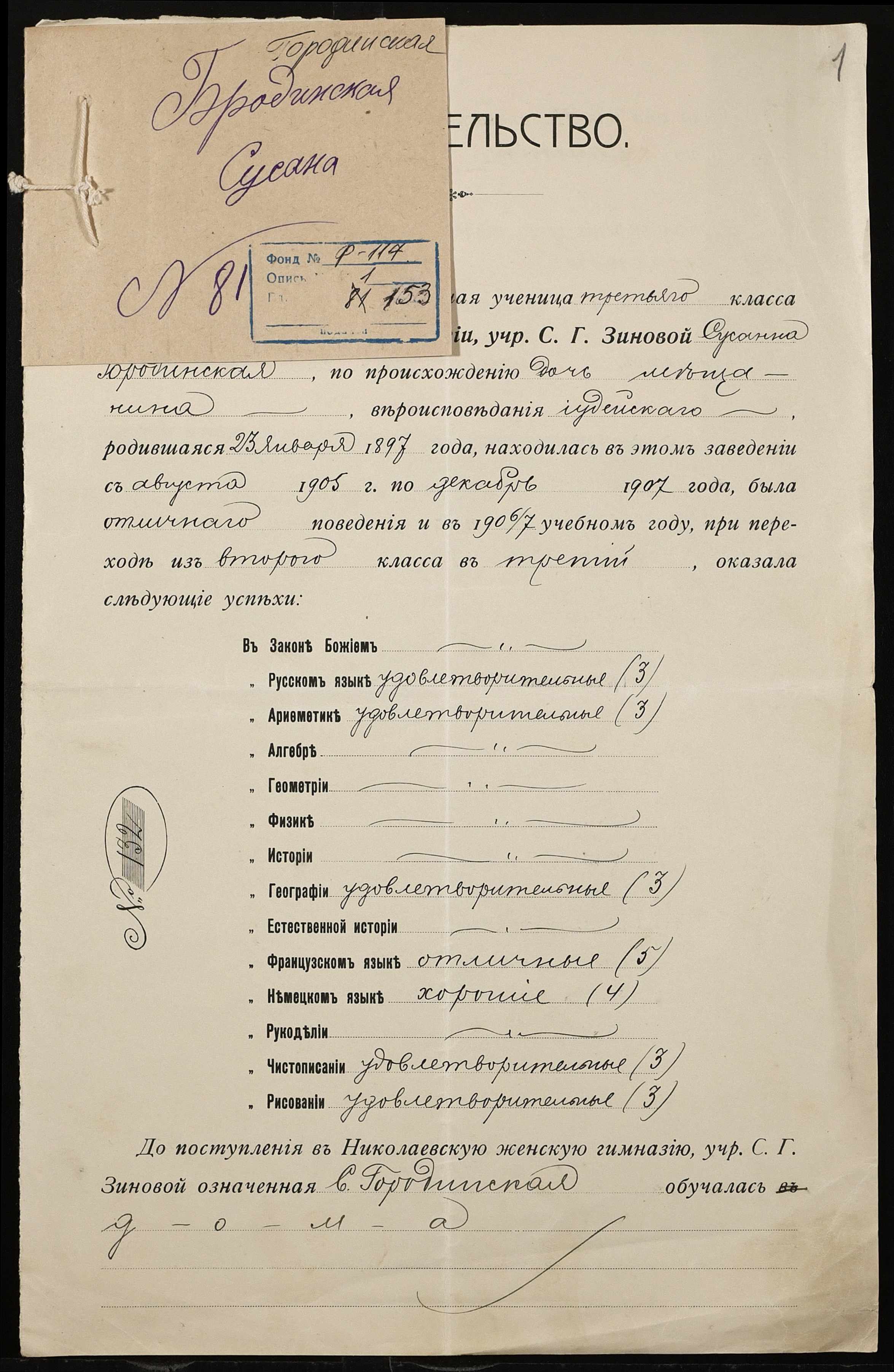 ◦ ◦ Фонд № 117 “Миколаївська 5-а жіноча гімназія”