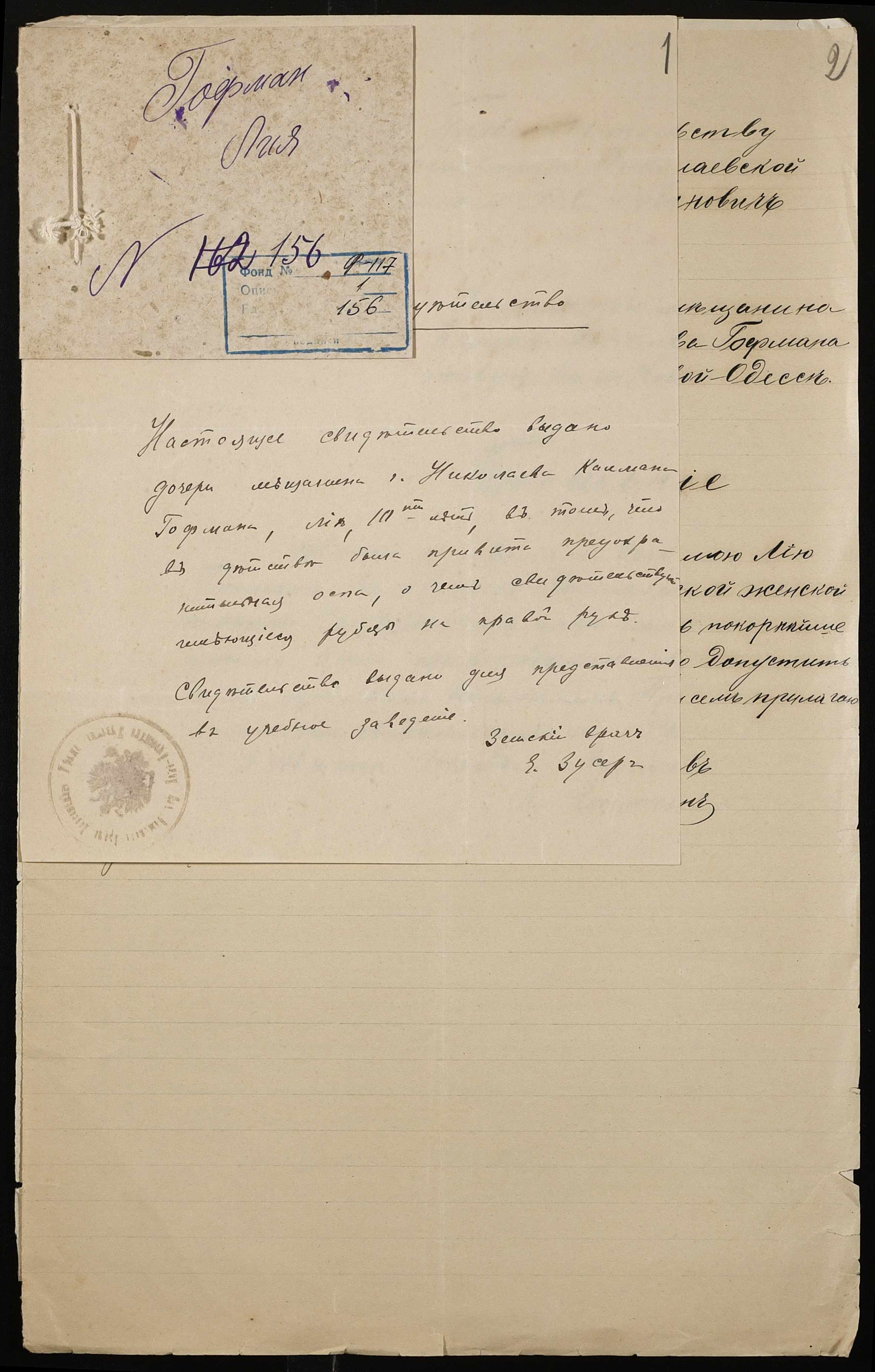 Фонд 117 / Опис 1 / Справа 156