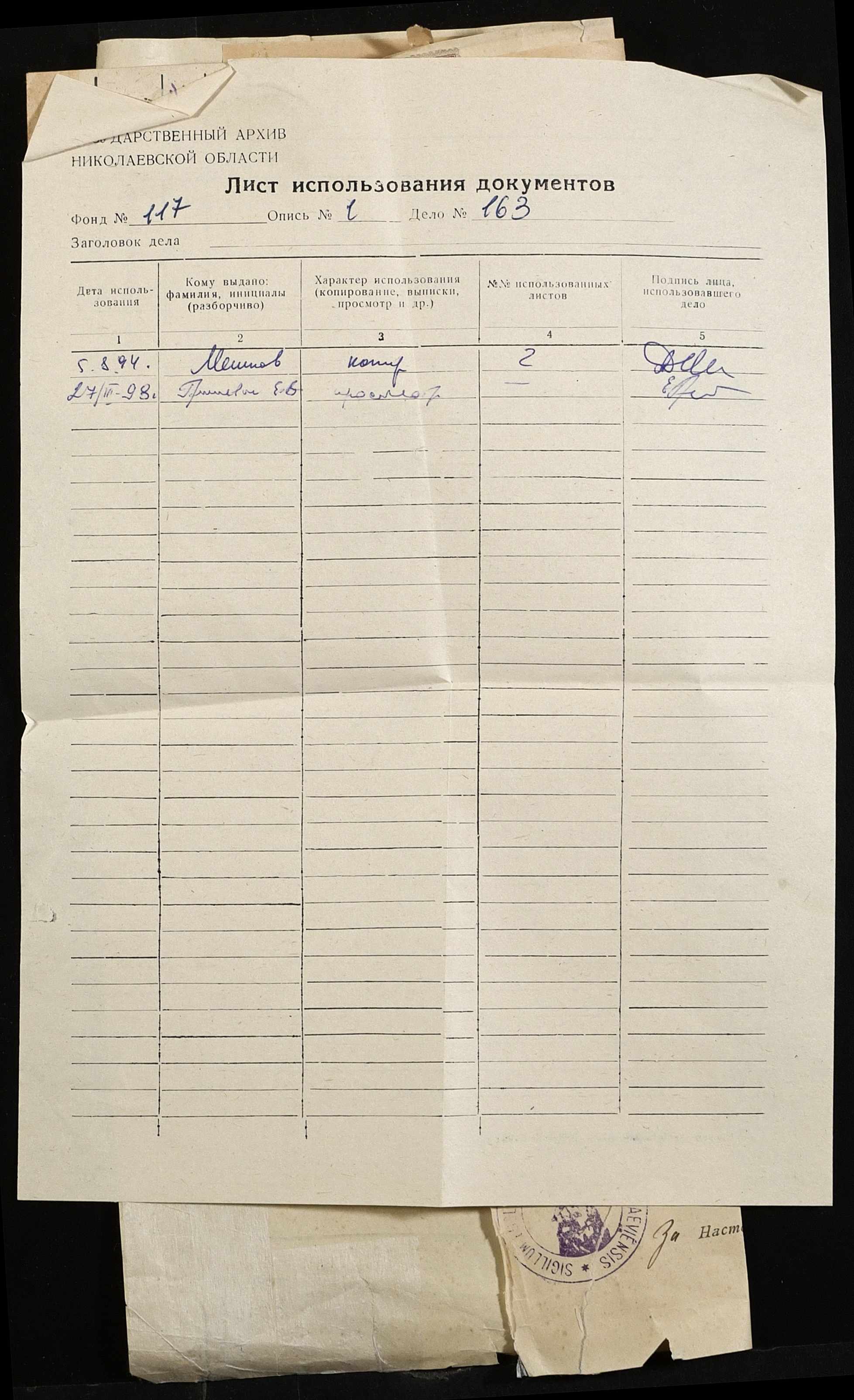 Фонд 117 / Опис 1 / Справа 163