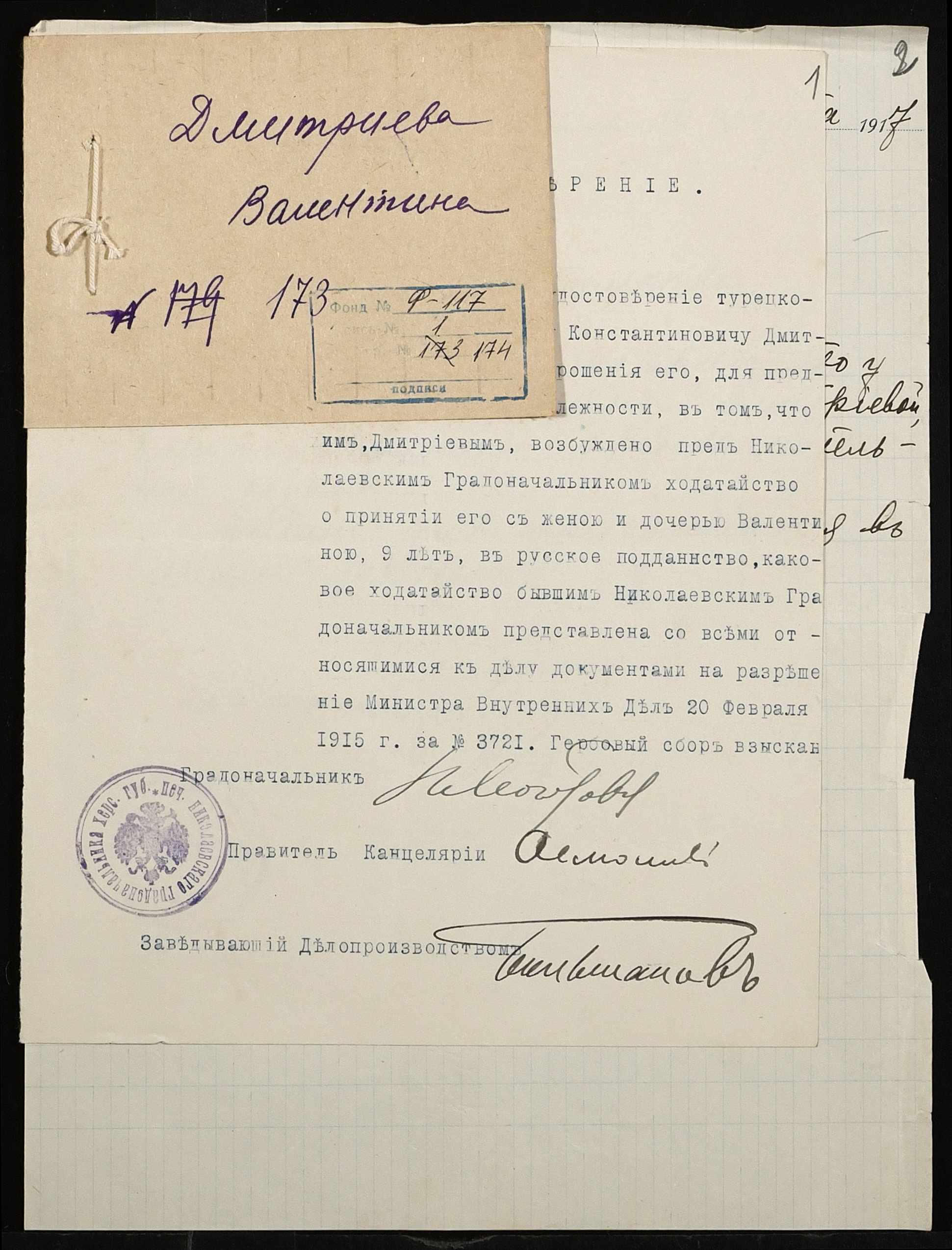 • • • • Справа № 174 “Дмитрієва Валентина”