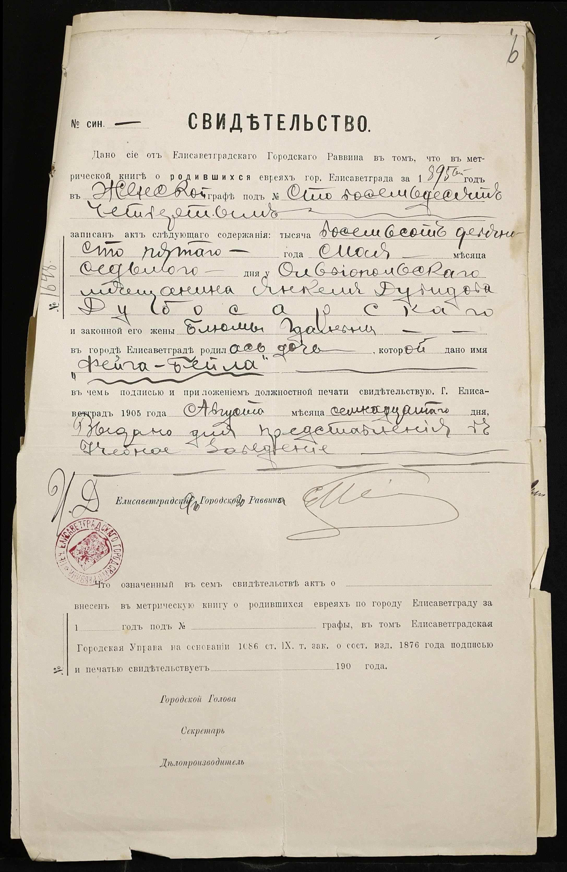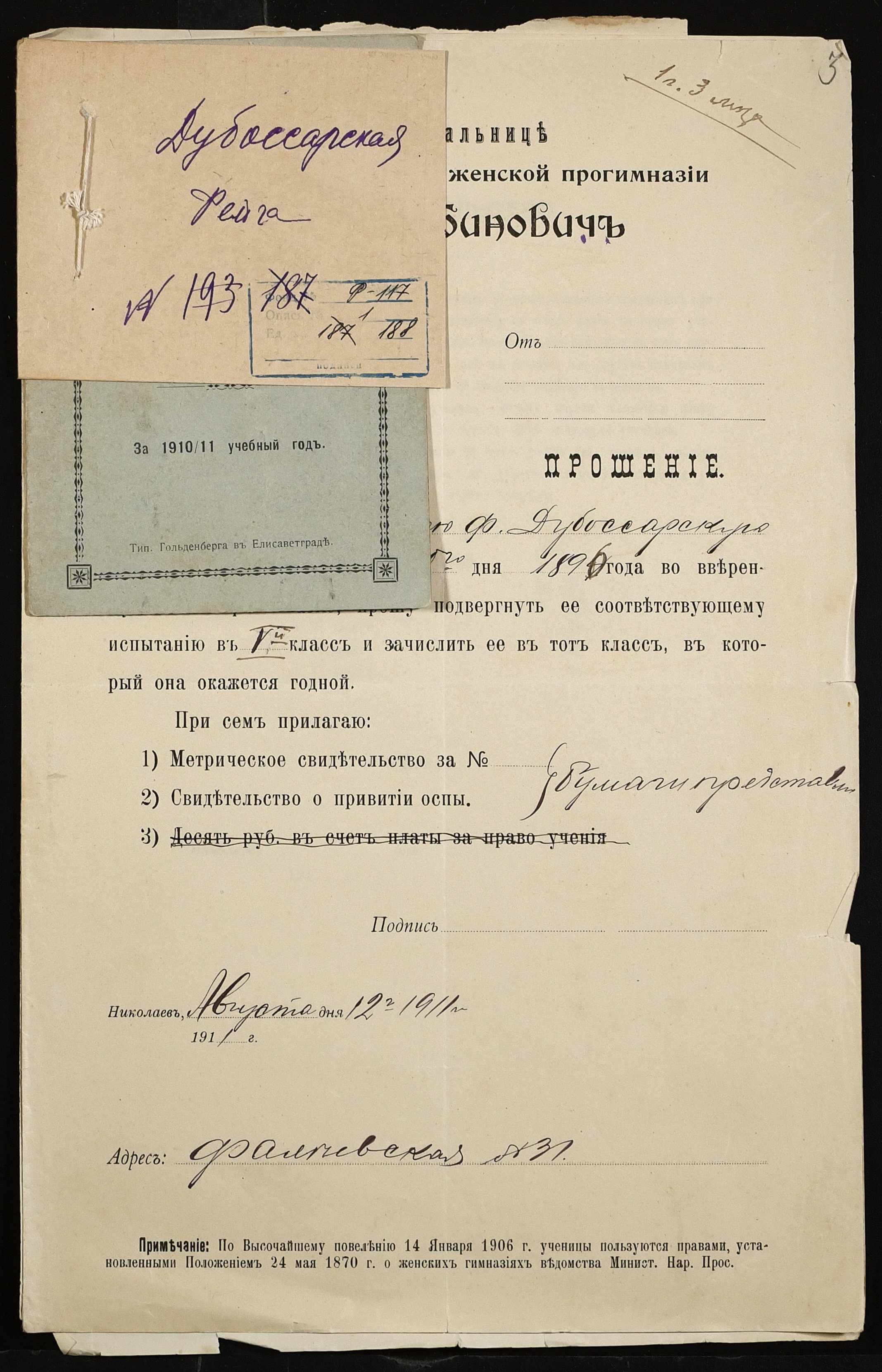 • • • • Справа № 188 “Дубоссарська Фейга”