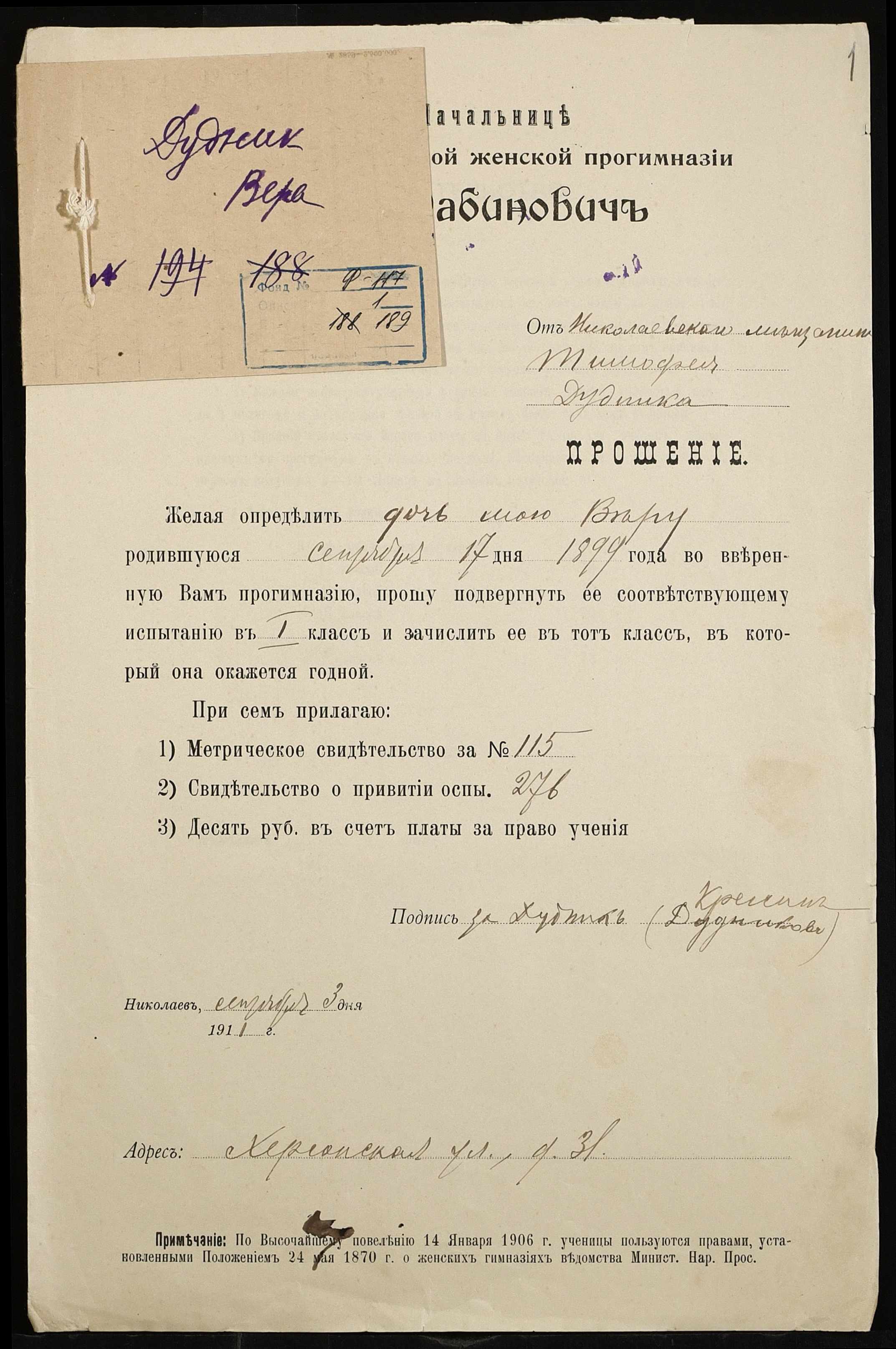 ◦ ◦ Фонд № 117 “Миколаївська 5-а жіноча гімназія”