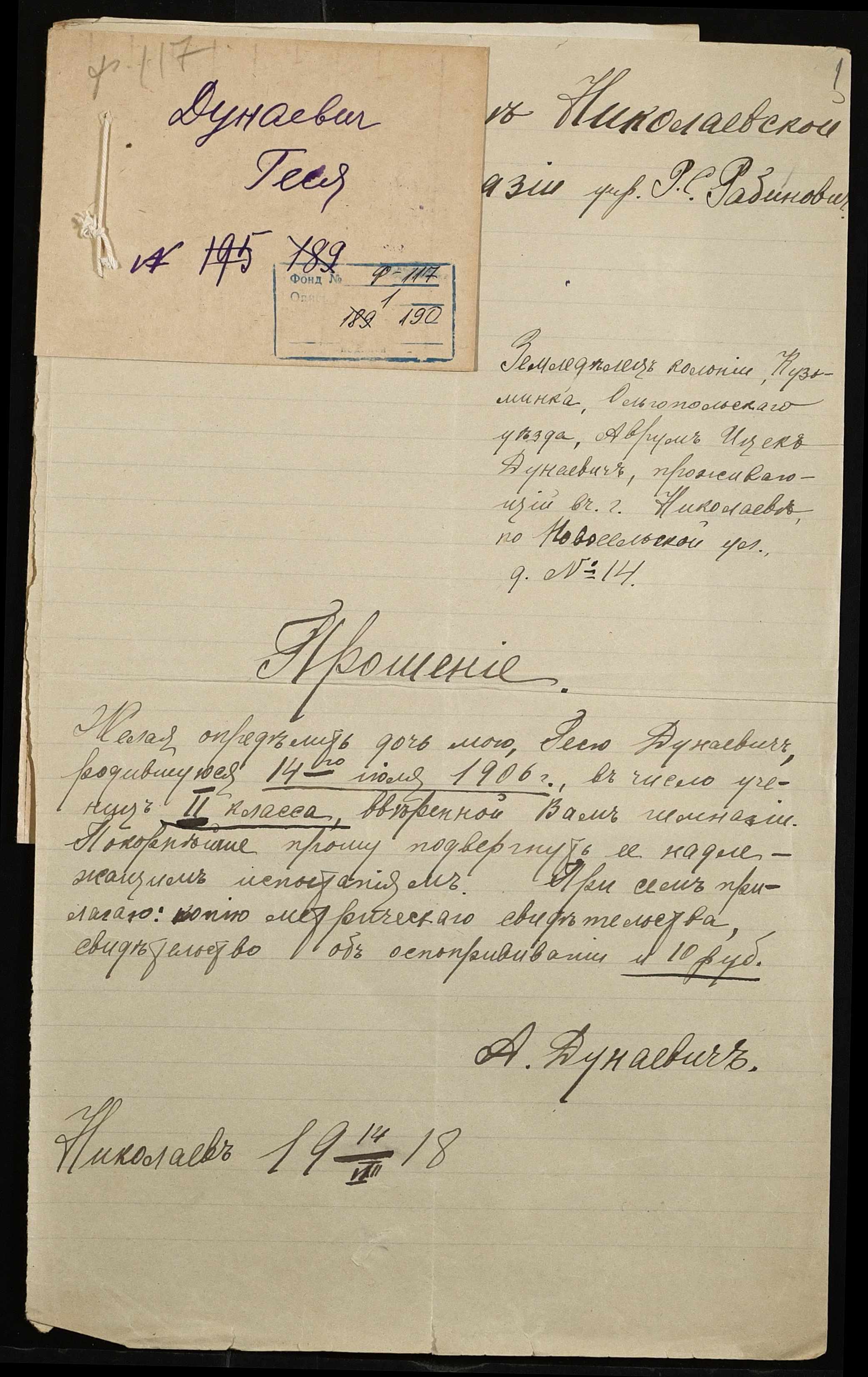 • • • • Справа № 190 “Дунаєвич Геся”