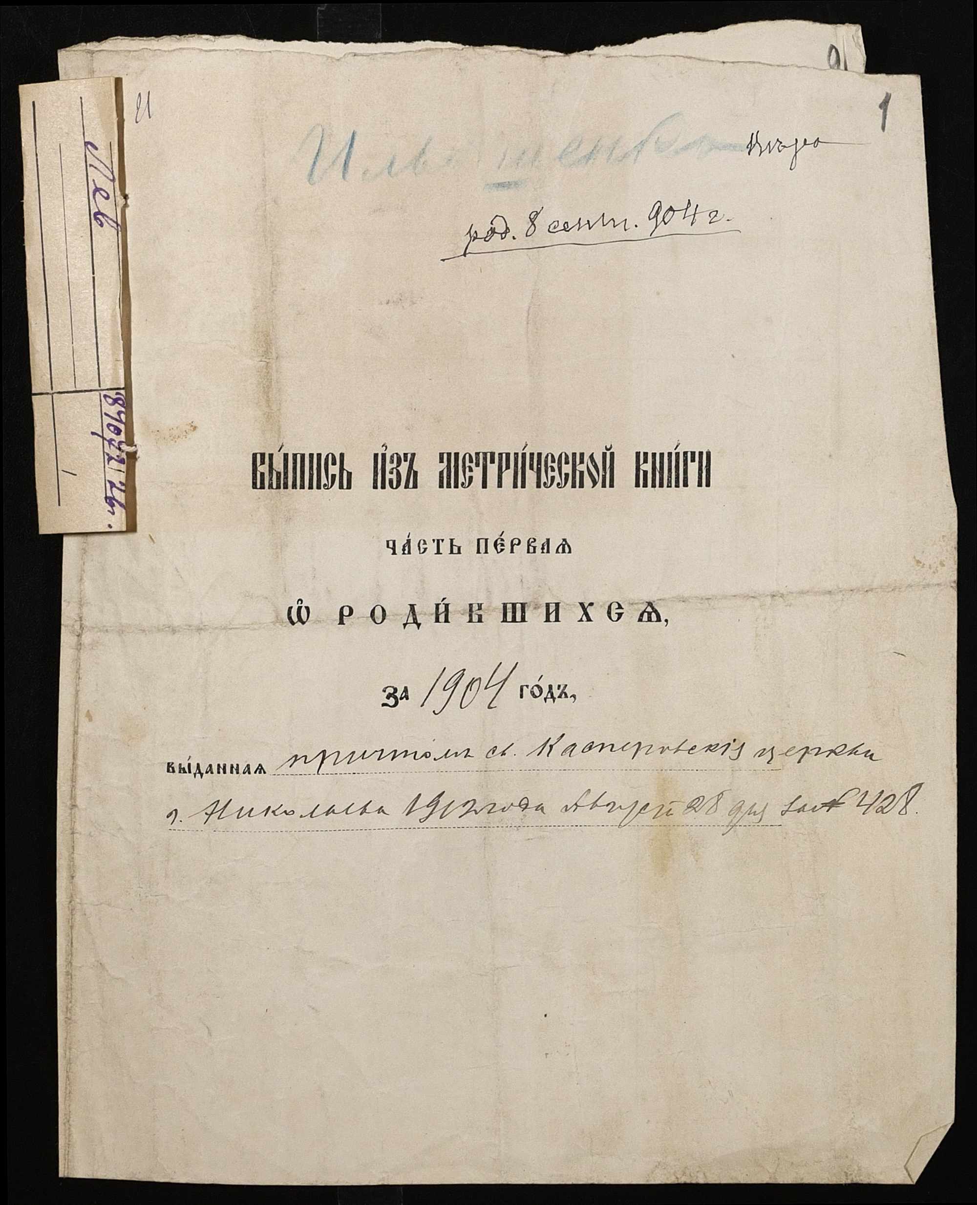 ◦ ◦ ◦ Опис № 1 справ постійного зберігання за 1908 – 1920 роки