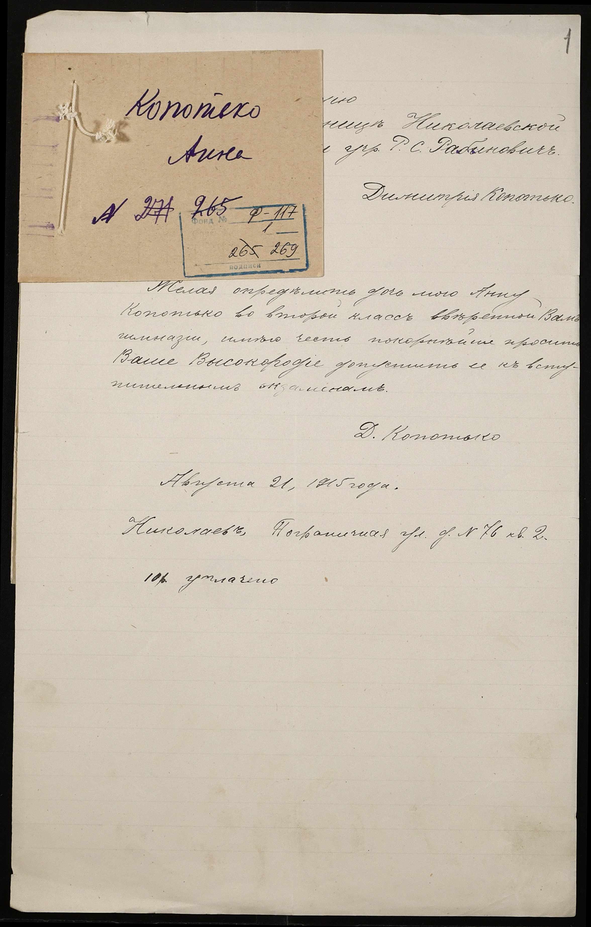 Фонд 117 / Опис 1 / Справа 269