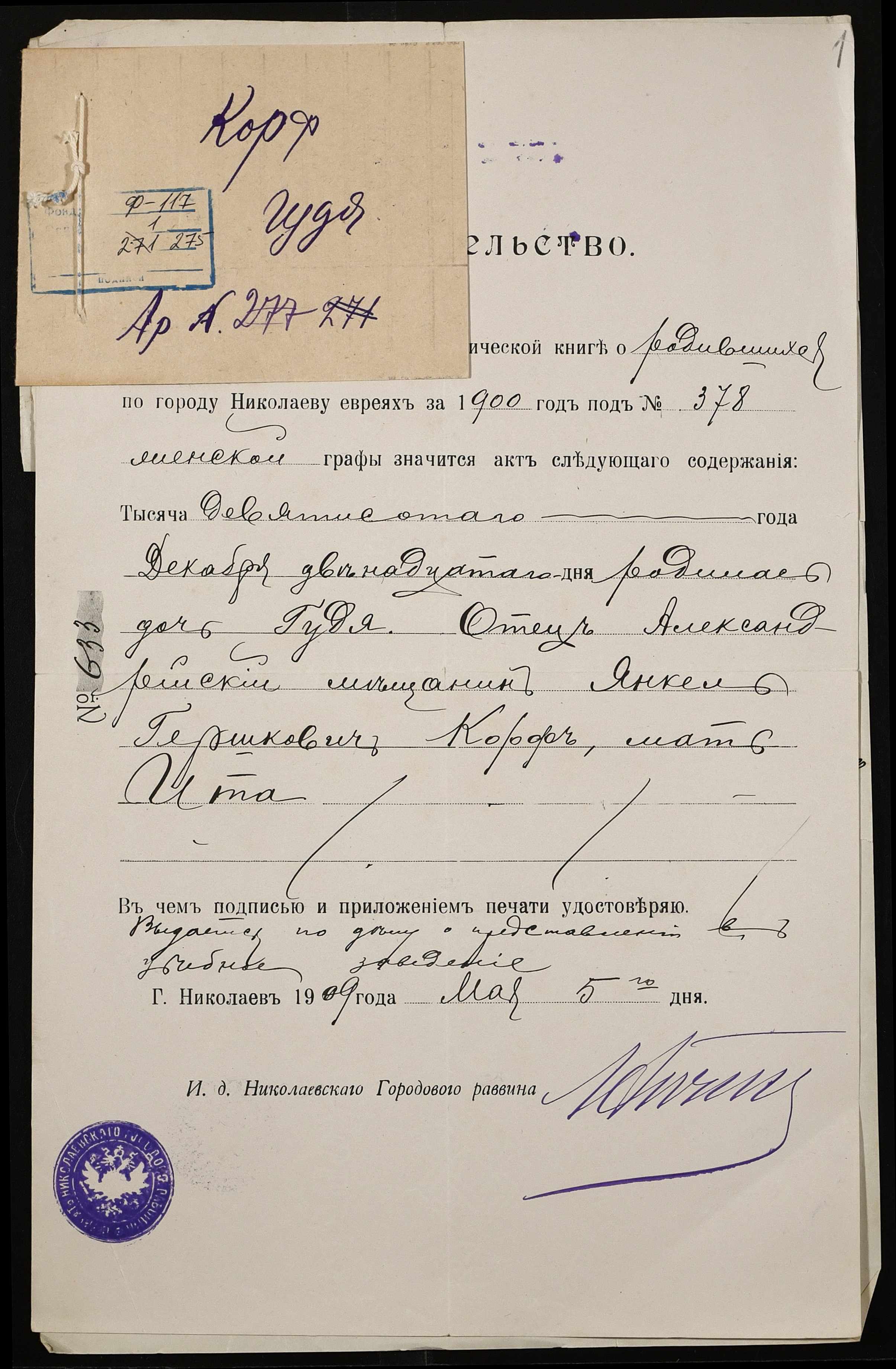Фонд 117 / Опис 1 / Справа 275