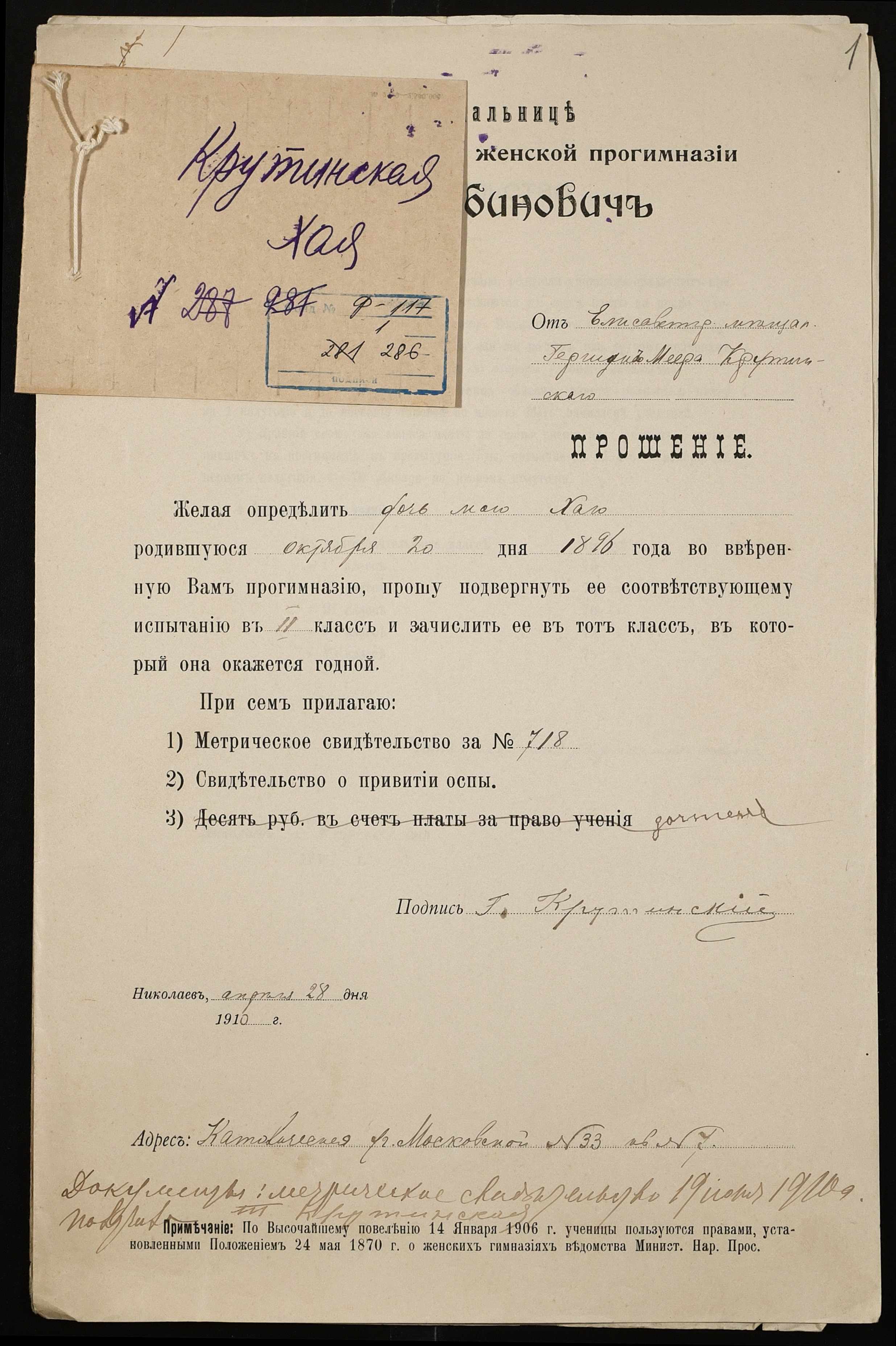 • • • • Справа № 286 “Крутинська Хая”