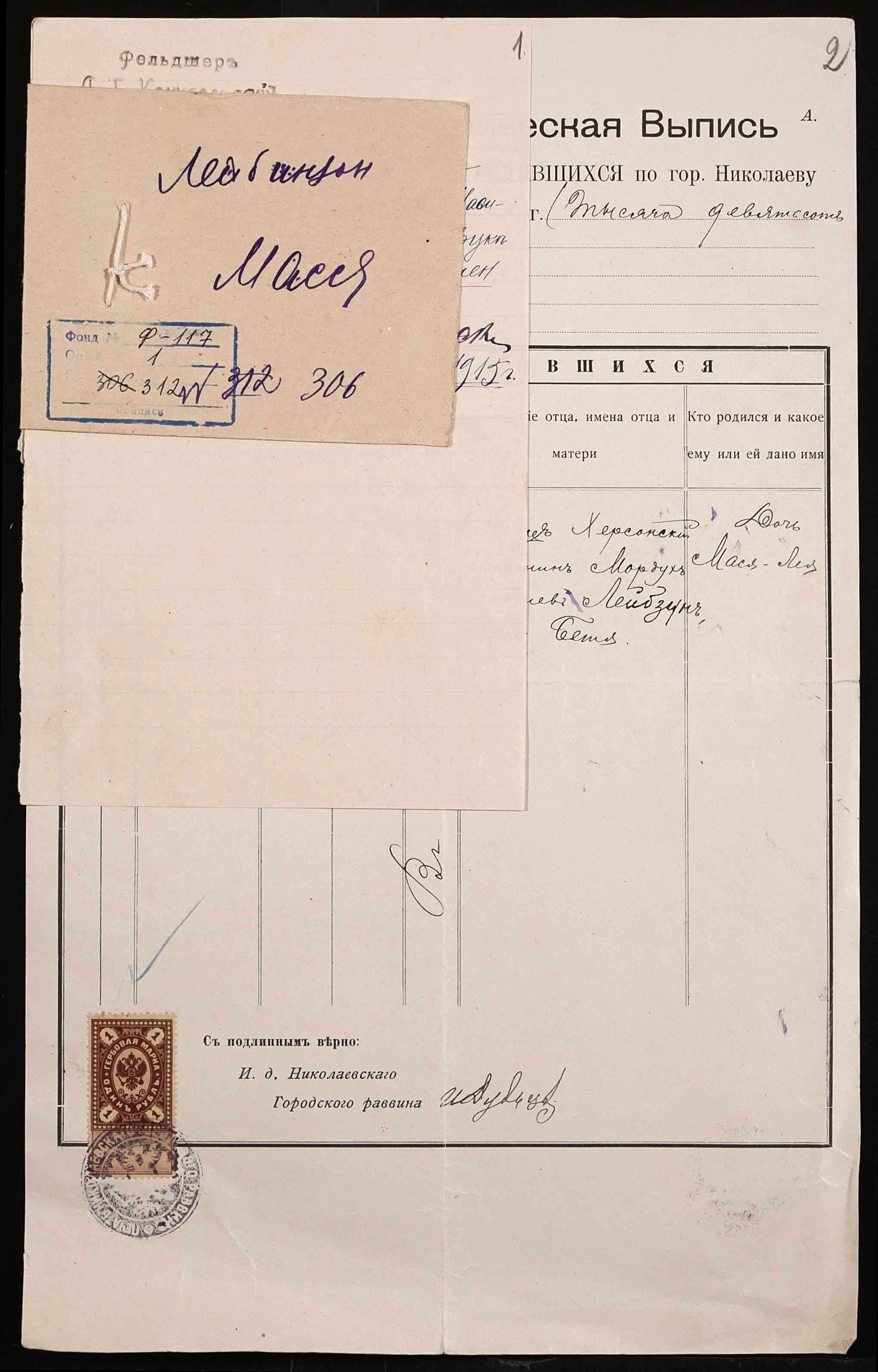 • • • • Справа № 312 “Лейбзун Мася Лея”