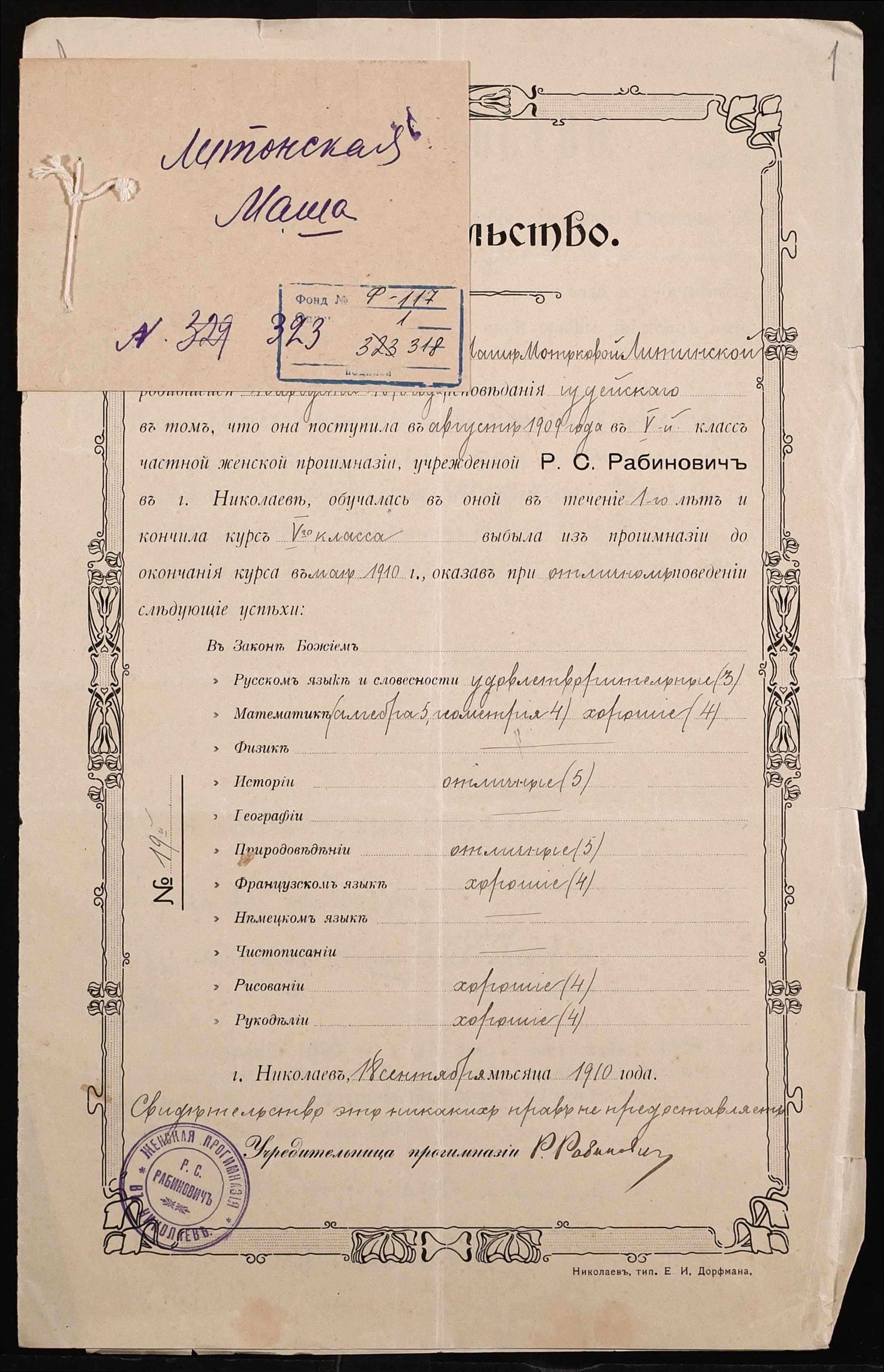 ◦ ◦ Фонд № 117 “Миколаївська 5-а жіноча гімназія”