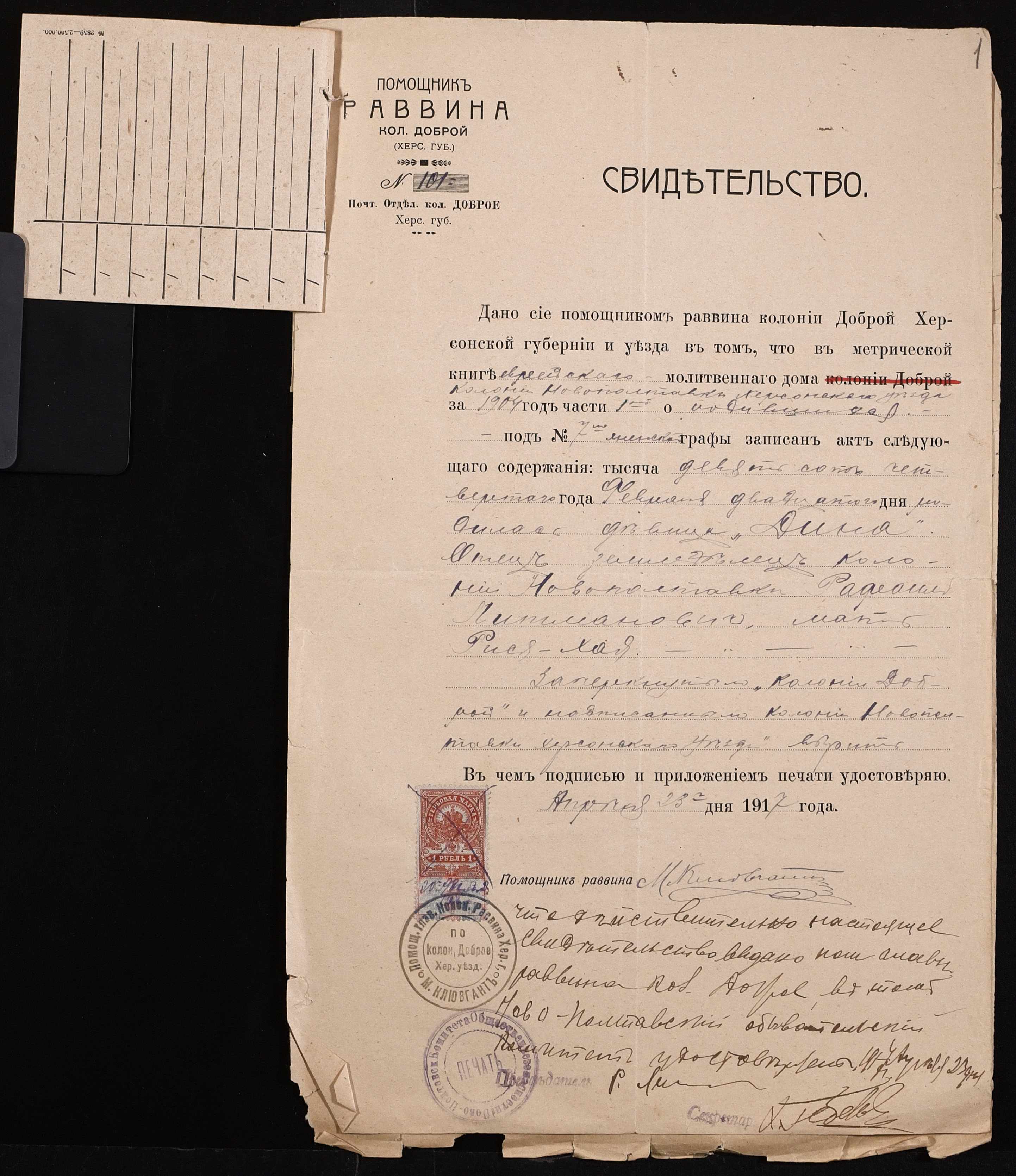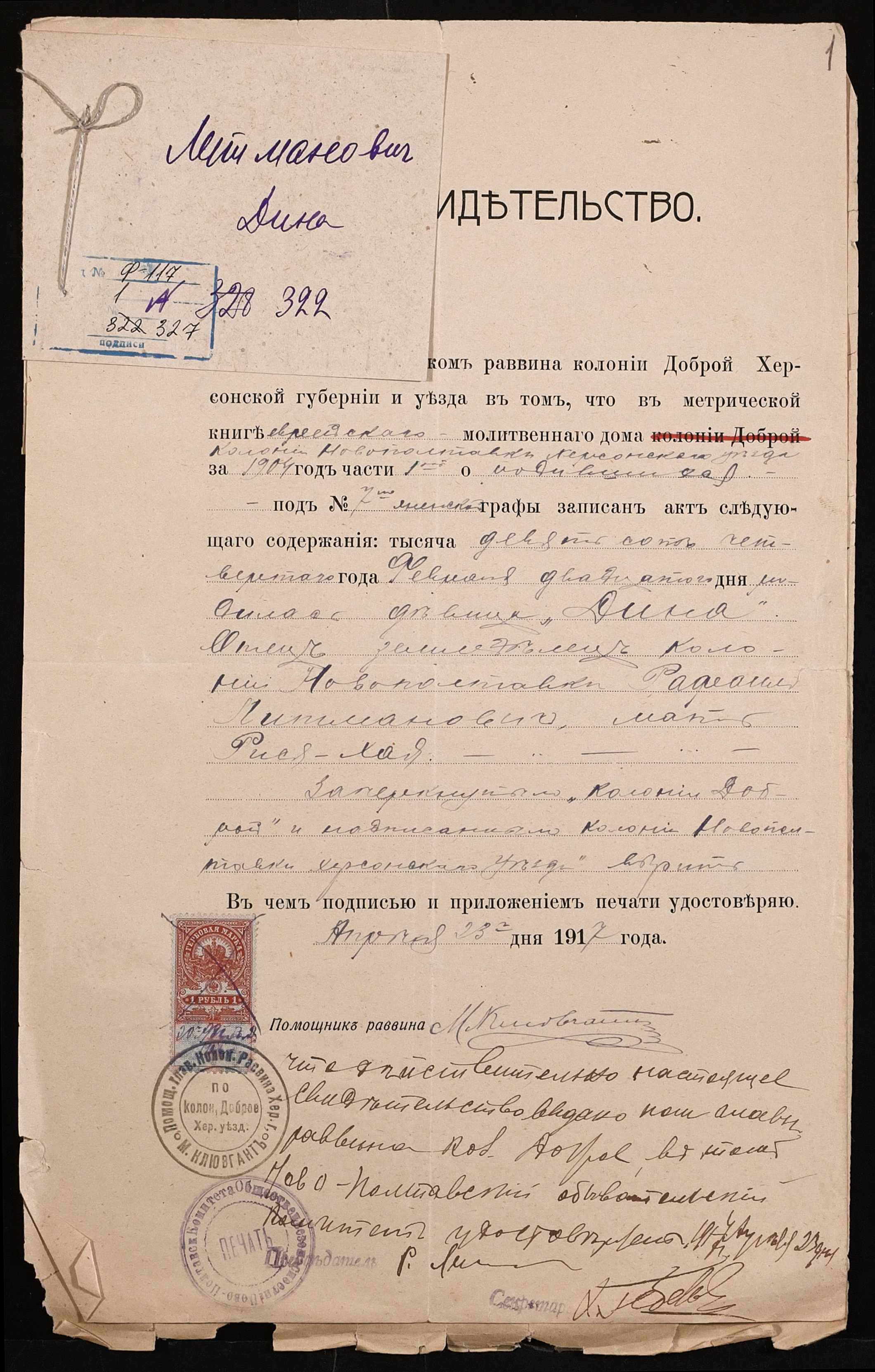 ◦ ◦ ◦ Опис № 1 справ постійного зберігання за 1908 – 1920 роки