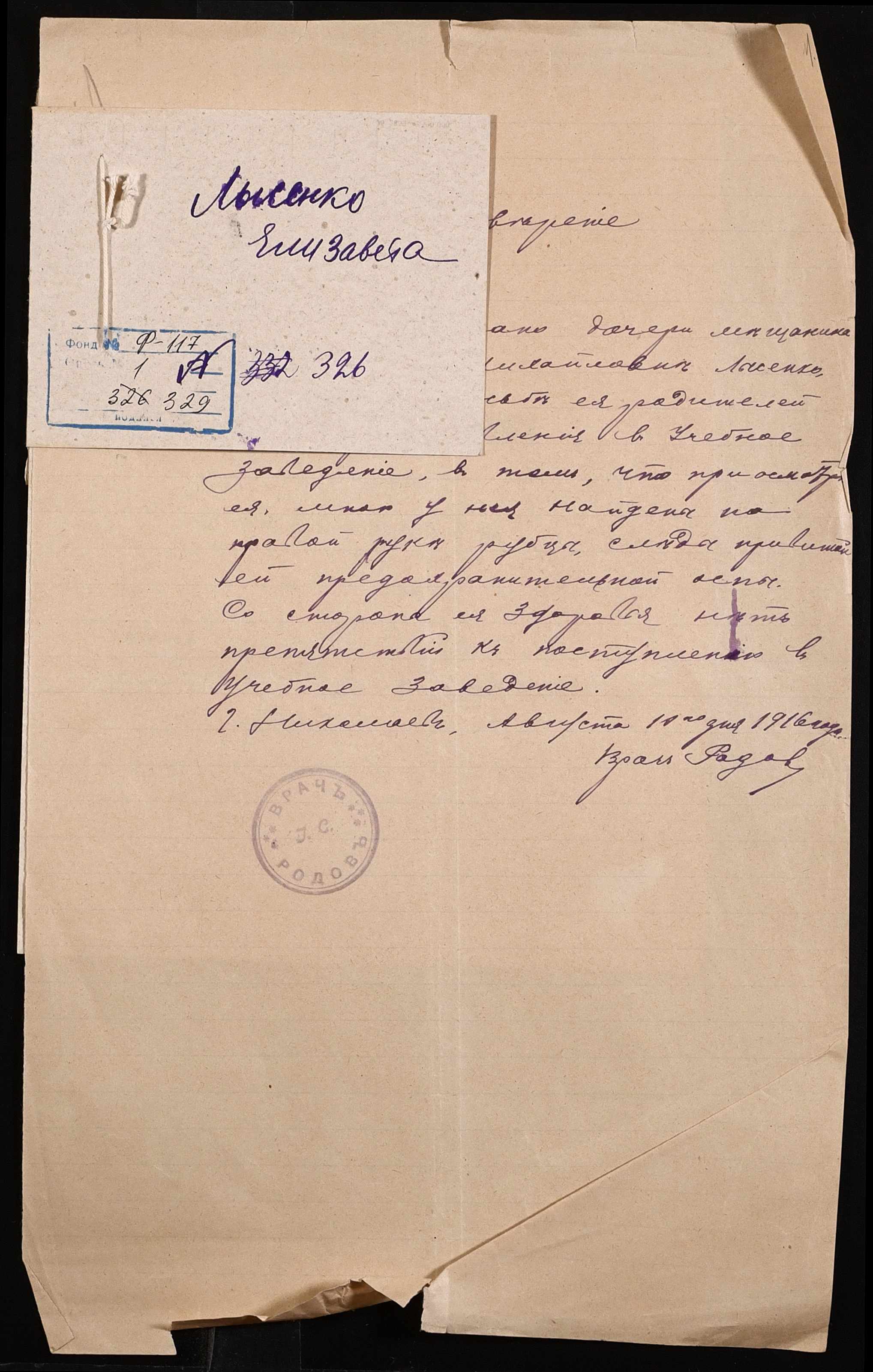 Фонд 117 / Опис 1 / Справа 329