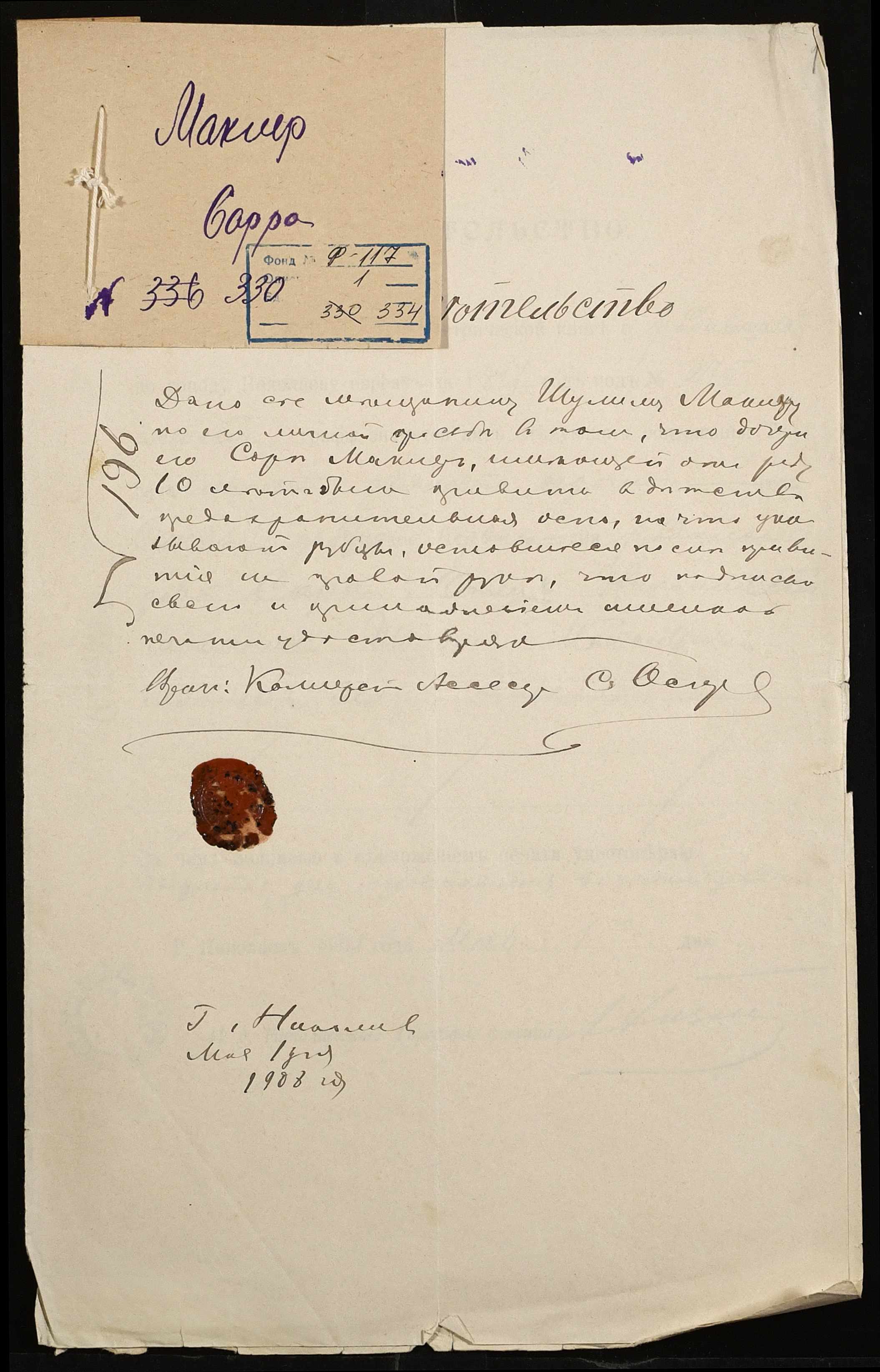 Фонд 117 / Опис 1 / Справа 334