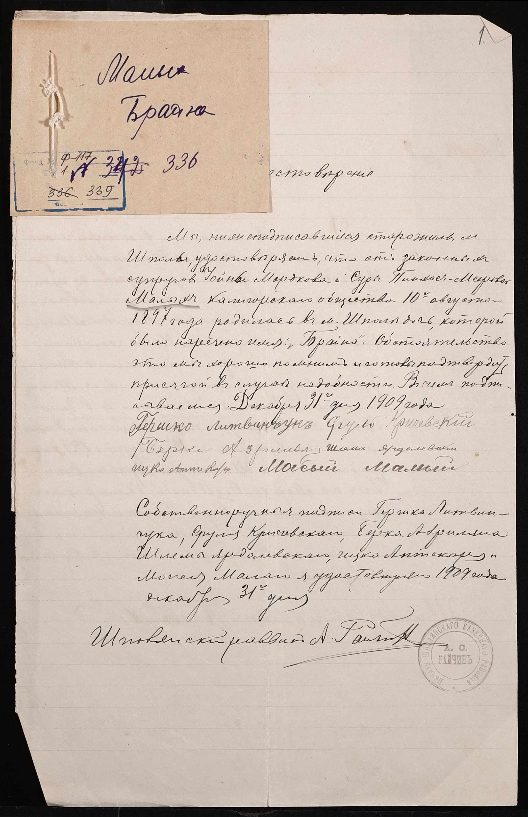 Фонд 117 / Опис 1 / Справа 339