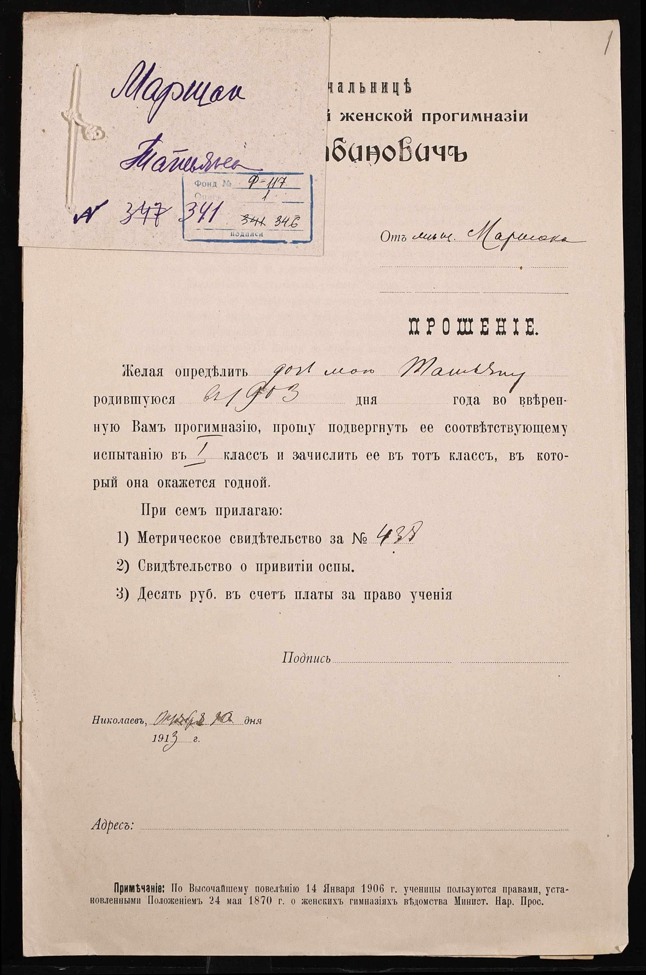 ◦ ◦ Фонд № 117 “Миколаївська 5-а жіноча гімназія”